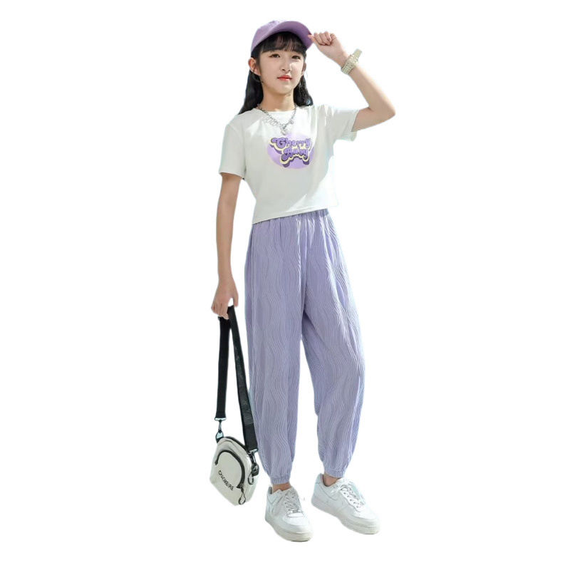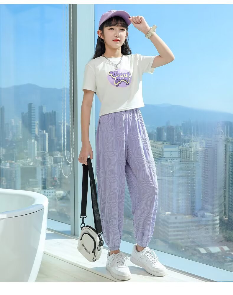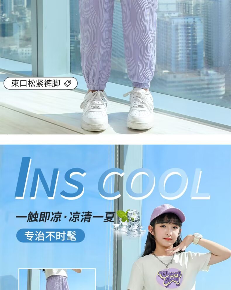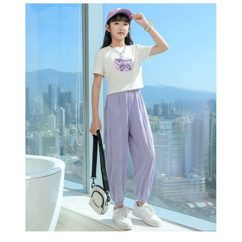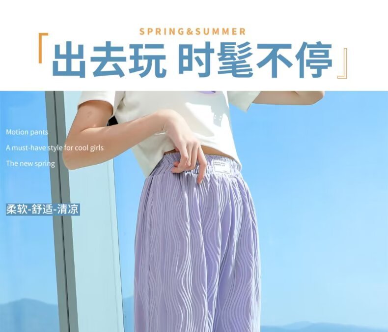 Летние тонкие брюки для девочек, новые стильные свободные брюки из ледяного шелка с защитой от комаров, детские повседневные спортивные брюки на лето