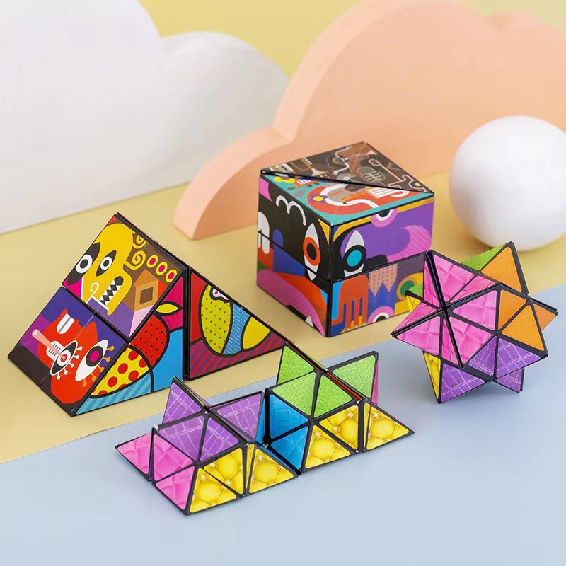 Разнообразный кубик Рубика Геометрический кубик Рубика 3D Магнитная деформация головоломка Детская игрушка Деформированный распакованный стенд через границу