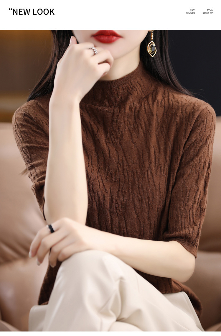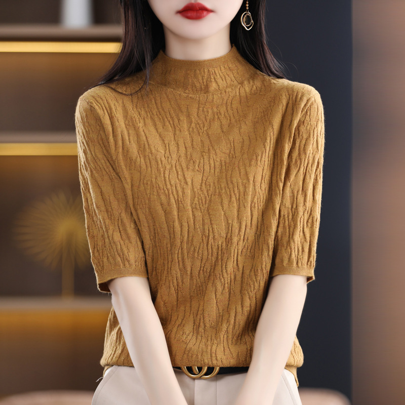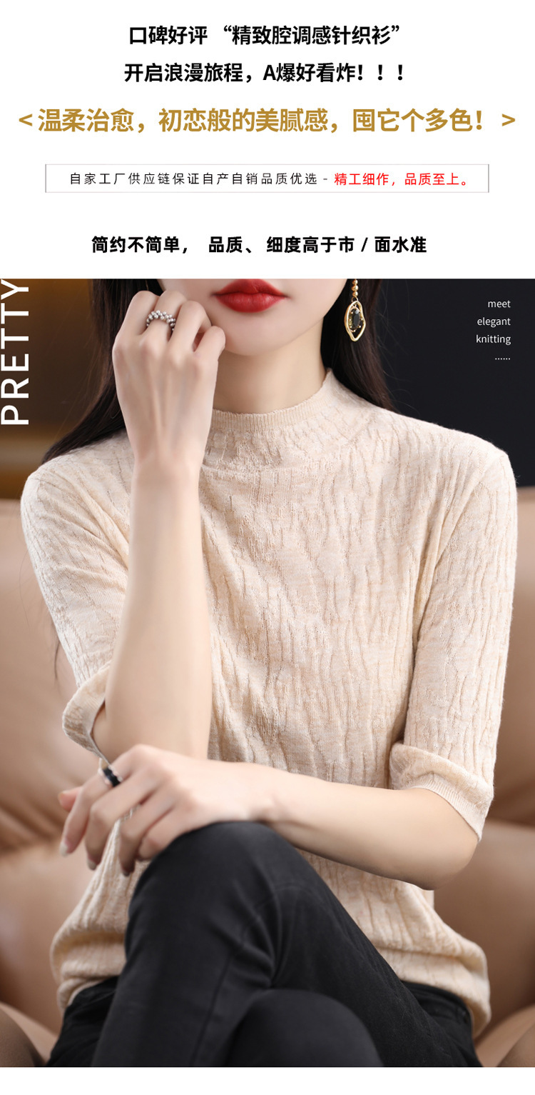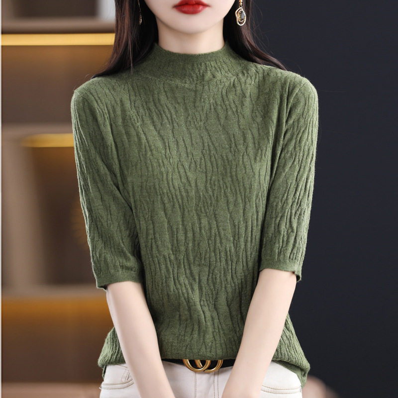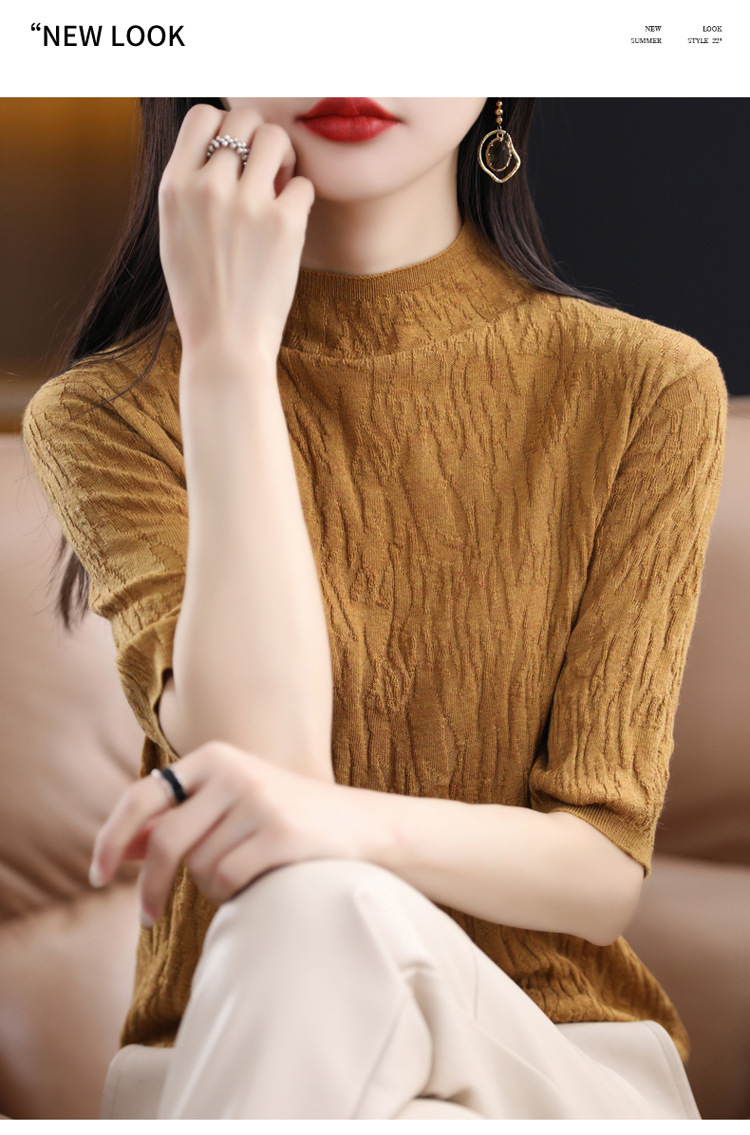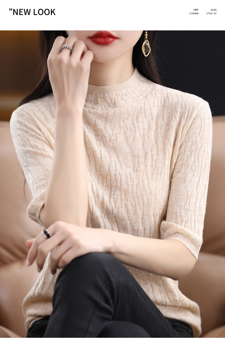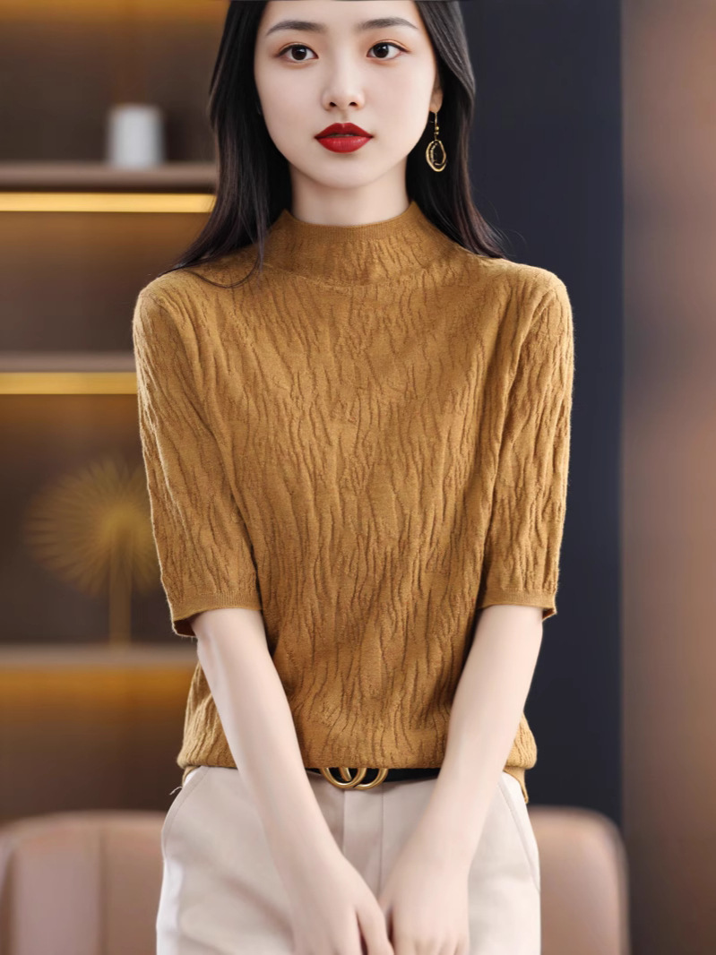 Женский средний рукав короткая яма для дерева темперамент стройный новый пятиконечный рукав с нижним узором осень-зима 2025 трикотажный топ женский