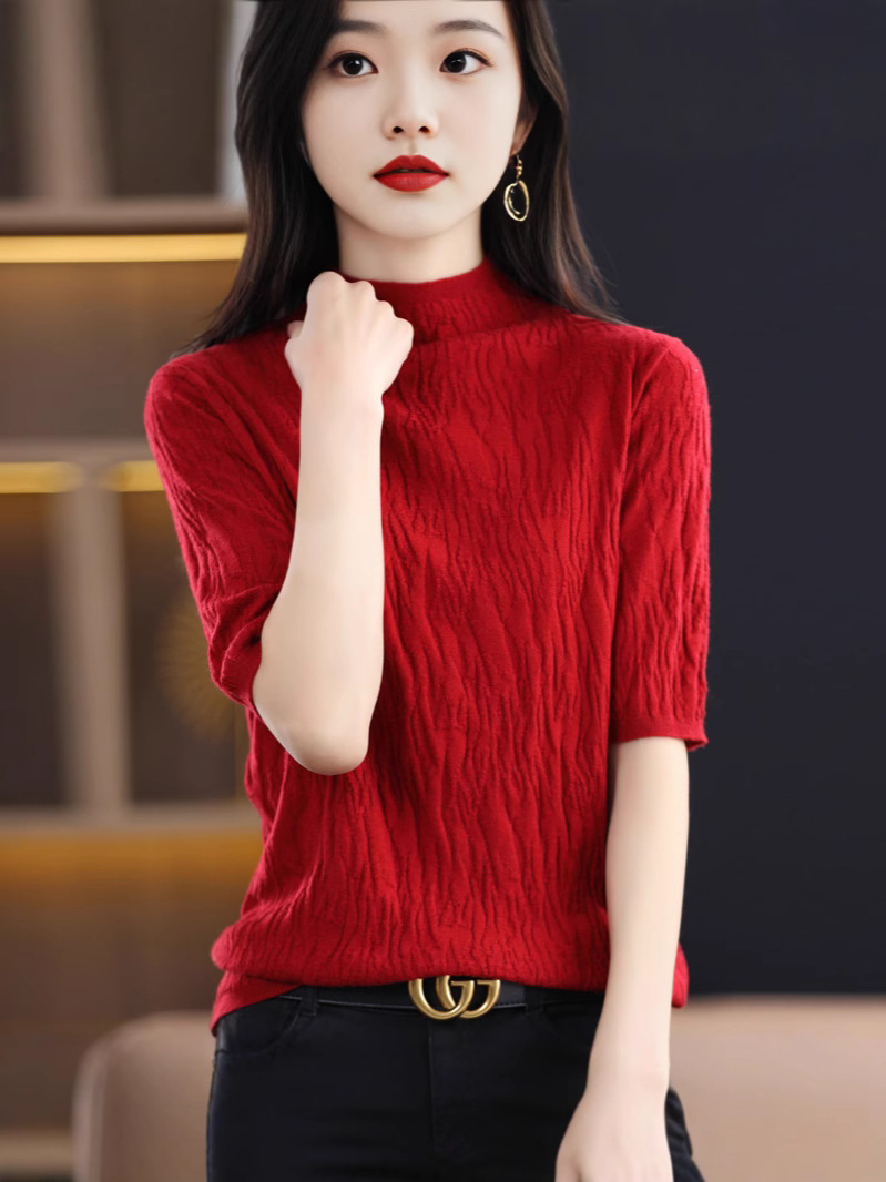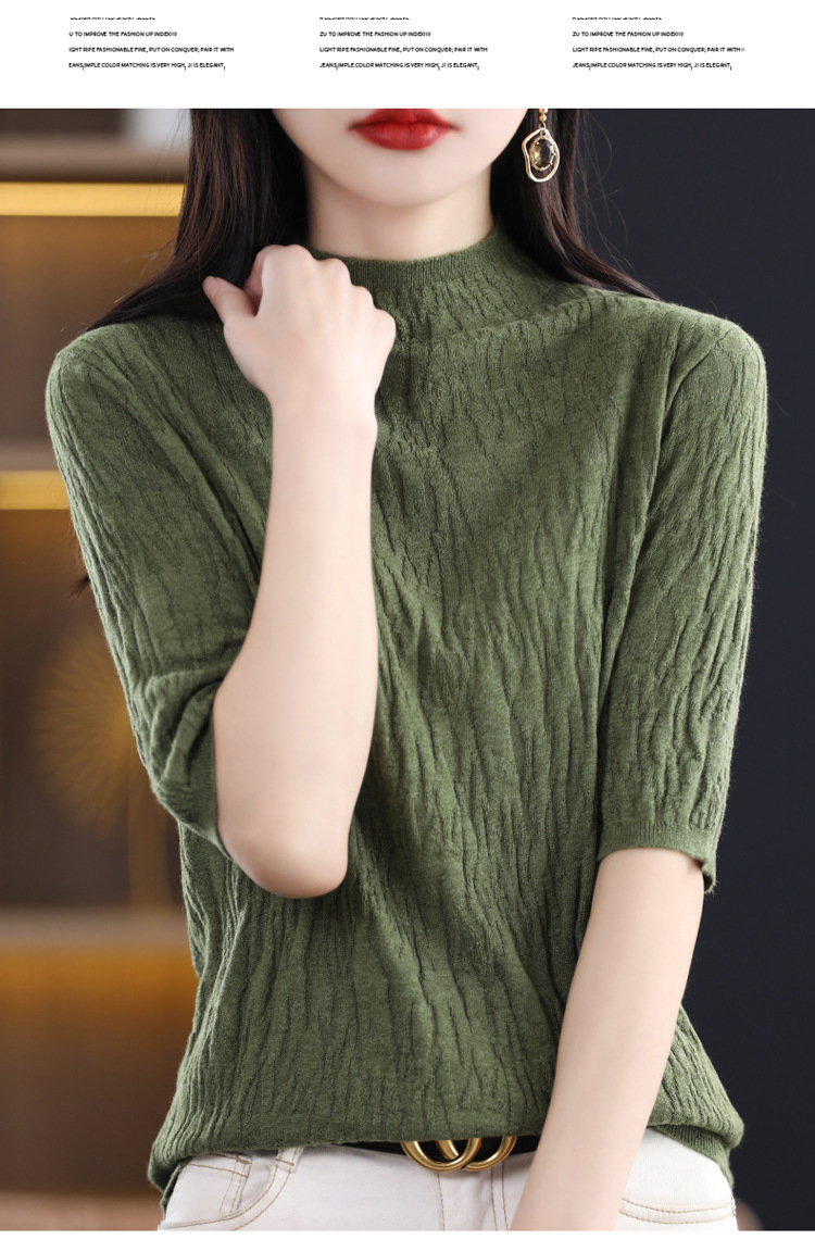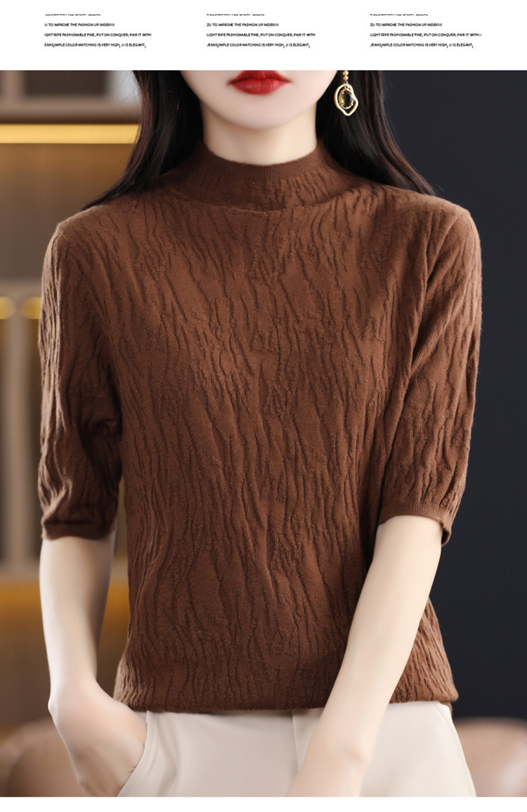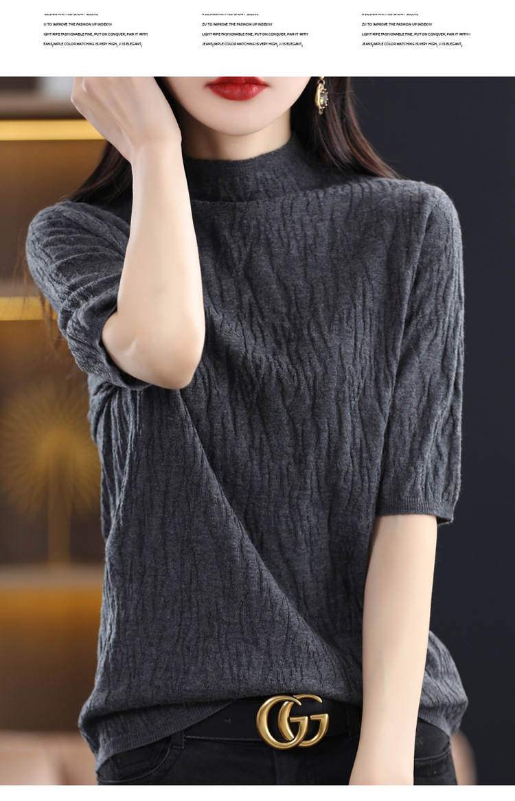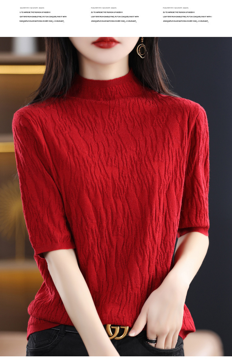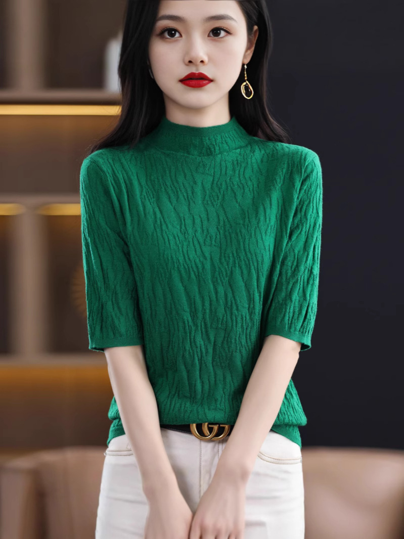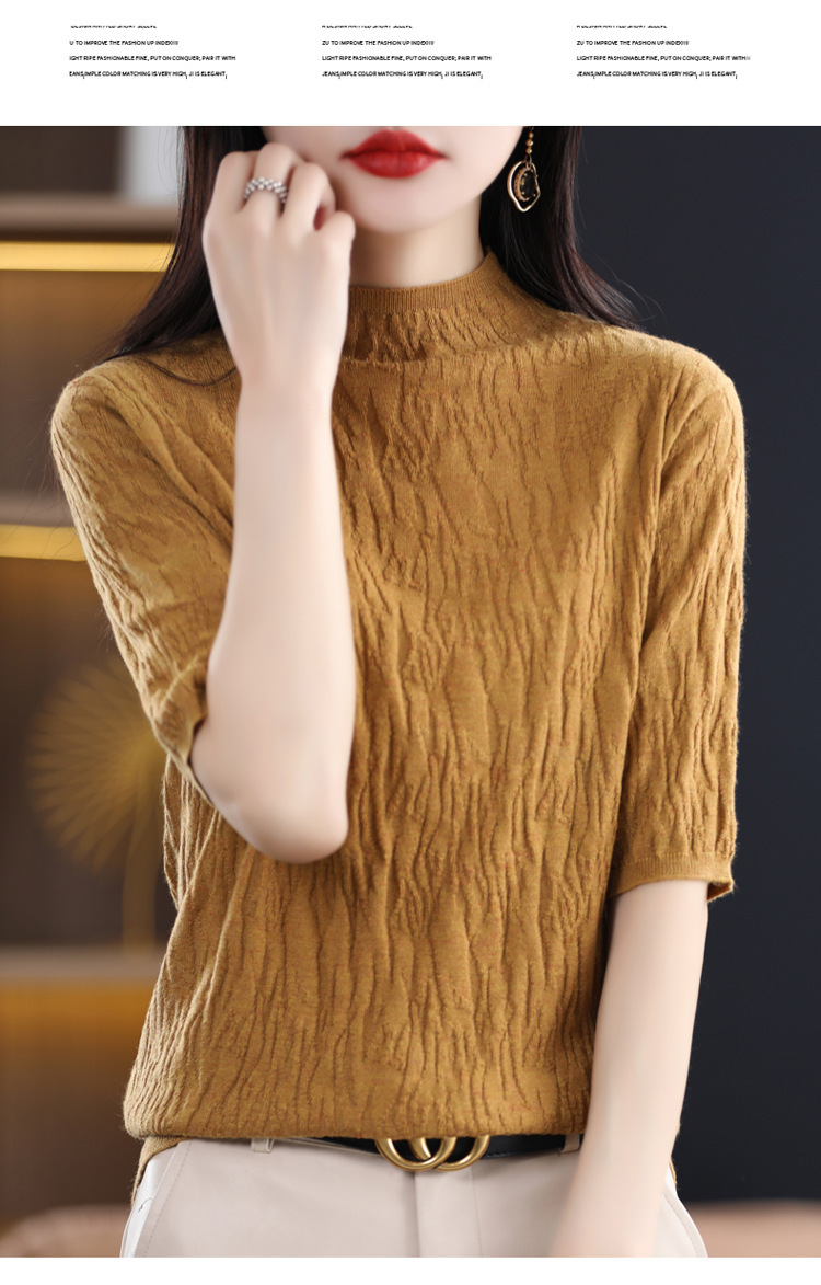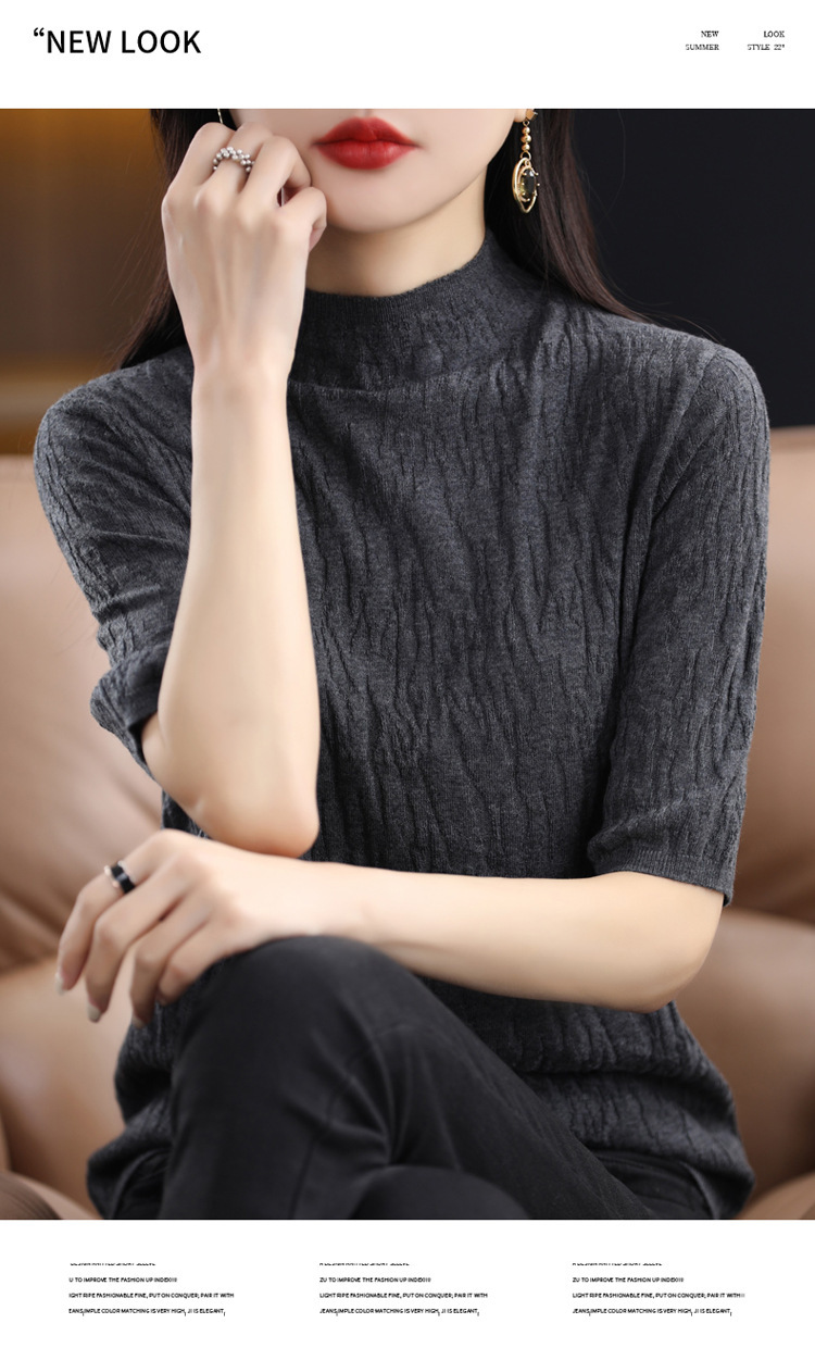 Женский средний рукав короткая яма для дерева темперамент стройный новый пятиконечный рукав с нижним узором осень-зима 2025 трикотажный топ женский