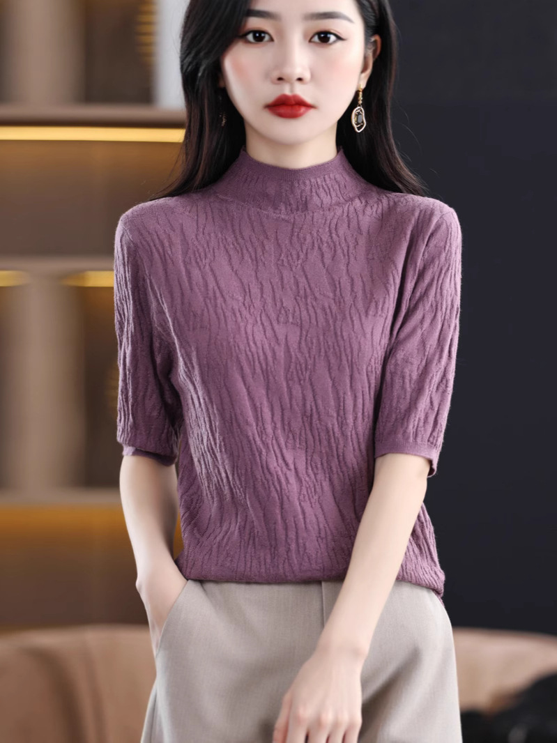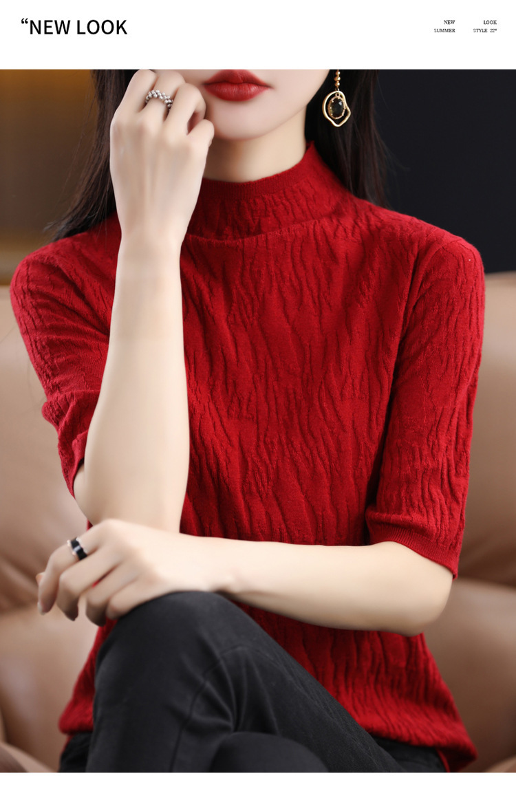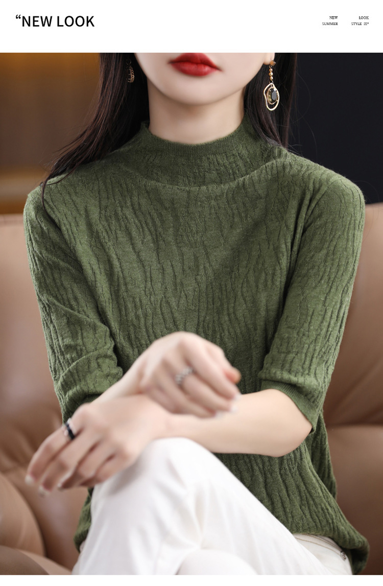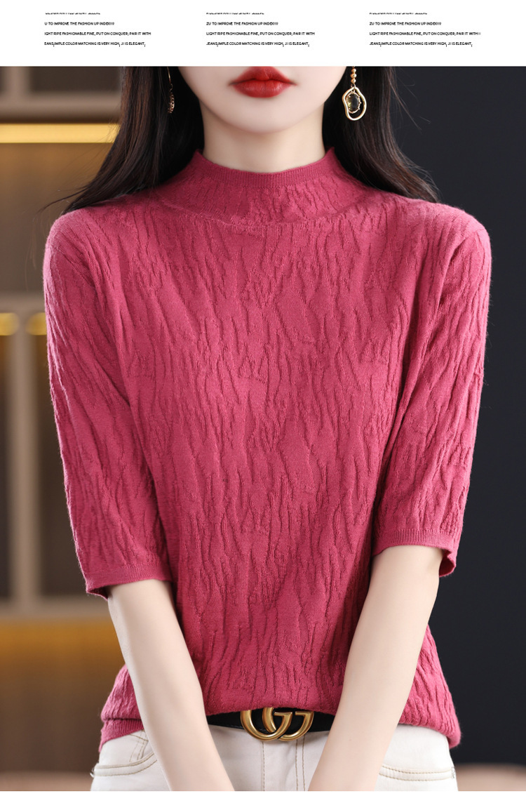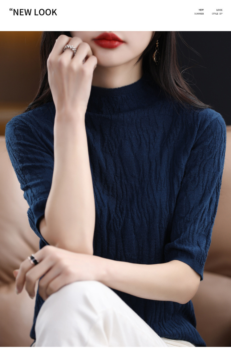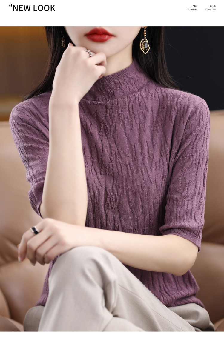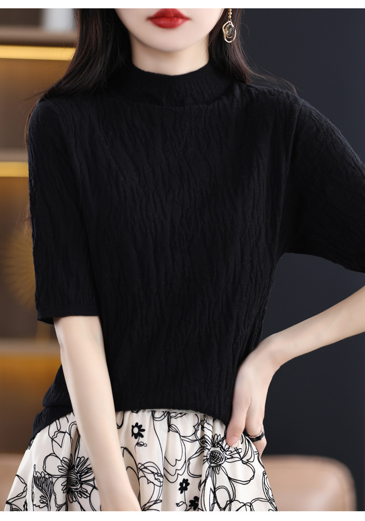 Женский средний рукав короткая яма для дерева темперамент стройный новый пятиконечный рукав с нижним узором осень-зима 2025 трикотажный топ женский