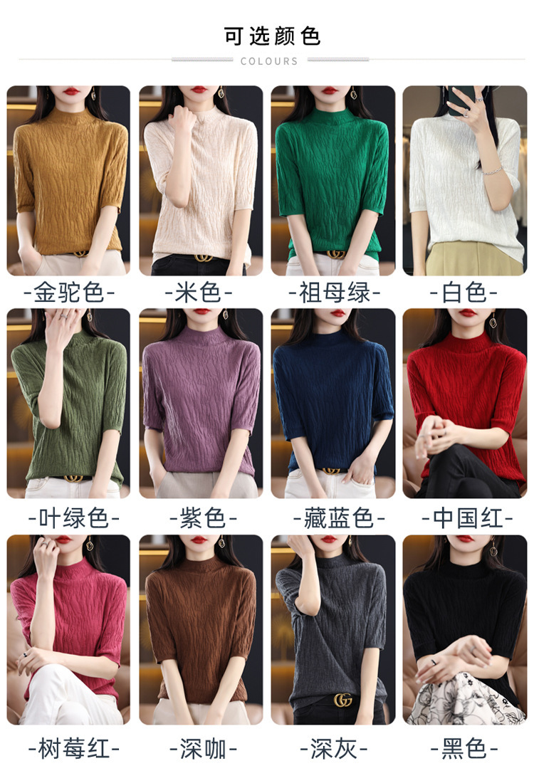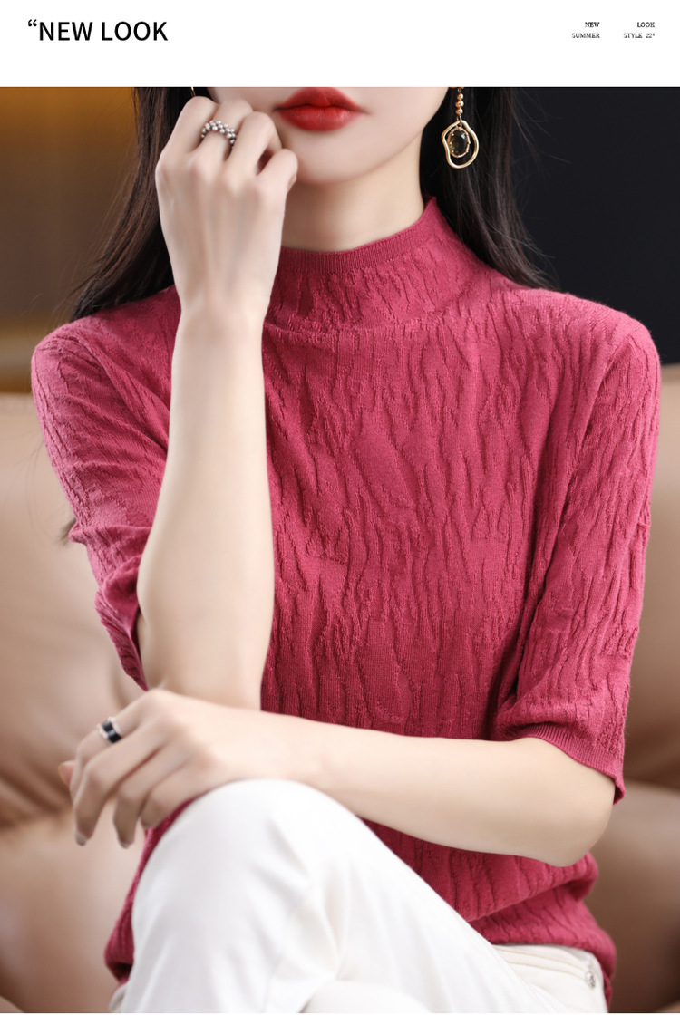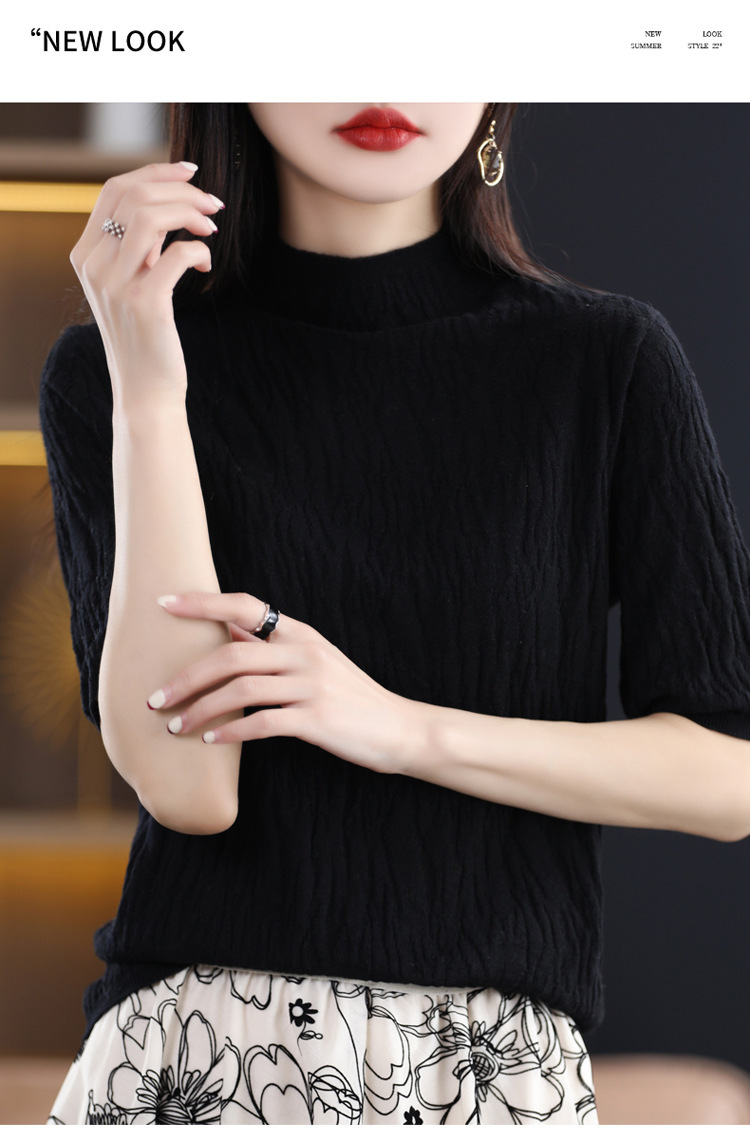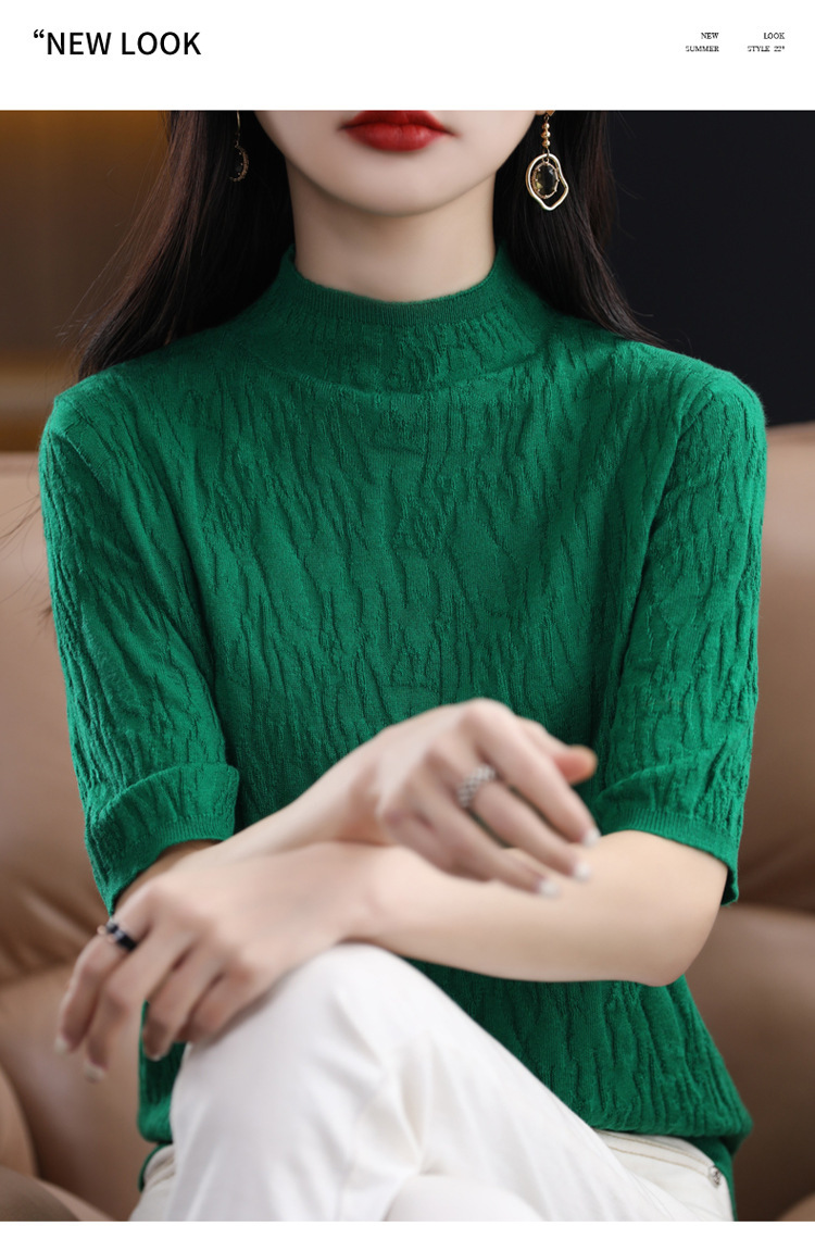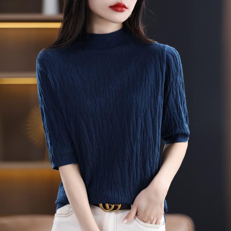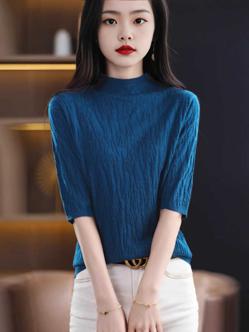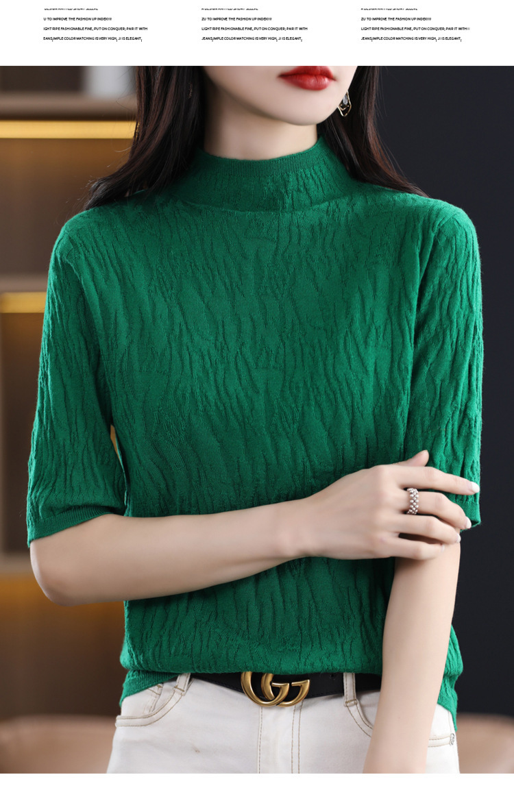 Женский средний рукав короткая яма для дерева темперамент стройный новый пятиконечный рукав с нижним узором осень-зима 2025 трикотажный топ женский