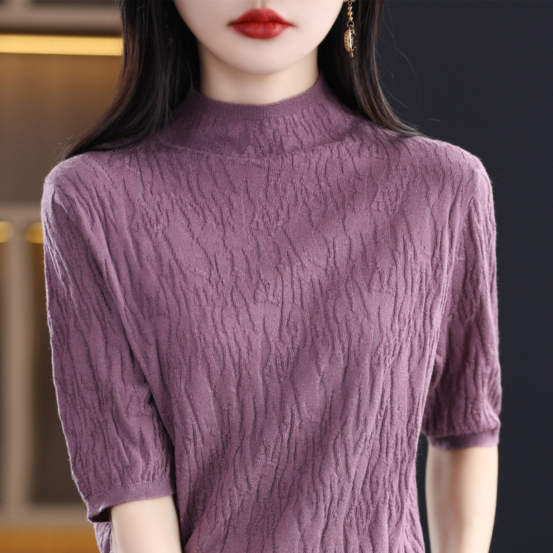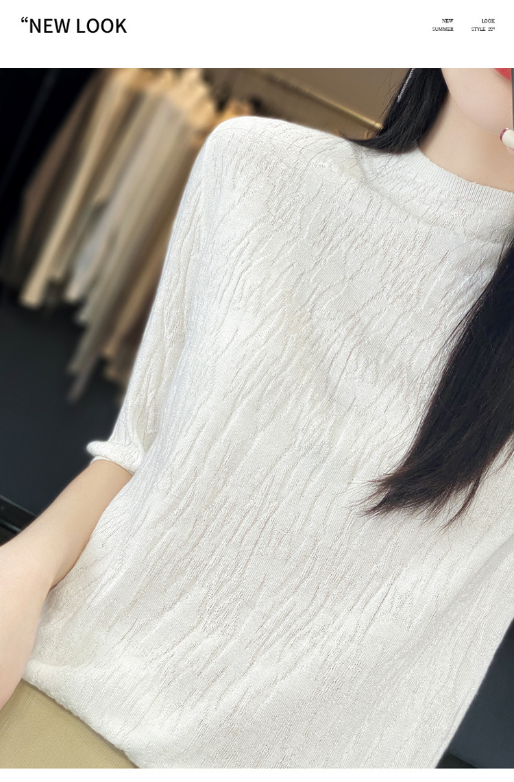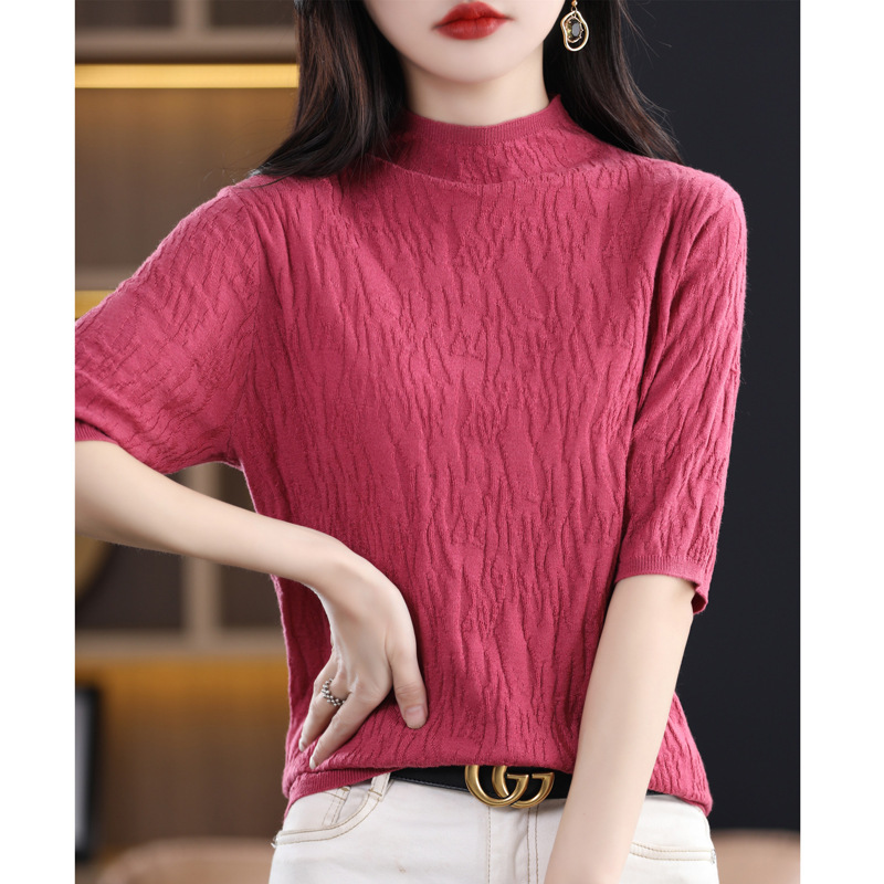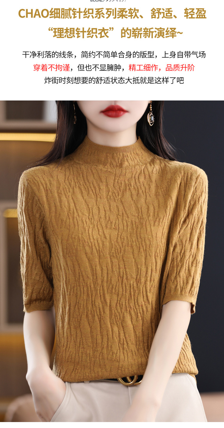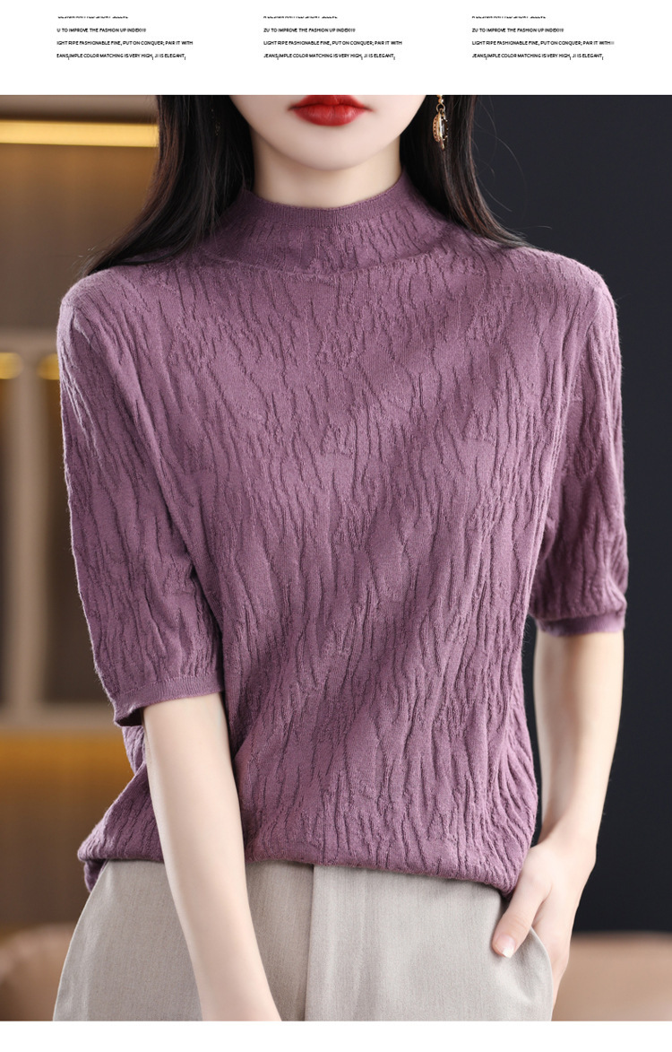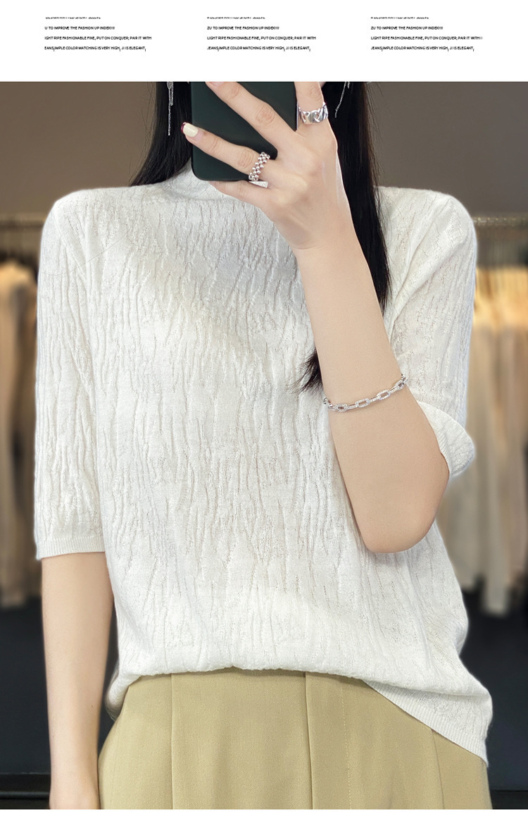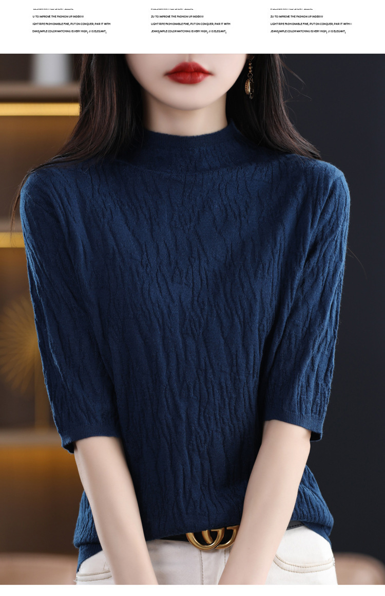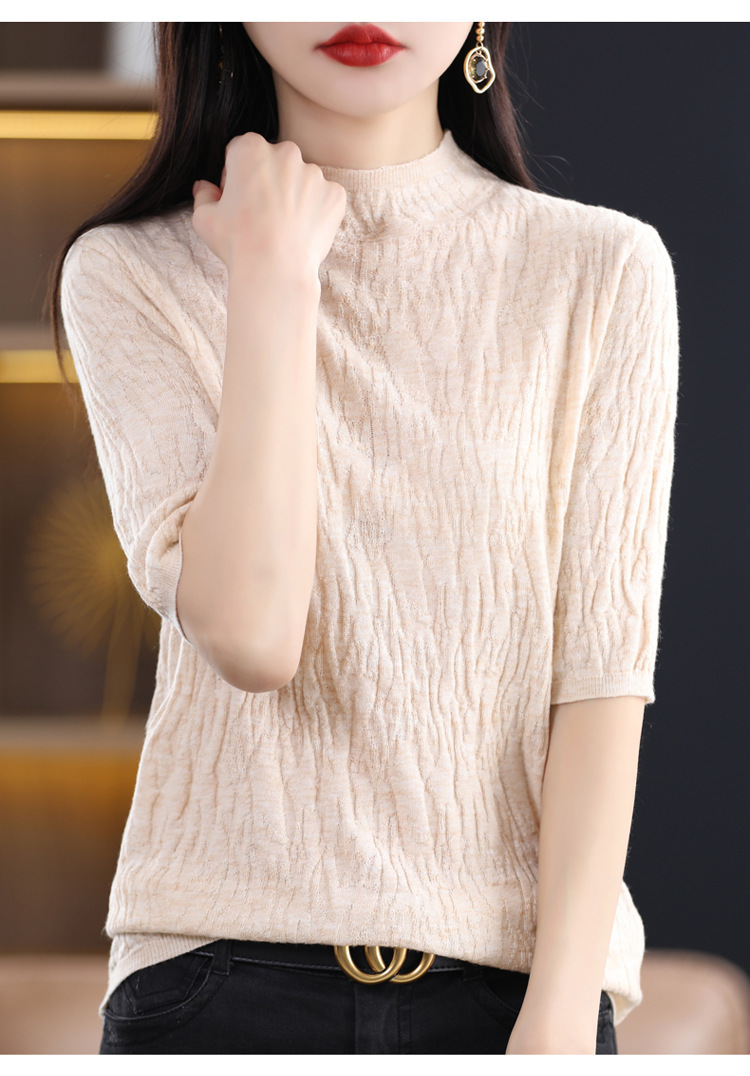 Женский средний рукав короткая яма для дерева темперамент стройный новый пятиконечный рукав с нижним узором осень-зима 2025 трикотажный топ женский