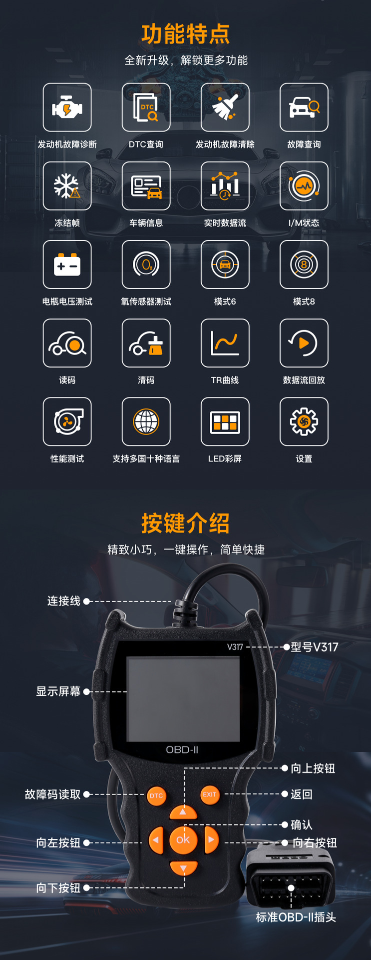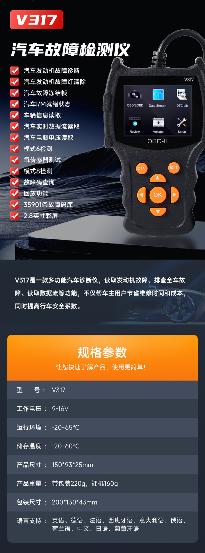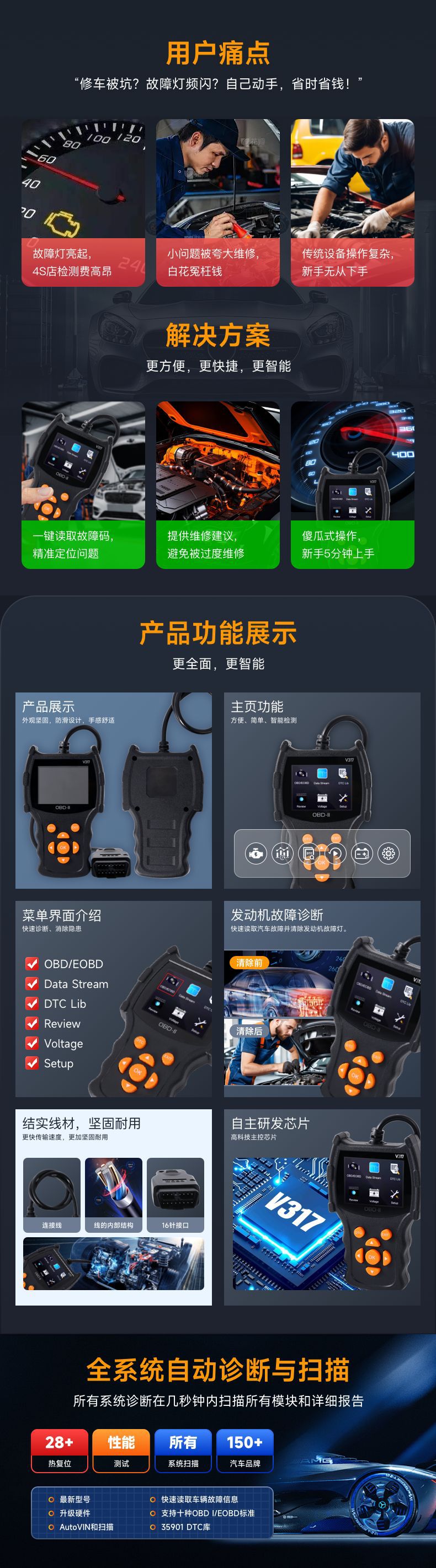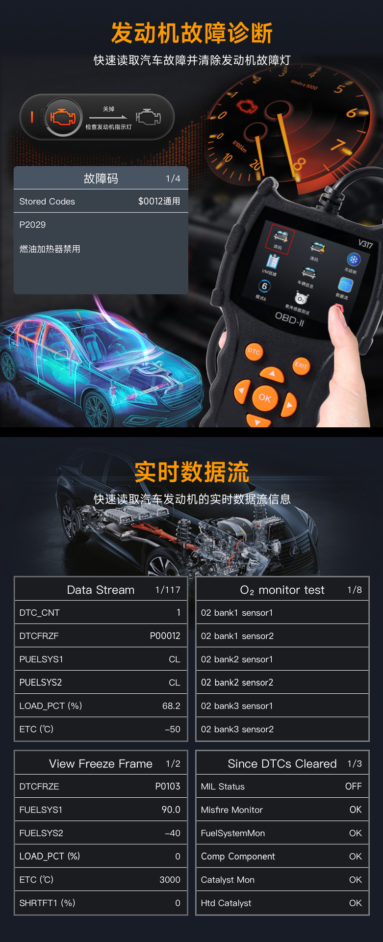 Диагностический инструмент для автомобилей, детектор неисправностей двигателя, прибор для диагностики, тест производительности потока данных, декодер OBD
