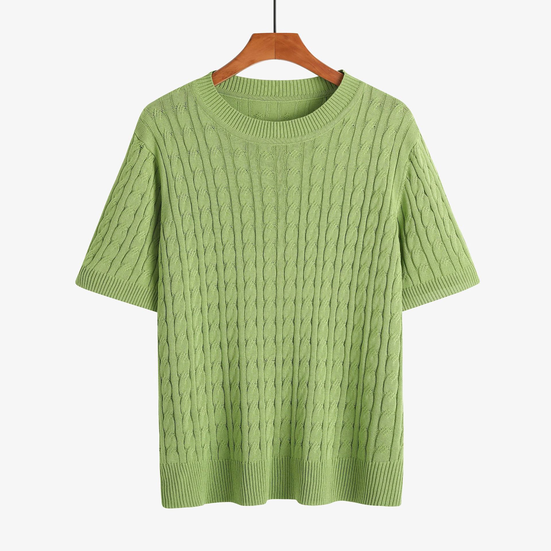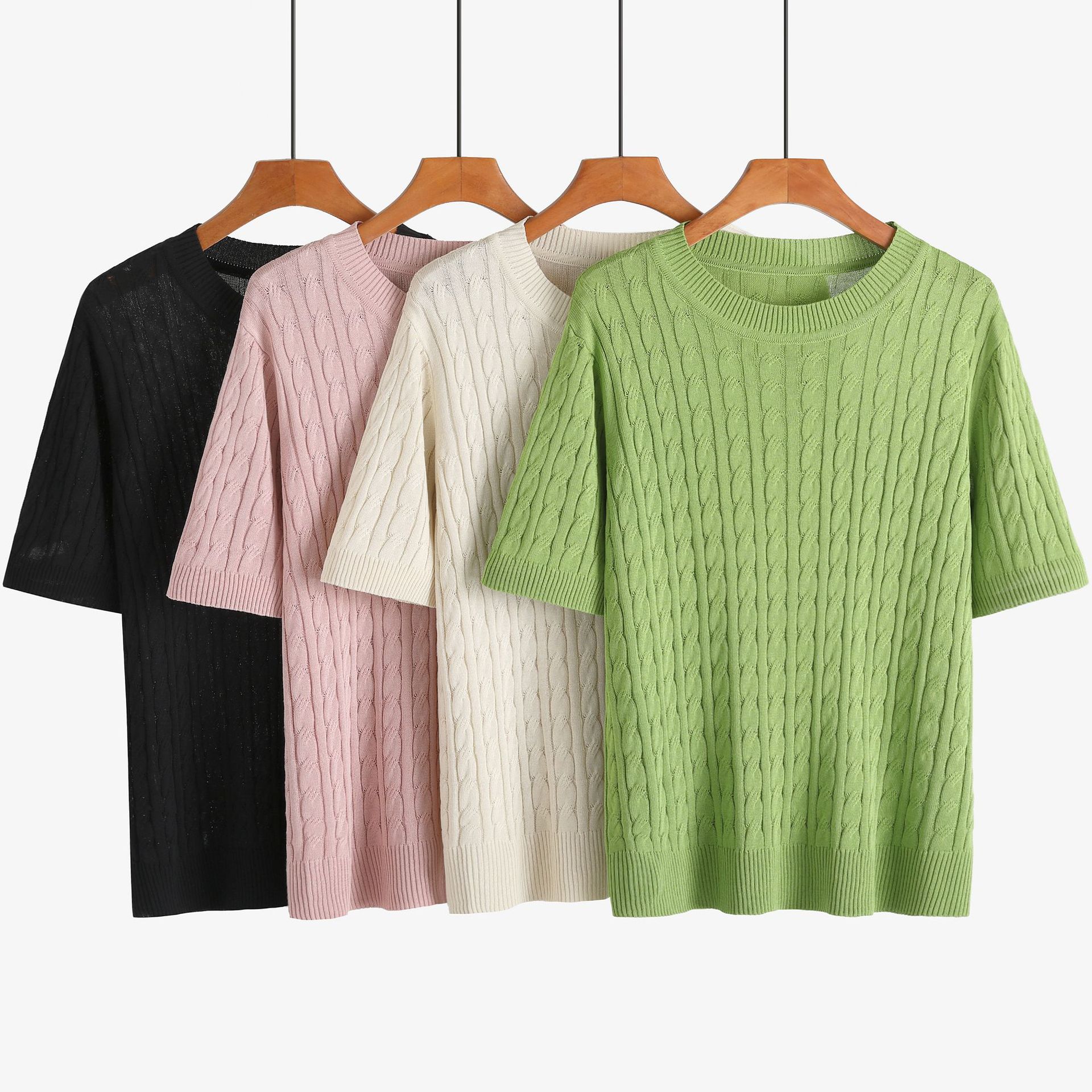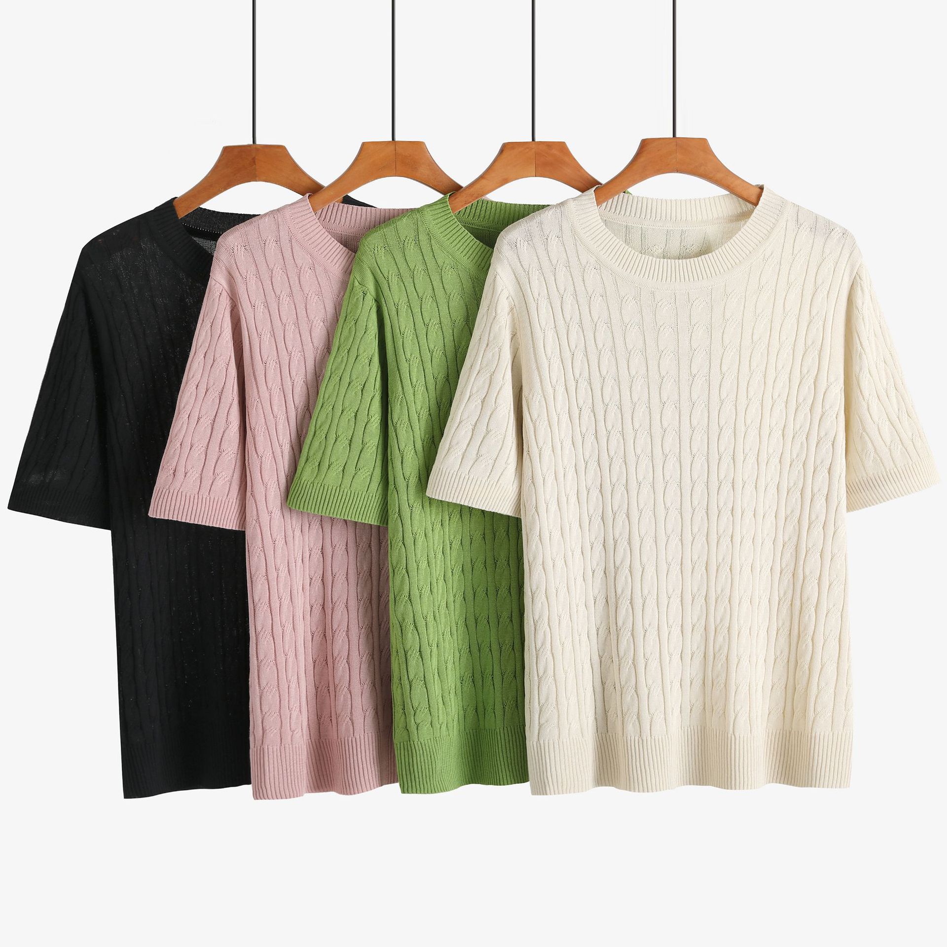 2025 весна и лето новый ретро спирея вязаная девушка пуловер плюс толстый размер круглый шею ледяной шелк топ 220 кг