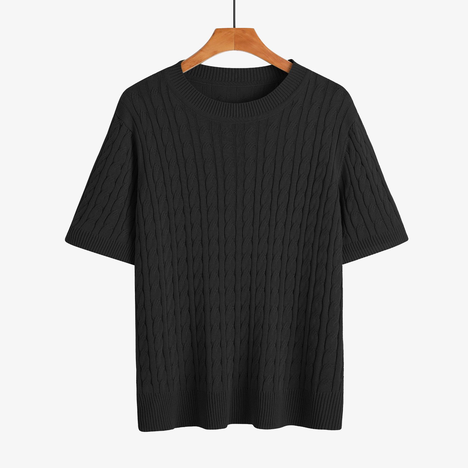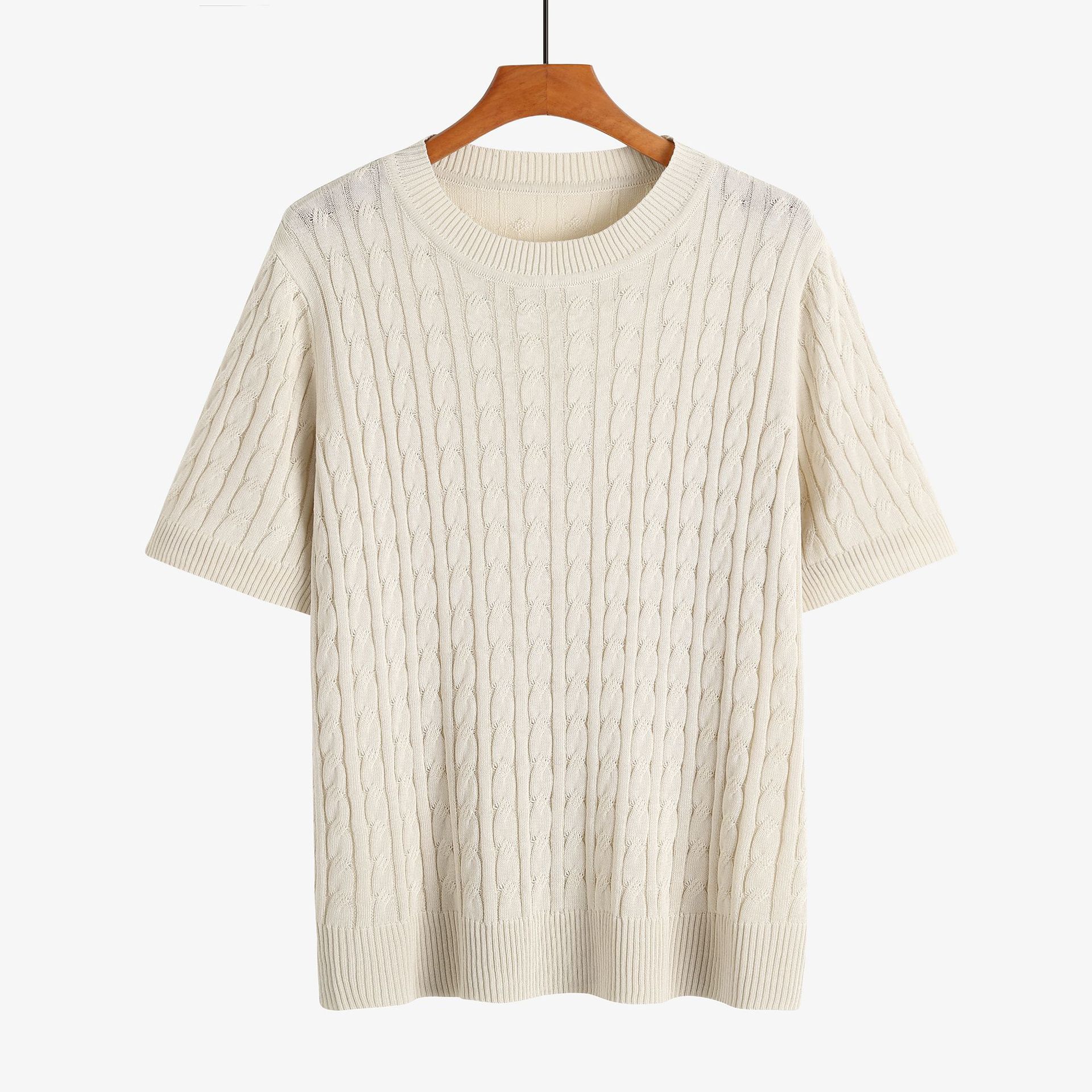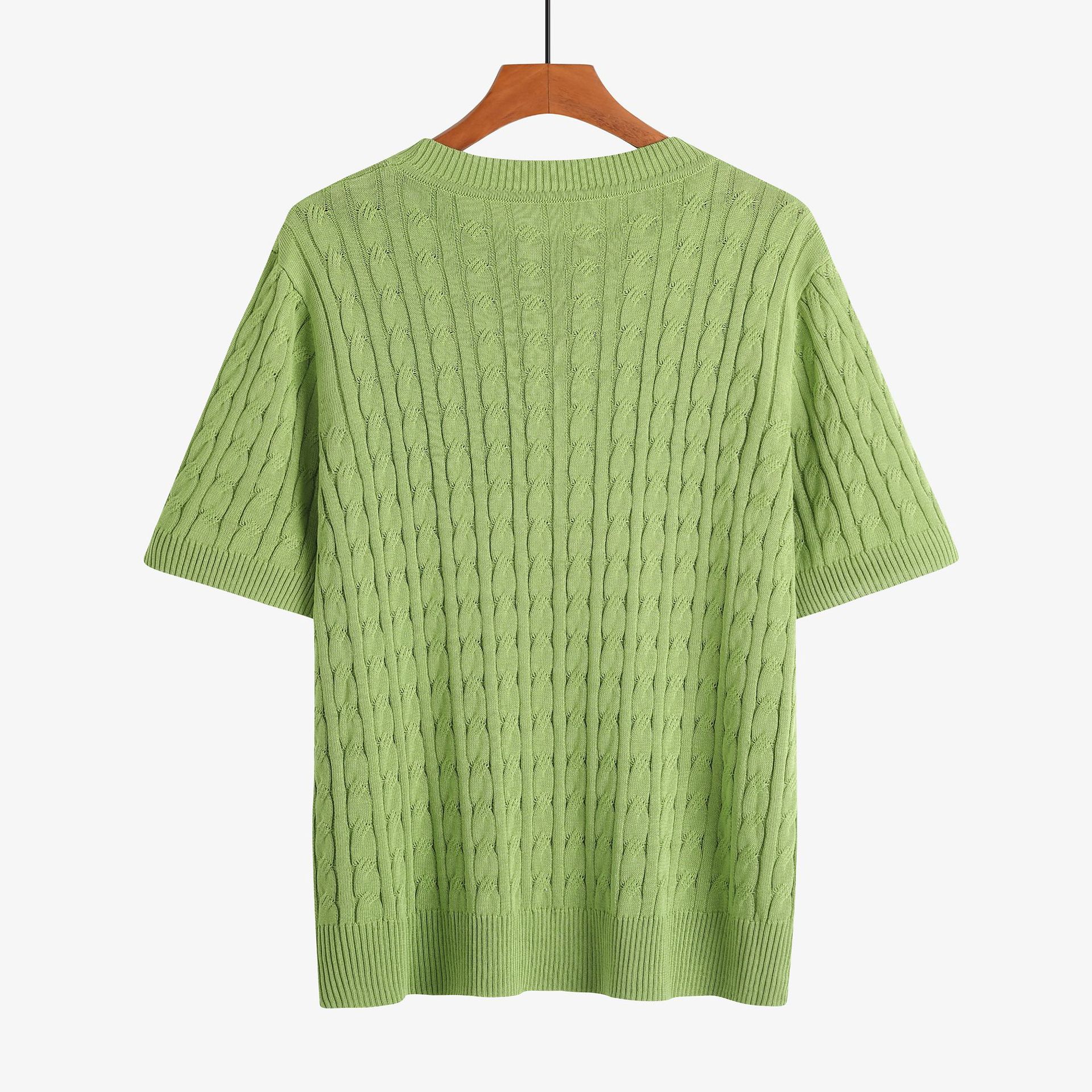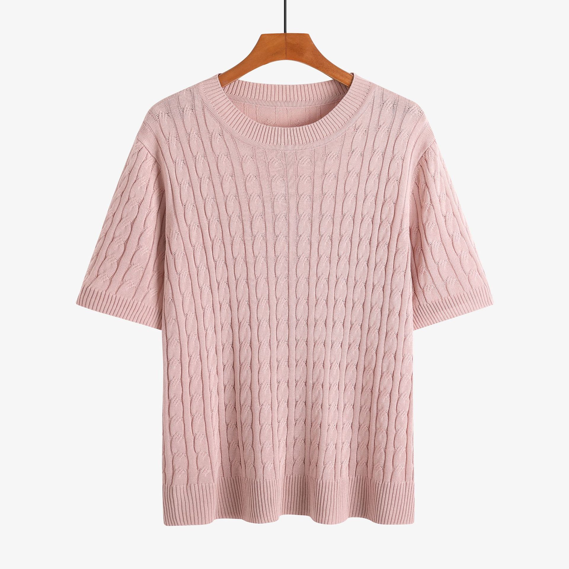 2025 весна и лето новый ретро спирея вязаная девушка пуловер плюс толстый размер круглый шею ледяной шелк топ 220 кг