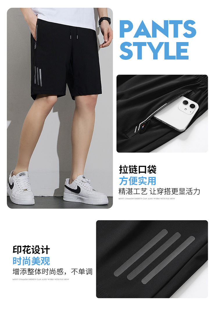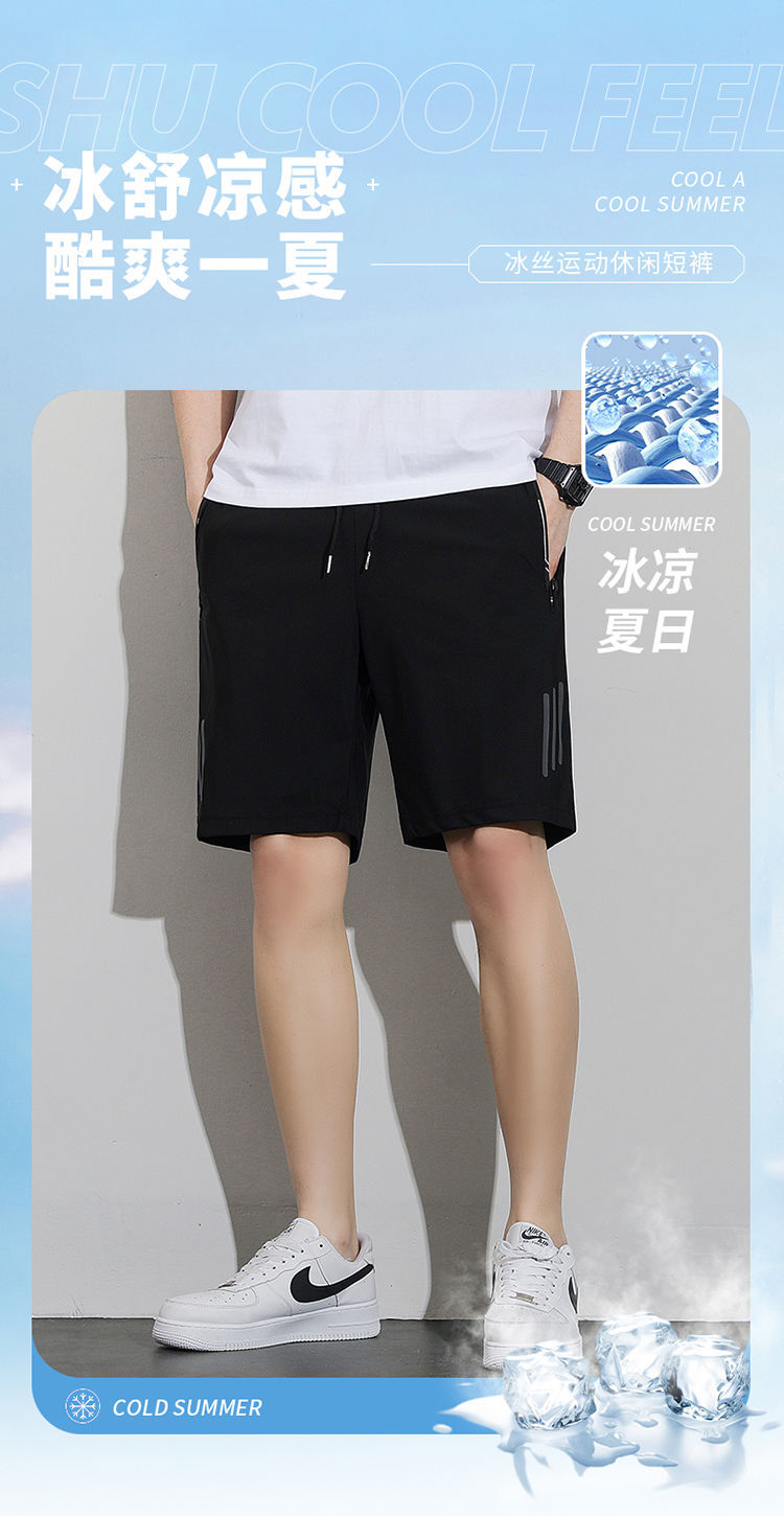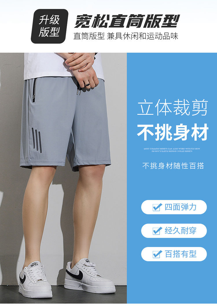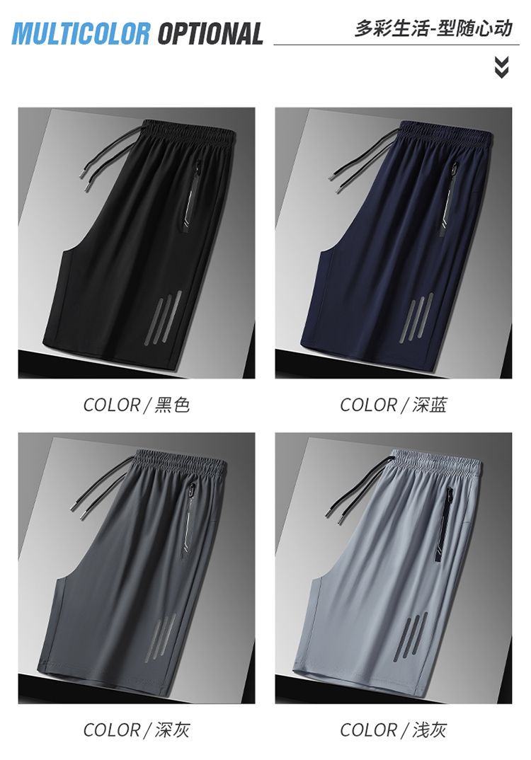2025 Летние шелковые шорты для мальчиков Летние тонкие быстрые виды спорта свободные мужские повседневные брюки плюс размер