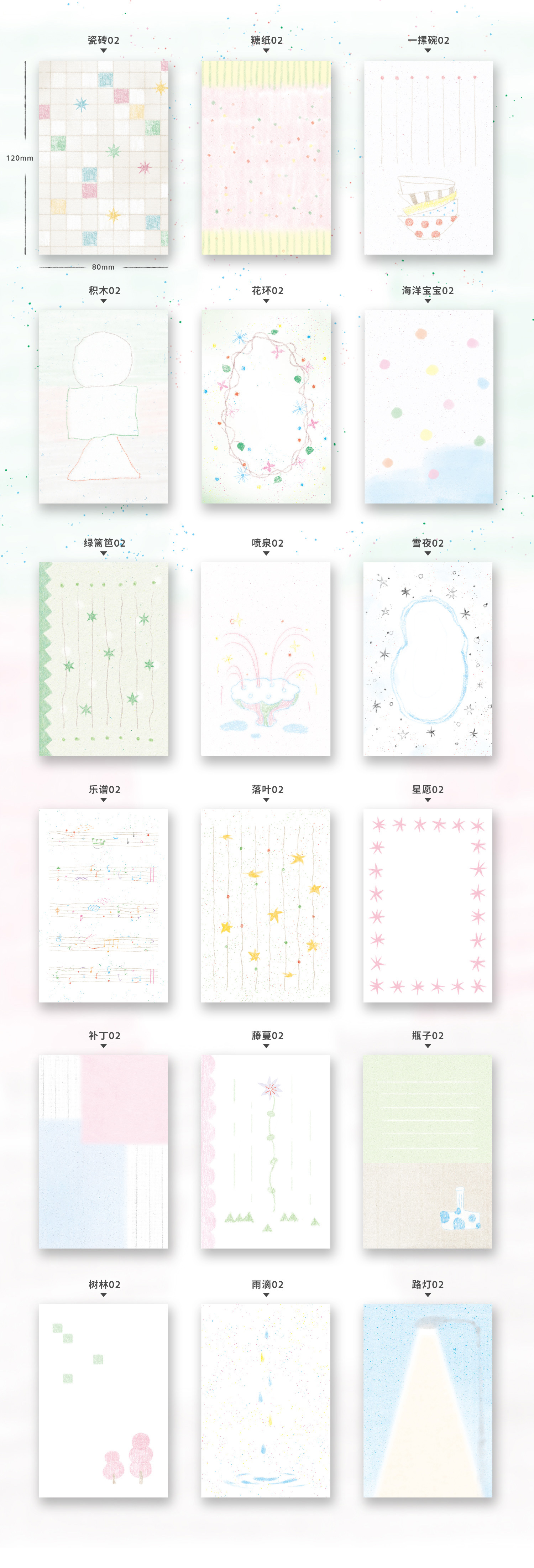 Плитка 02; Конфетная бумага 02; Стопка мисок 02; Строительные блоки 02; Гирлянда 02; Океан малышка 02; хедж 02; Фонтан 02; Снежная ночь 02; Ноты 02; Упавшие листья 02; Звездное желание 02; Патч 02; Виноградная лоза 02; бутылка 02; лес 02; Капли дождя 02; Уличный фонарь 02