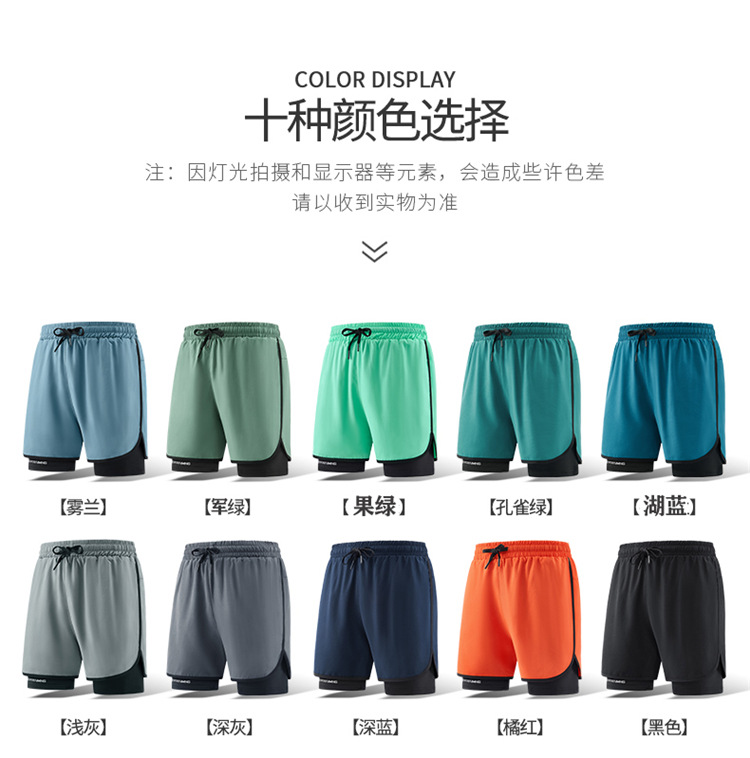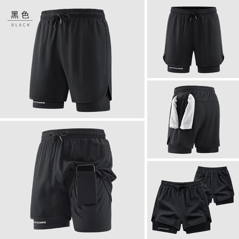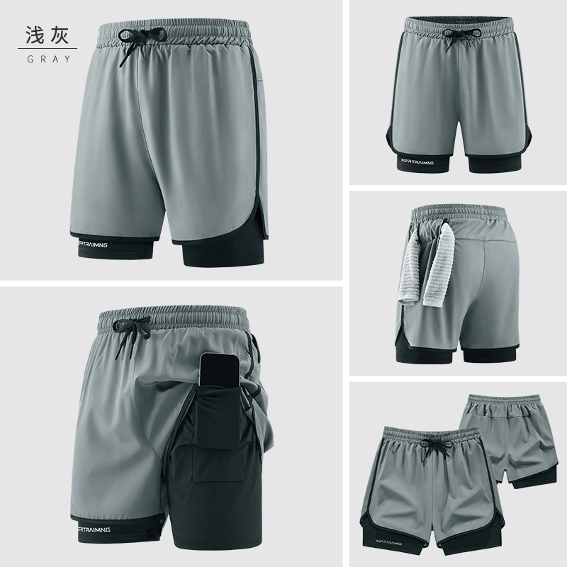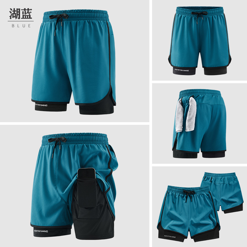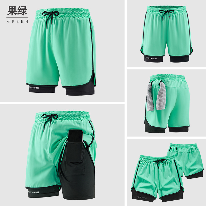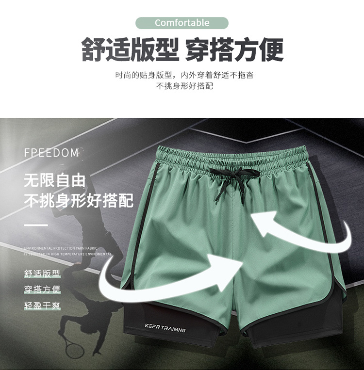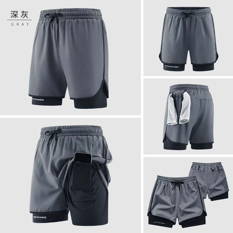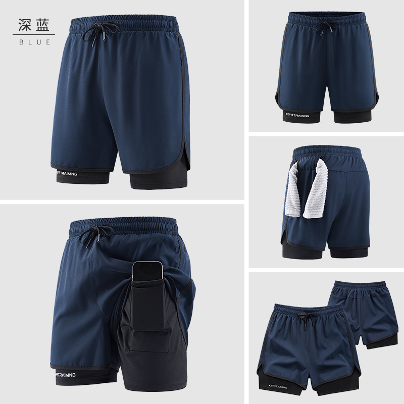 Летние тонкие быстрые сухие шорты мужские поддельные два двухслойных мужских трёхочковых брюки ледяной шелк случайный марафон