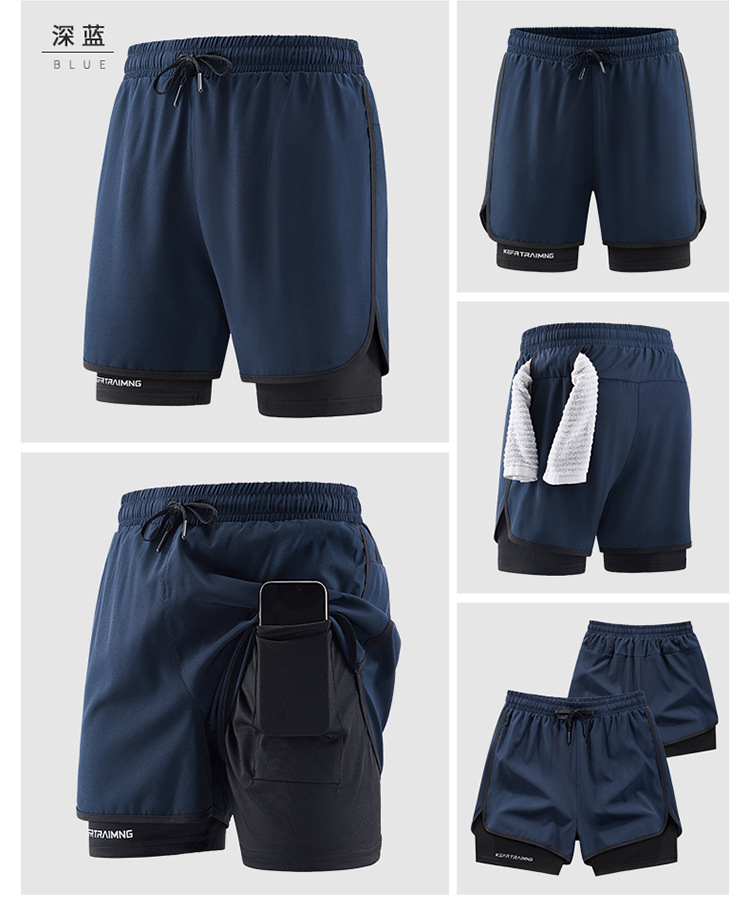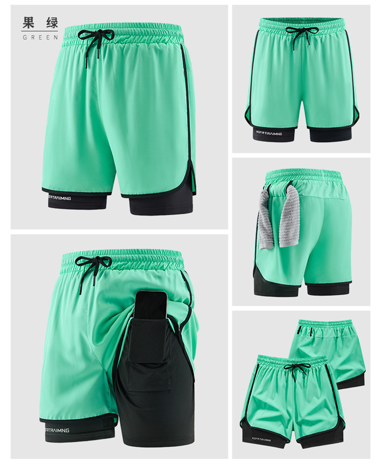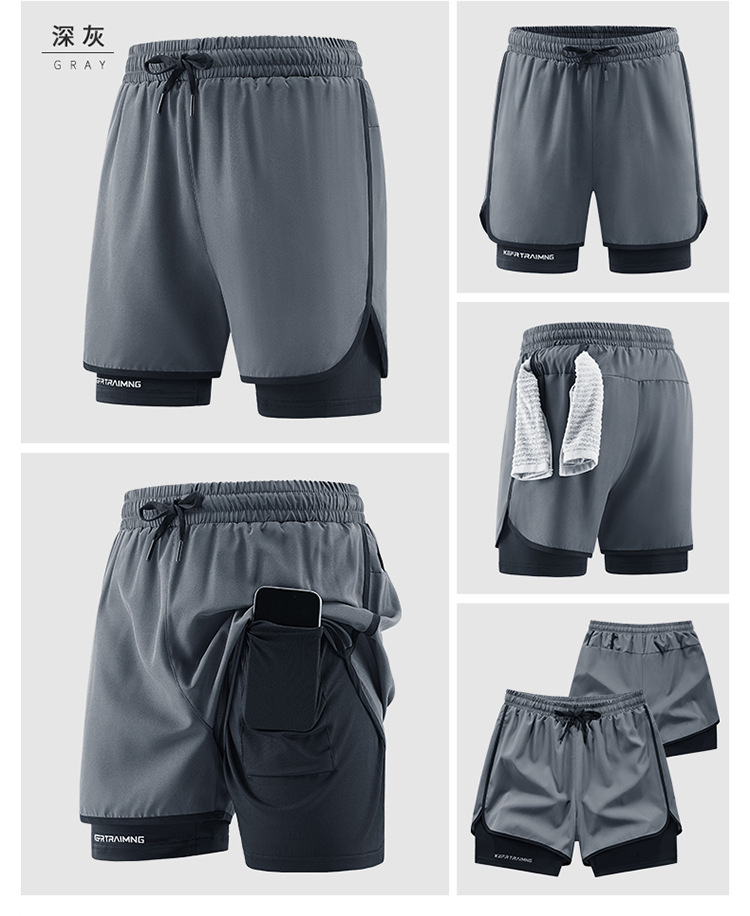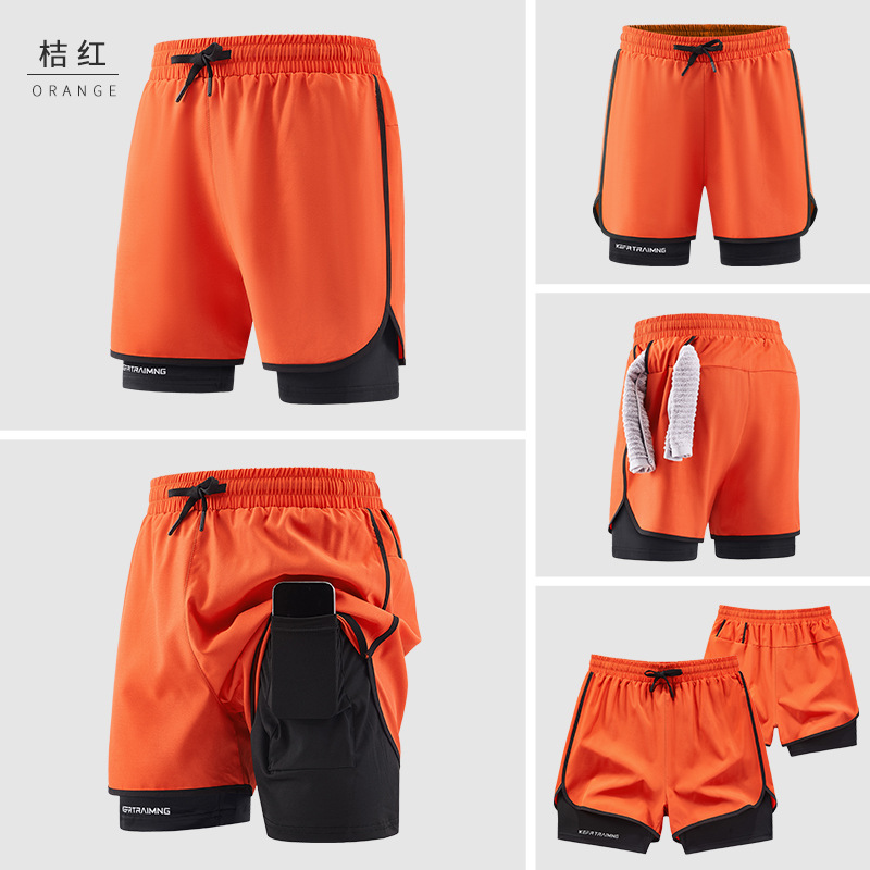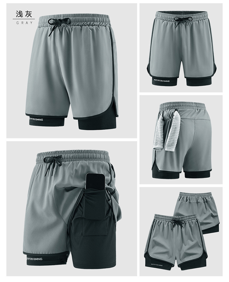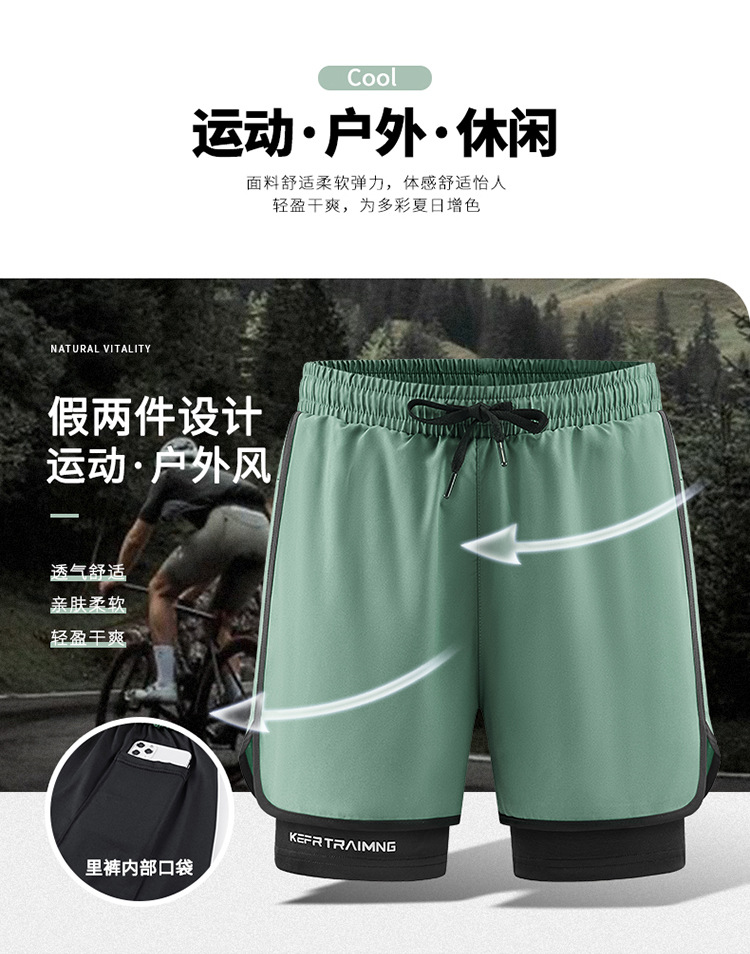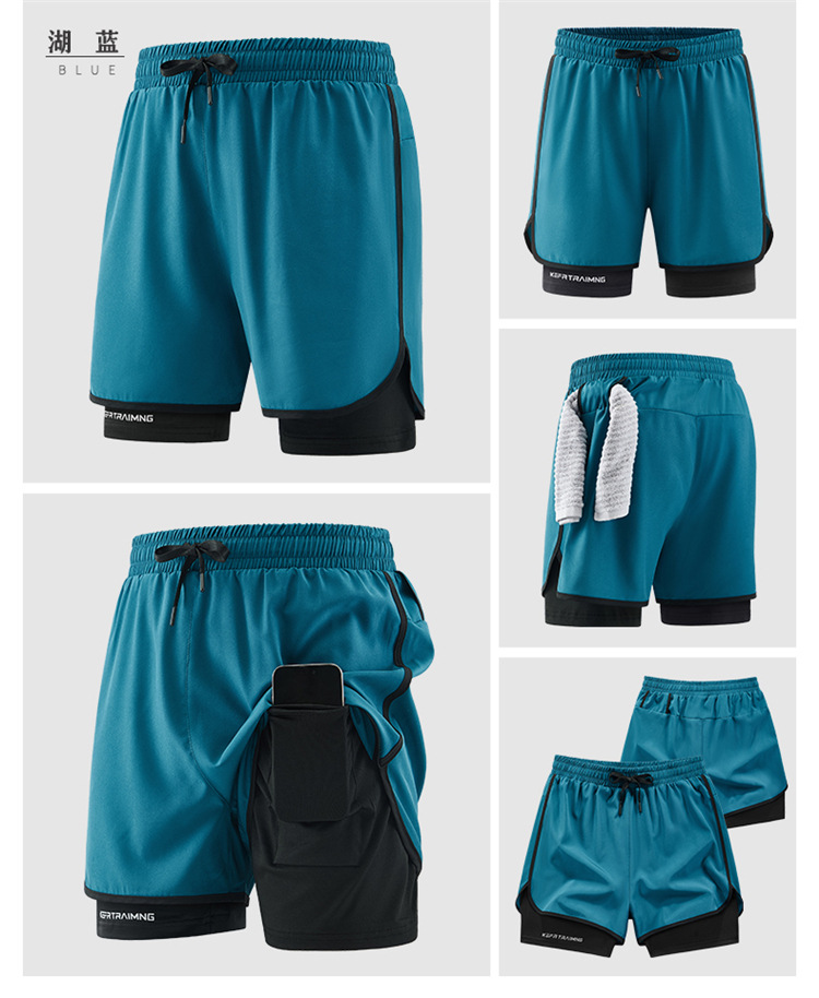 Летние тонкие быстрые сухие шорты мужские поддельные два двухслойных мужских трёхочковых брюки ледяной шелк случайный марафон