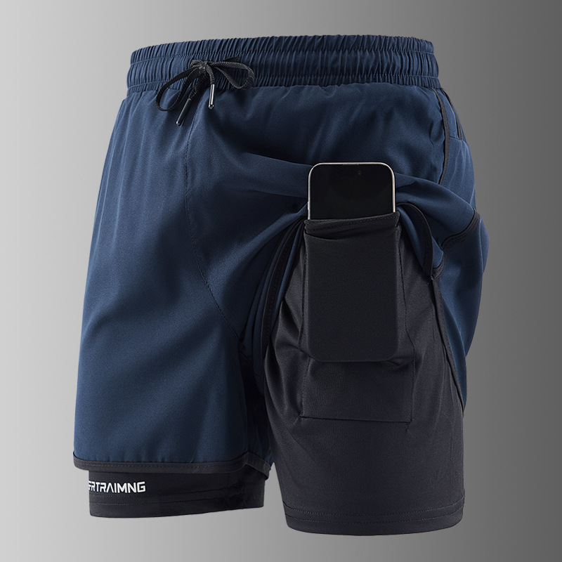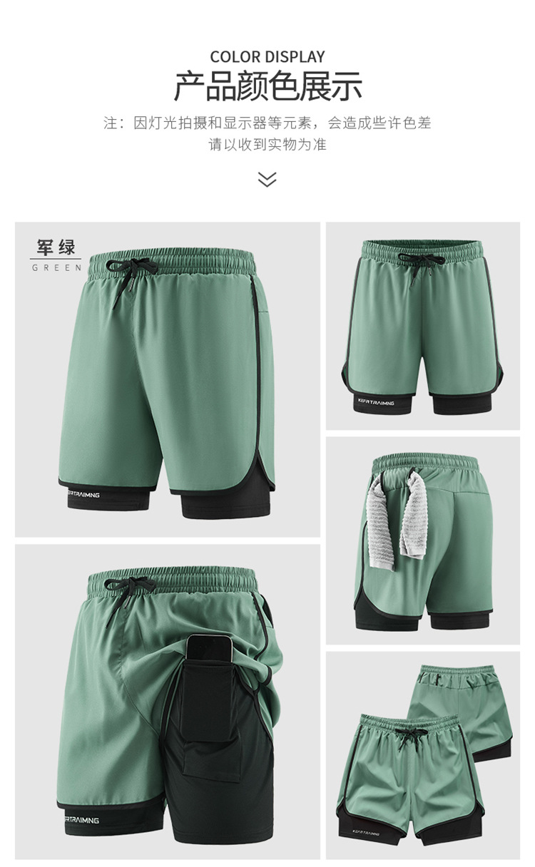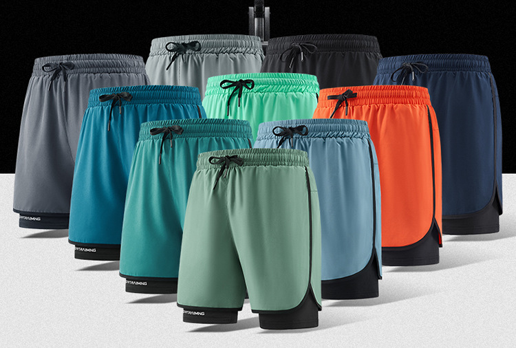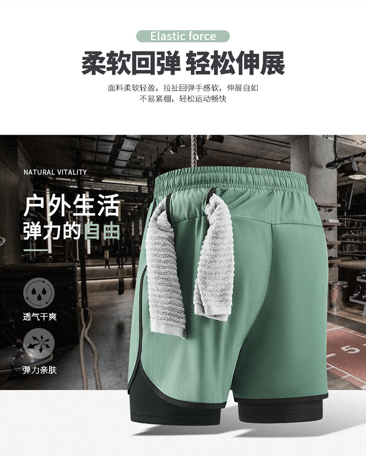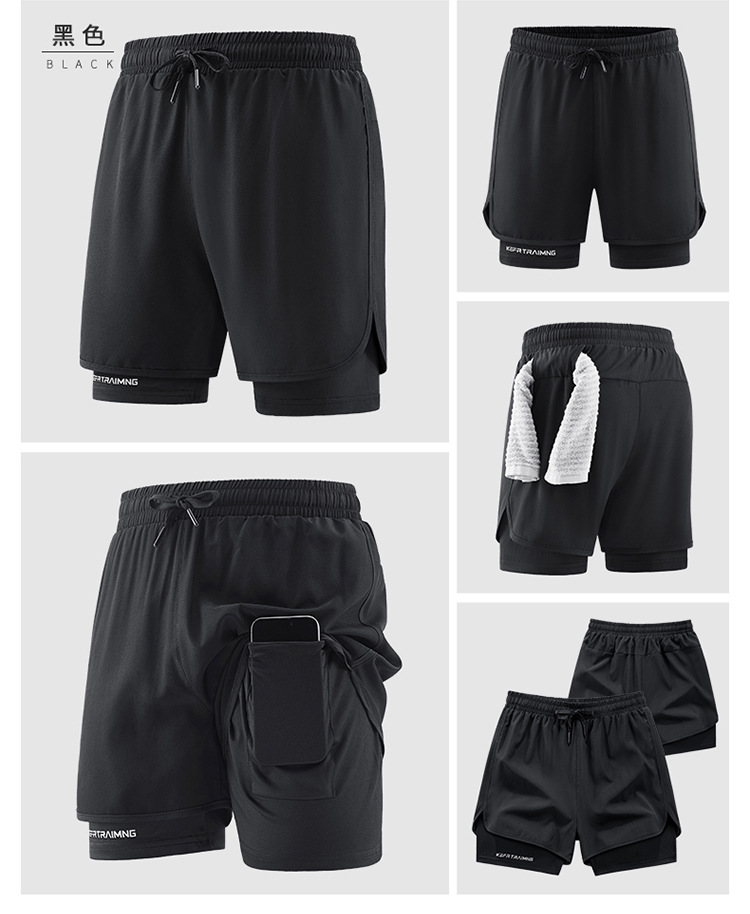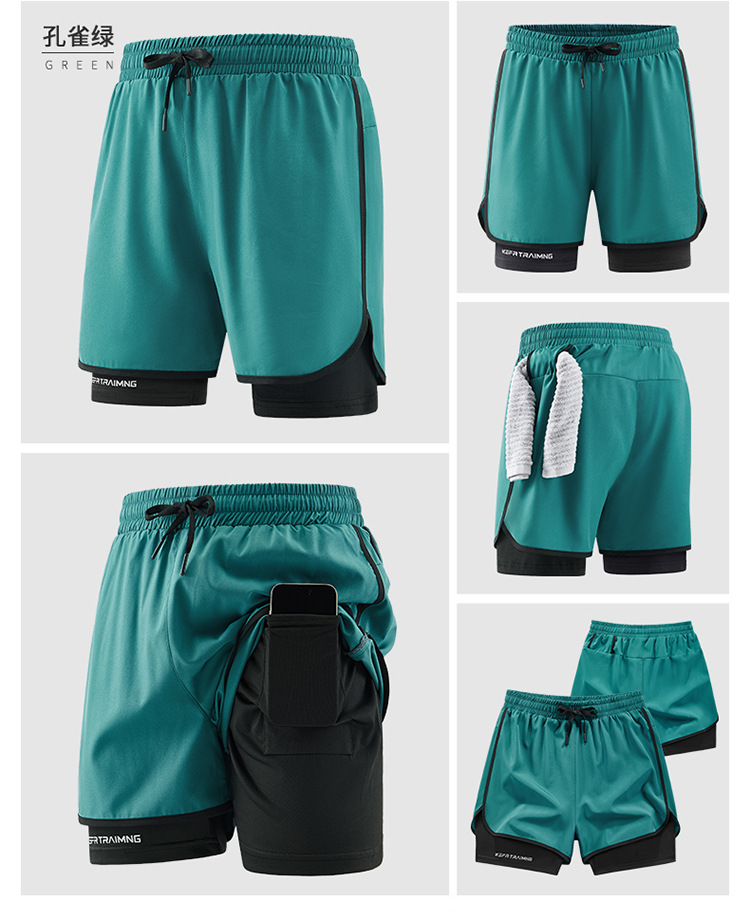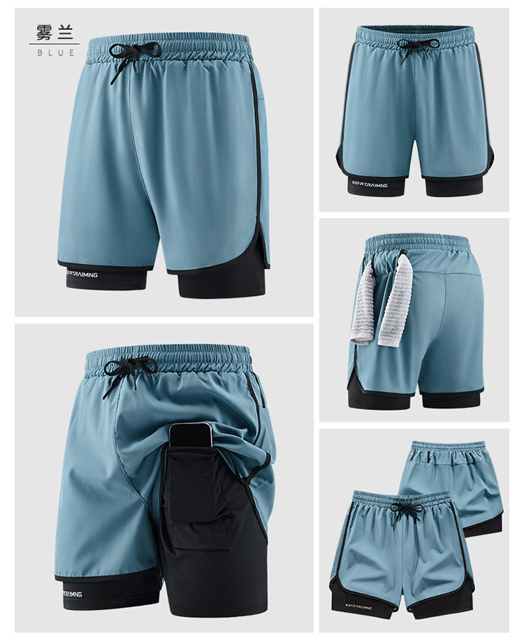 Летние тонкие быстрые сухие шорты мужские поддельные два двухслойных мужских трёхочковых брюки ледяной шелк случайный марафон