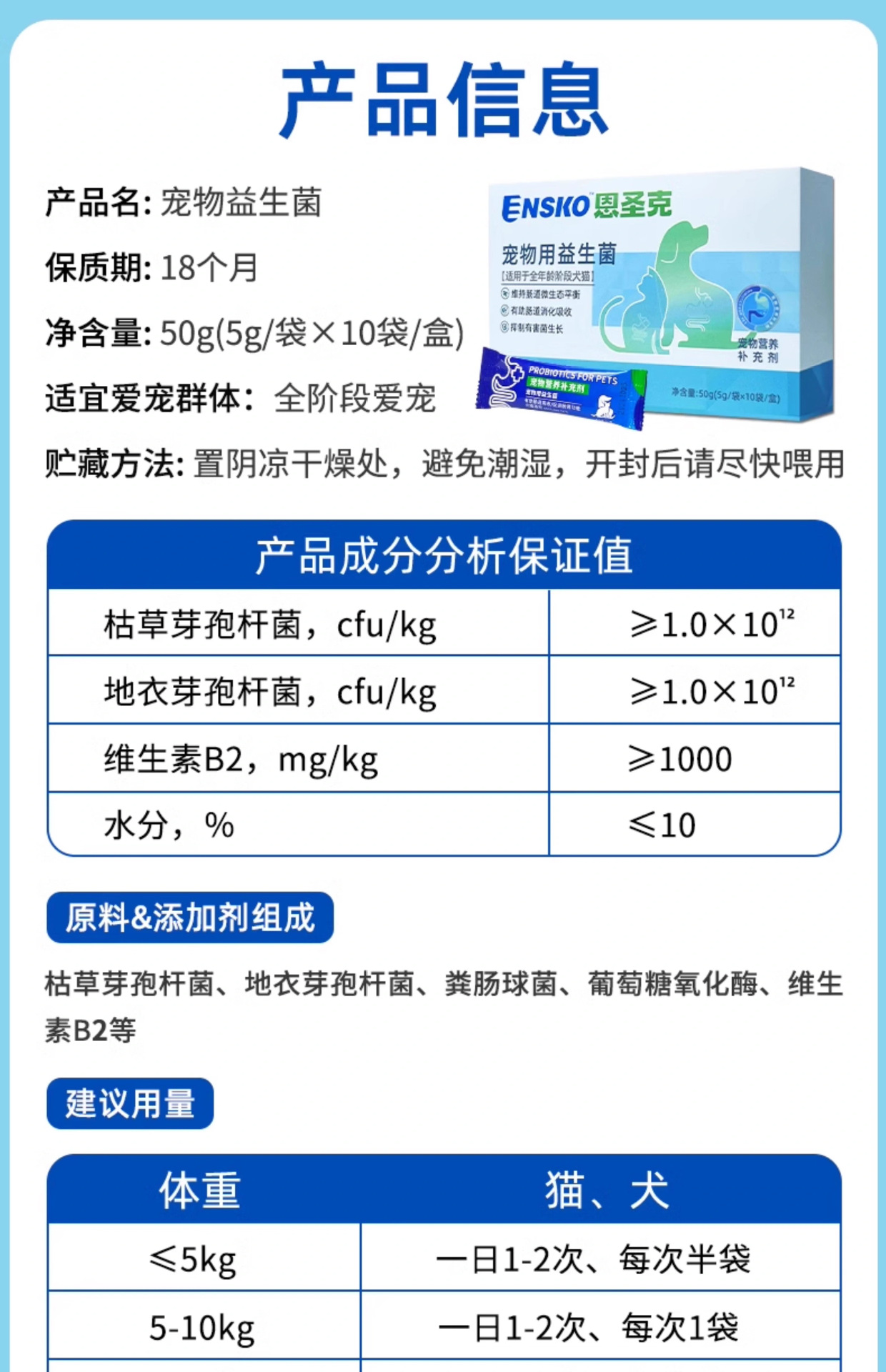Пробиотики для кошек и собак Enshengke, желудочно-кишечный клад, регулируют рвоту и жидкий стул, специальные высокоактивные пробиотики.