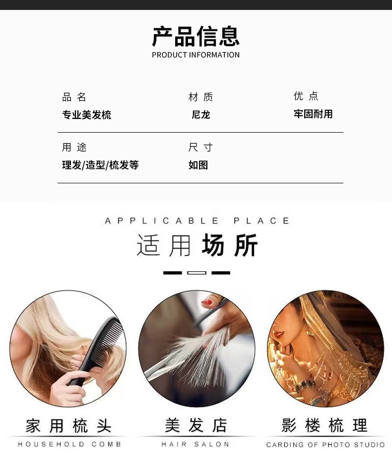 Нейлоновая расческа Tony G из полипропилена для укладки и разделения волос, двойного назначения для салонных стрижек и распутывания.