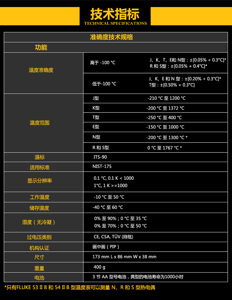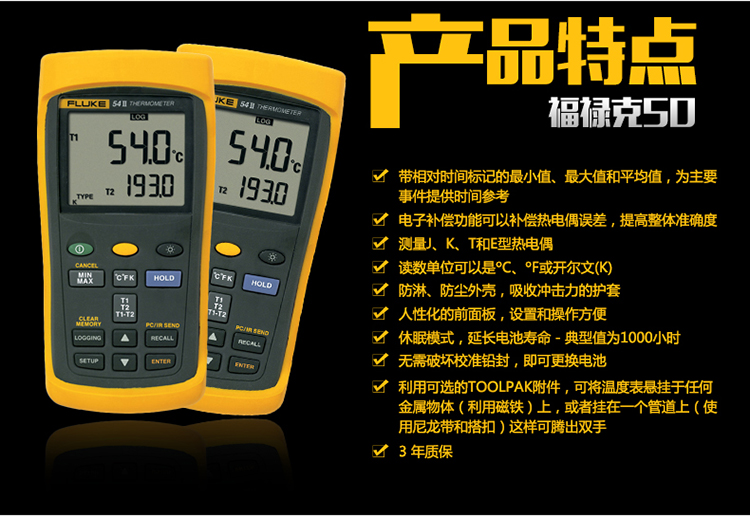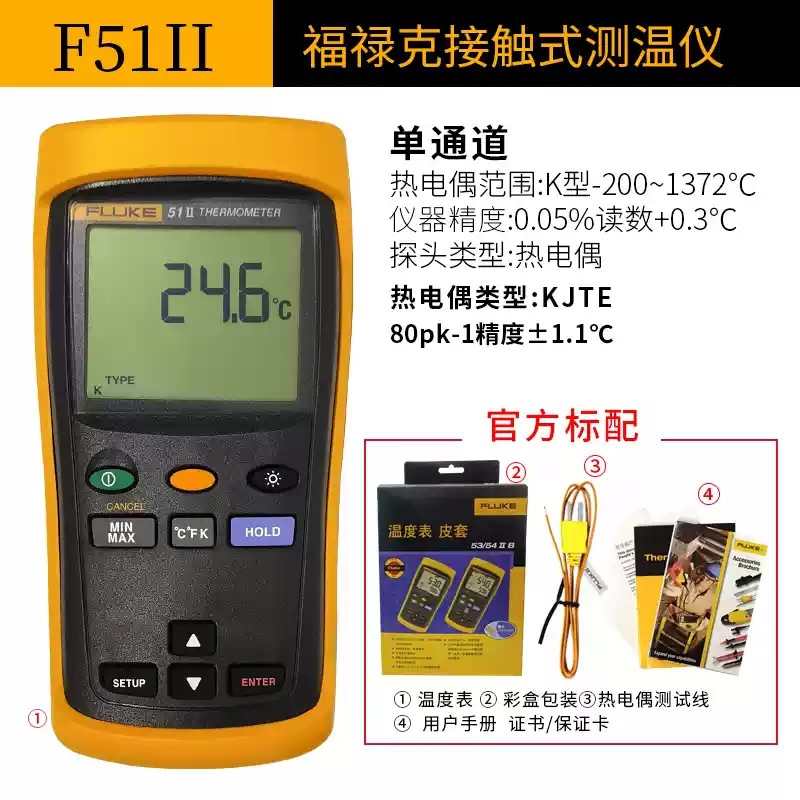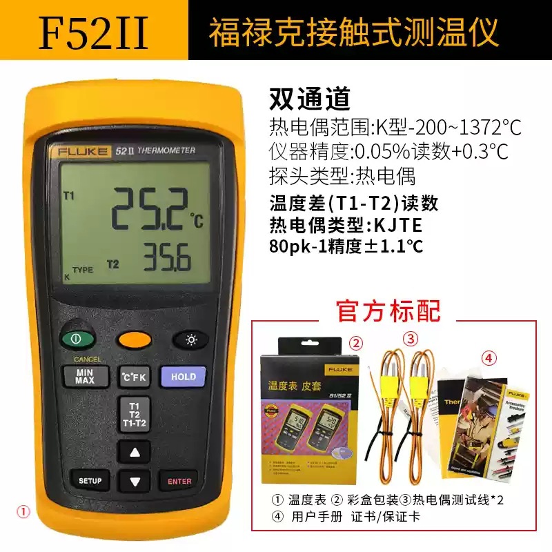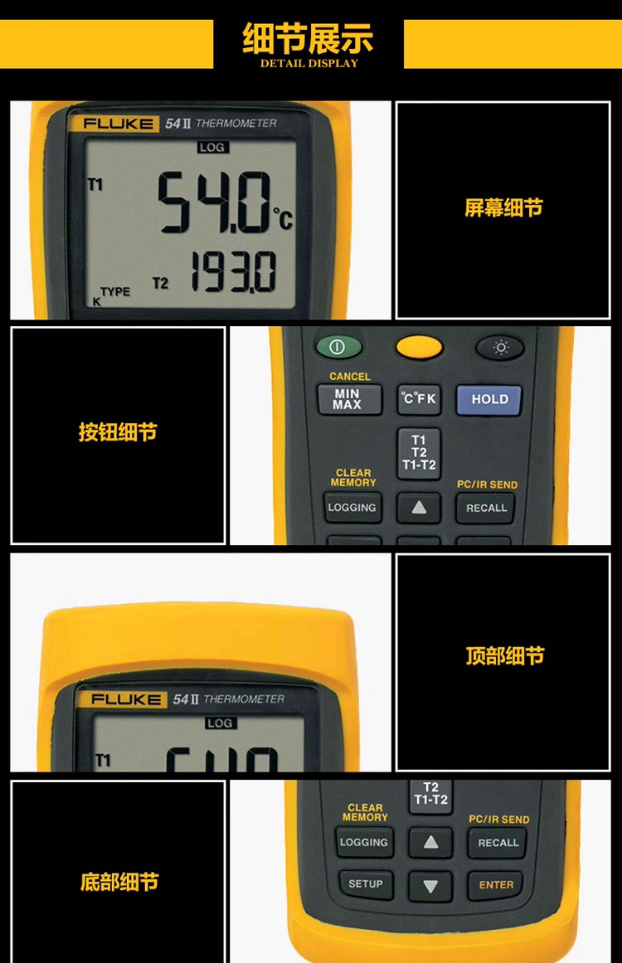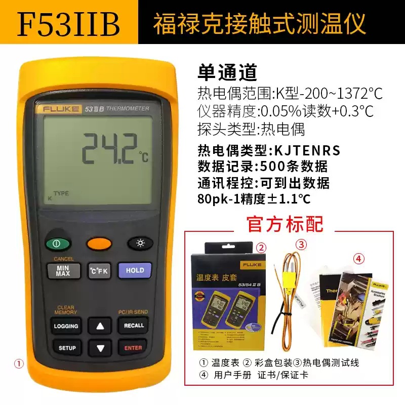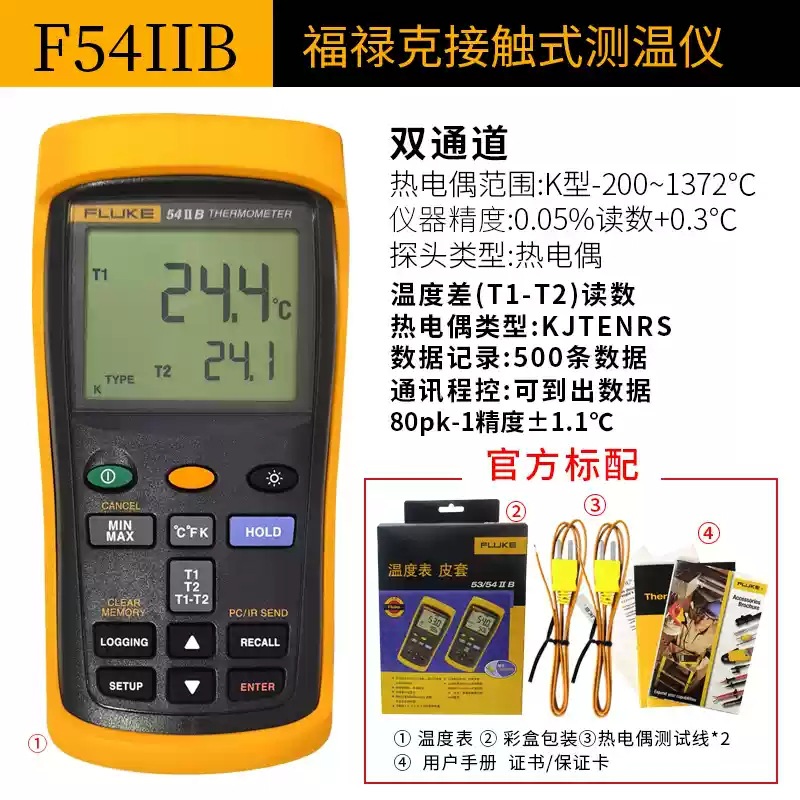 福禄克Fluke 54IIB接触式温度表F53-2B工业测温仪F51-2单通道温度表F52-2双通道测温仪原装热电偶温度计