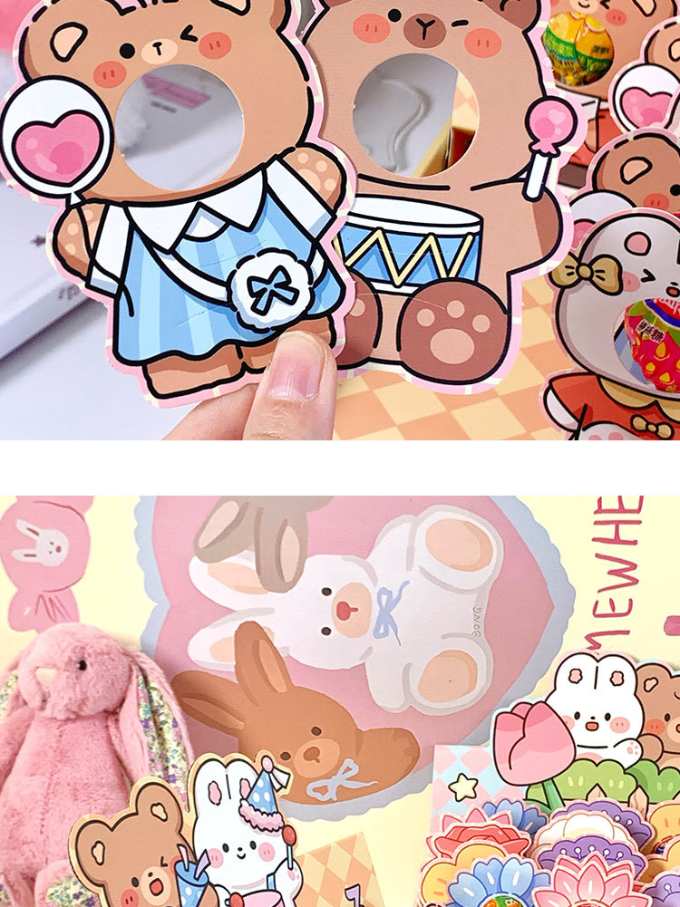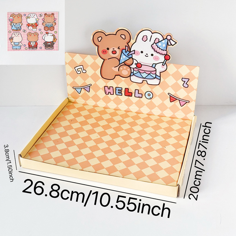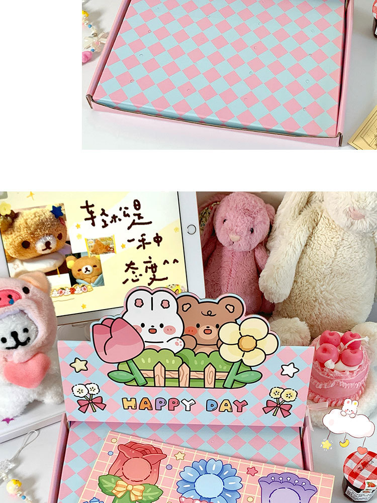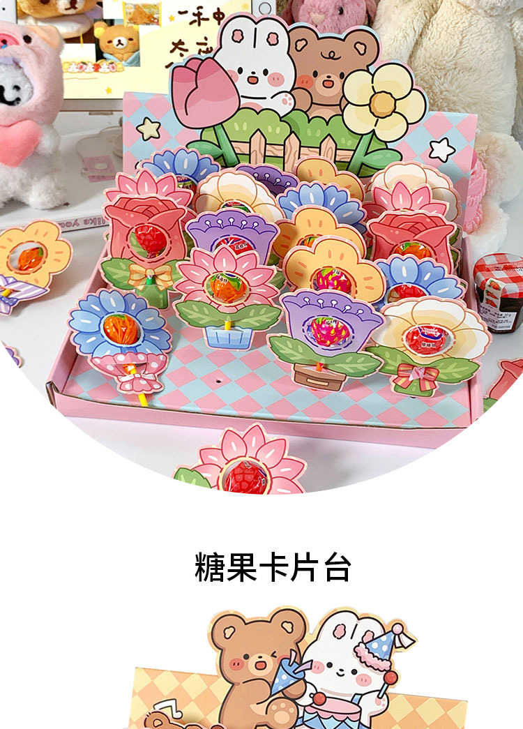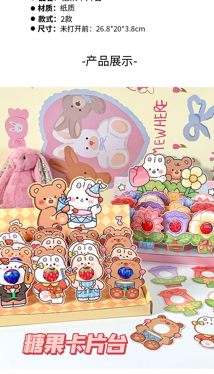 (1 коробка (вмещает 20 конфет)) Розовый медвежонок и зайчик с цветочками; (6 штук на листе) Карты с розовым цветком, медведем и кроликом; (1 бумажная коробка (вмещает 20 конфет) + 4 карточки (1 карточка с 6 элементами)) Подарочный набор в виде мультяшных коробок - розовый медвежонок с цветами и зайчик; (1 бумажная коробка (вмещает 20 конфет)) Желтый медвежонок и кролик для вечеринки; (6 штук на листе) Желтые открытки с медведями и зайчиками для вечеринок; (1 бумажная коробка (вмещает 20 конфет) + 4 карточки (1 карточка с 6 элементами)) Подарочный набор в виде мультяшных коробок - желтый медвежонок и зайчик для вечеринки