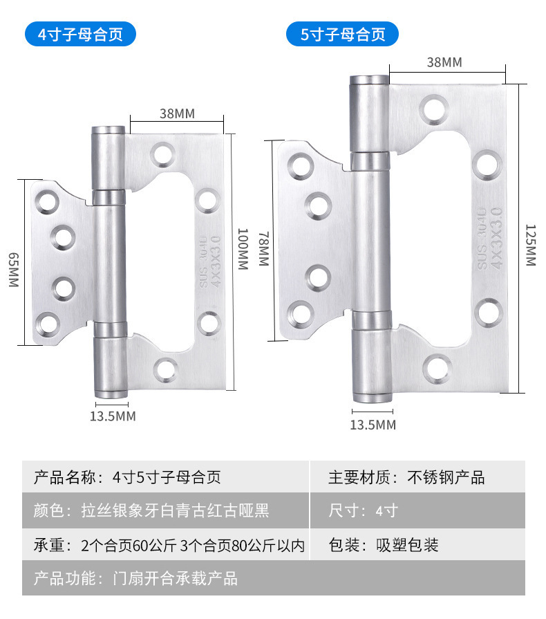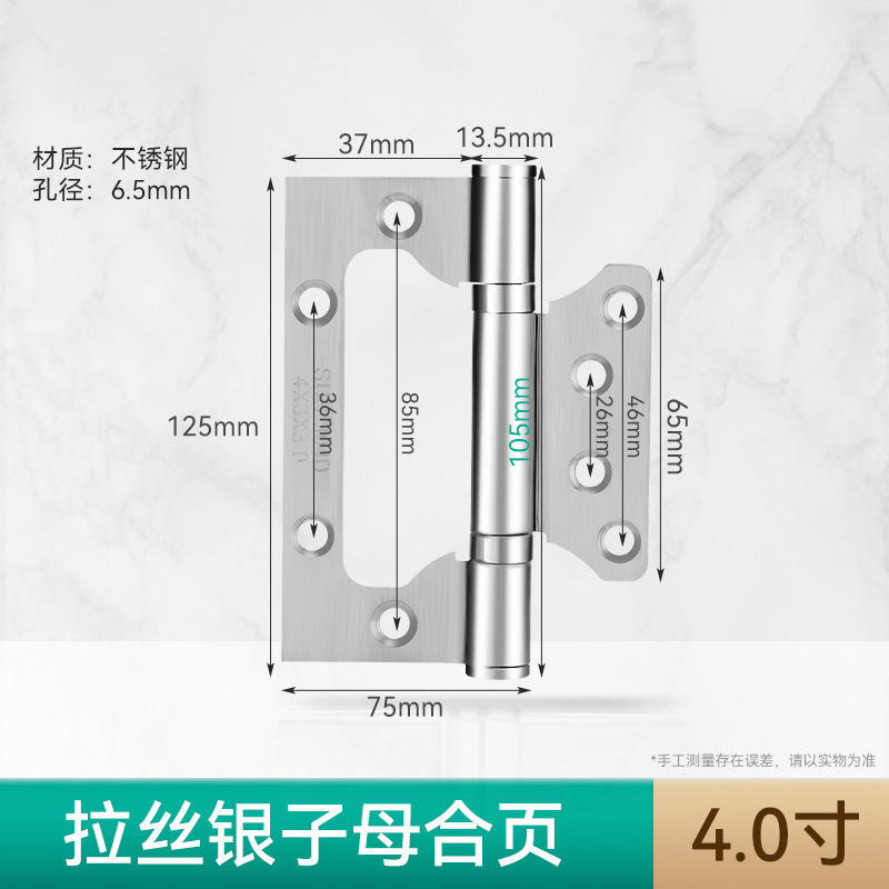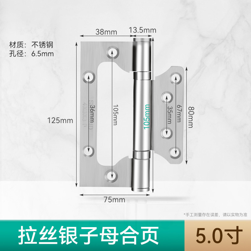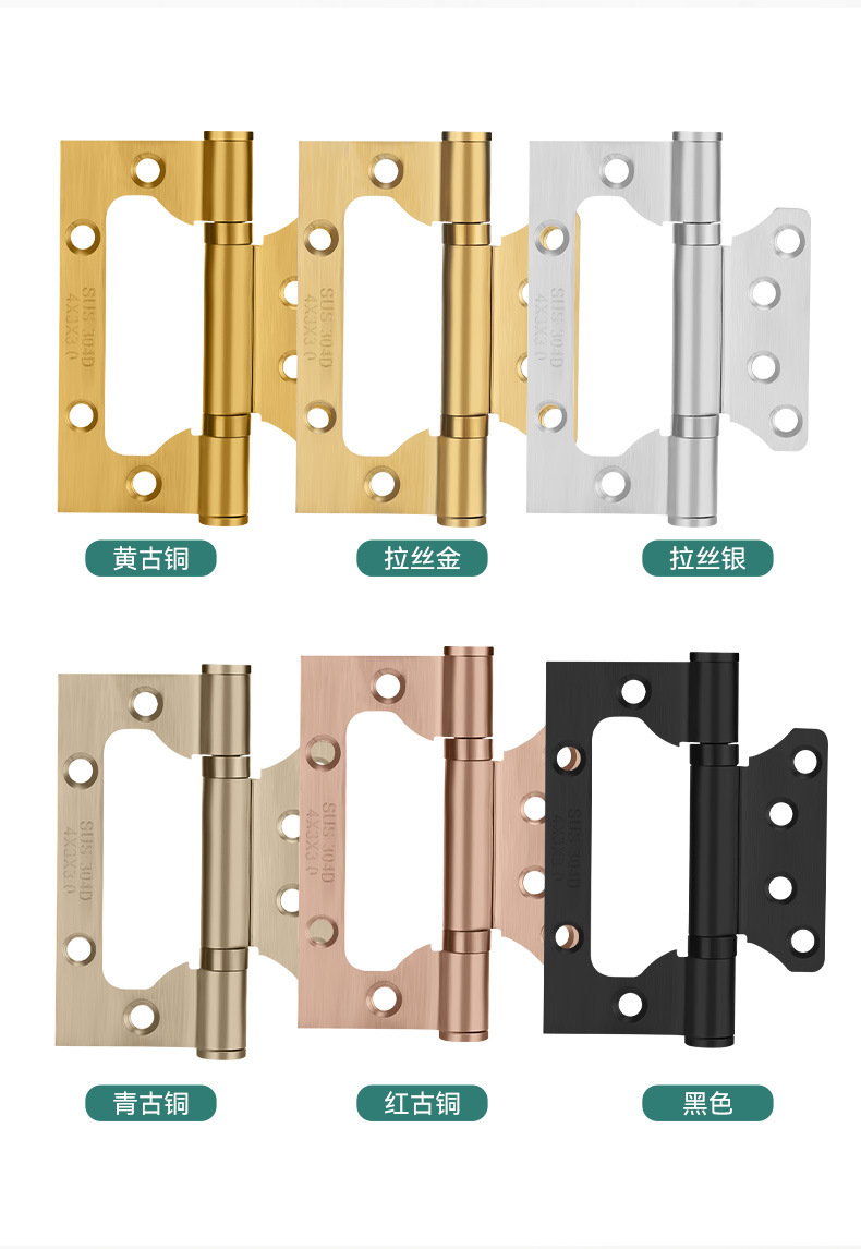 5inch - Матовый черный цвет в стиле матери и ребенка [толщина 3 мм]; [Петля для свекрови] 5 дюймов 2,5; [Петля для свекрови] 4 дюйма 3,0 (золото); [Петля Co-mother] 5 дюймов 3,0 (бронза); [Плоская петля] 5 дюймов 3,0 (красный старинный); [Плоская петля] 5 дюймов 3,0 (Хуангу); [Плоская петля] 5 дюймов 3,0 (Циньгу); [Плоская петля] 4 дюйма 3,0 (красный старинный); [Классическая желтая бронза] Нержавеющая сталь 304; Сталь с колокольной полировкой; Всасывание пола - овальная щетка