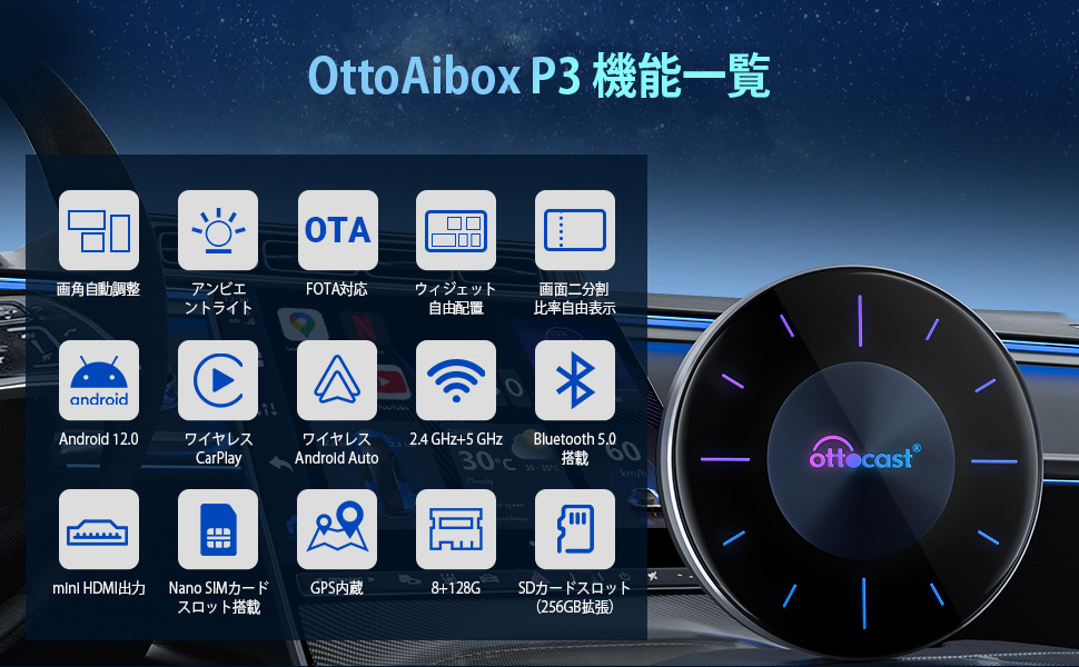 OTTOCAST Япония для P3 Автомобильный ящик Android SIM Ai Box проводной в беспроводной Carplay