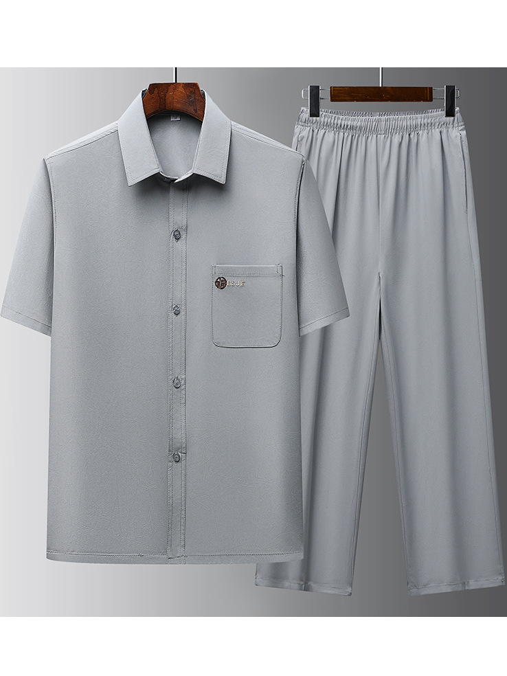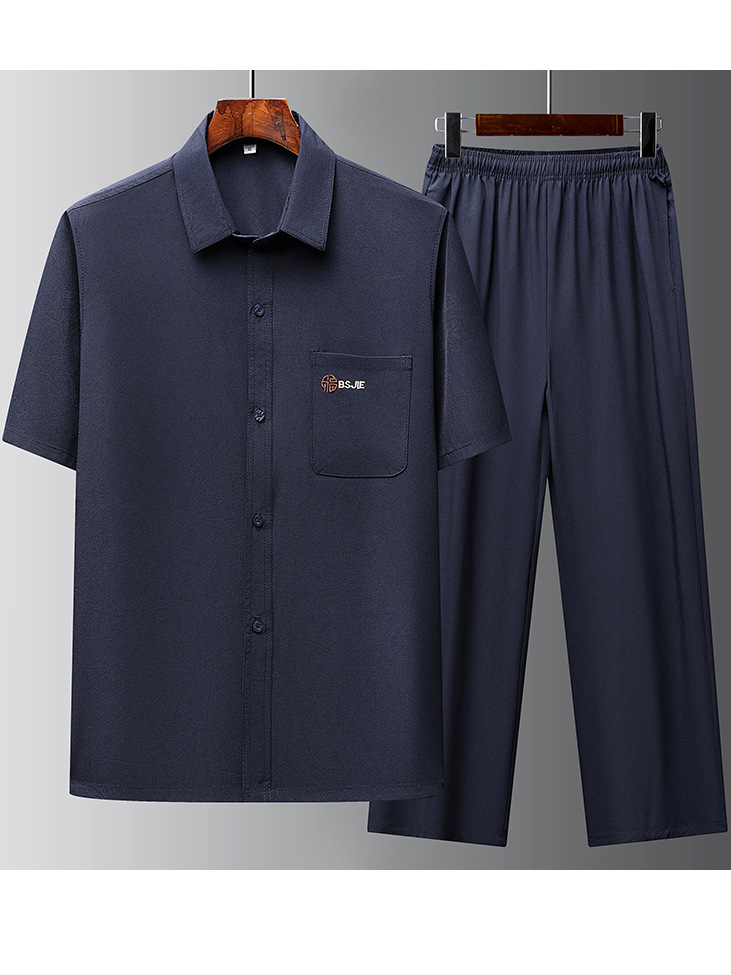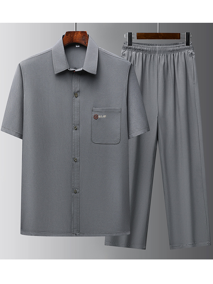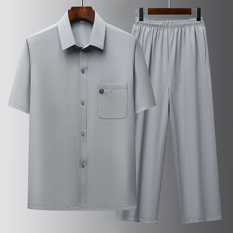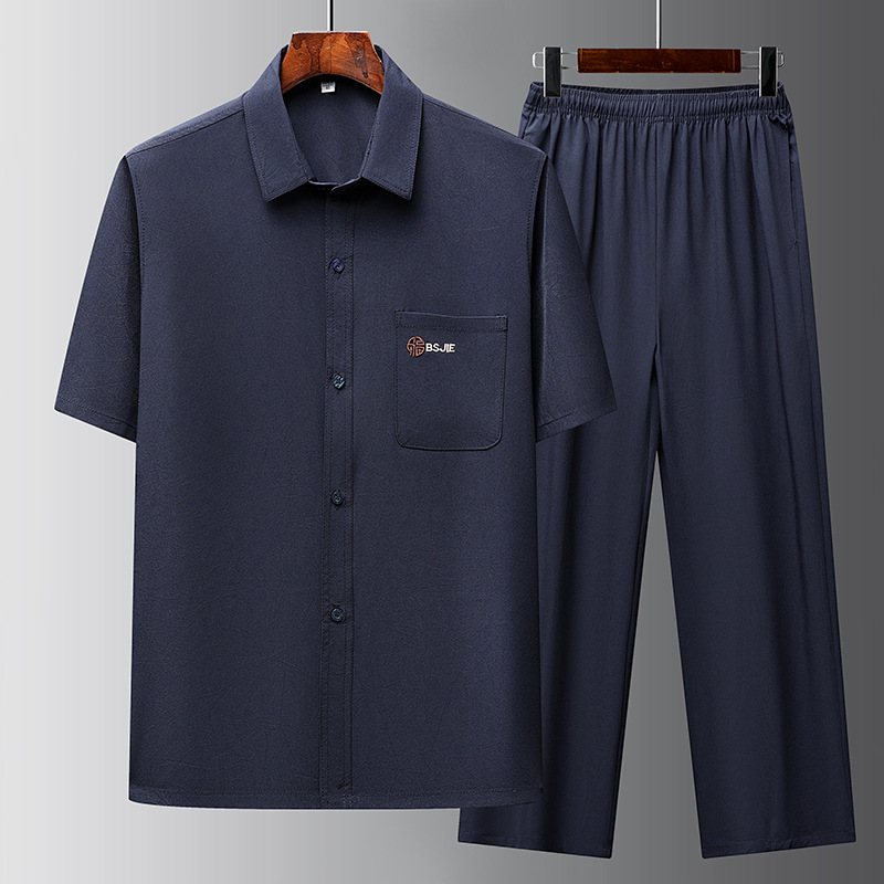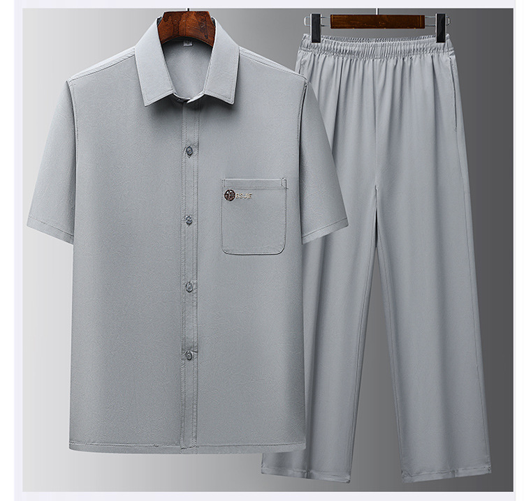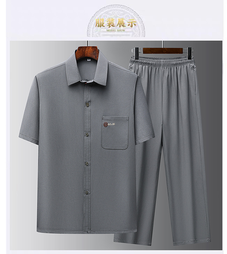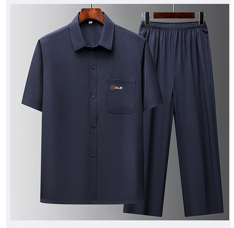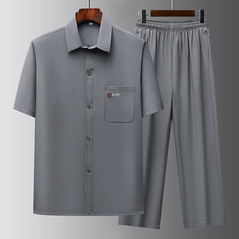 Свободная повседневная рубашка для папы среднего и пожилого возраста в китайском стиле, летняя мужская рубашка из ледяного шелка с короткими рукавами, костюм