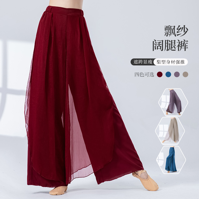 Новые классические танцевальные брюки-юбка с высокой талией, свободного кроя, с асимметричным подолом, широкие штанины, для повседневной носки и тренировок, с эффектом плавности движений.