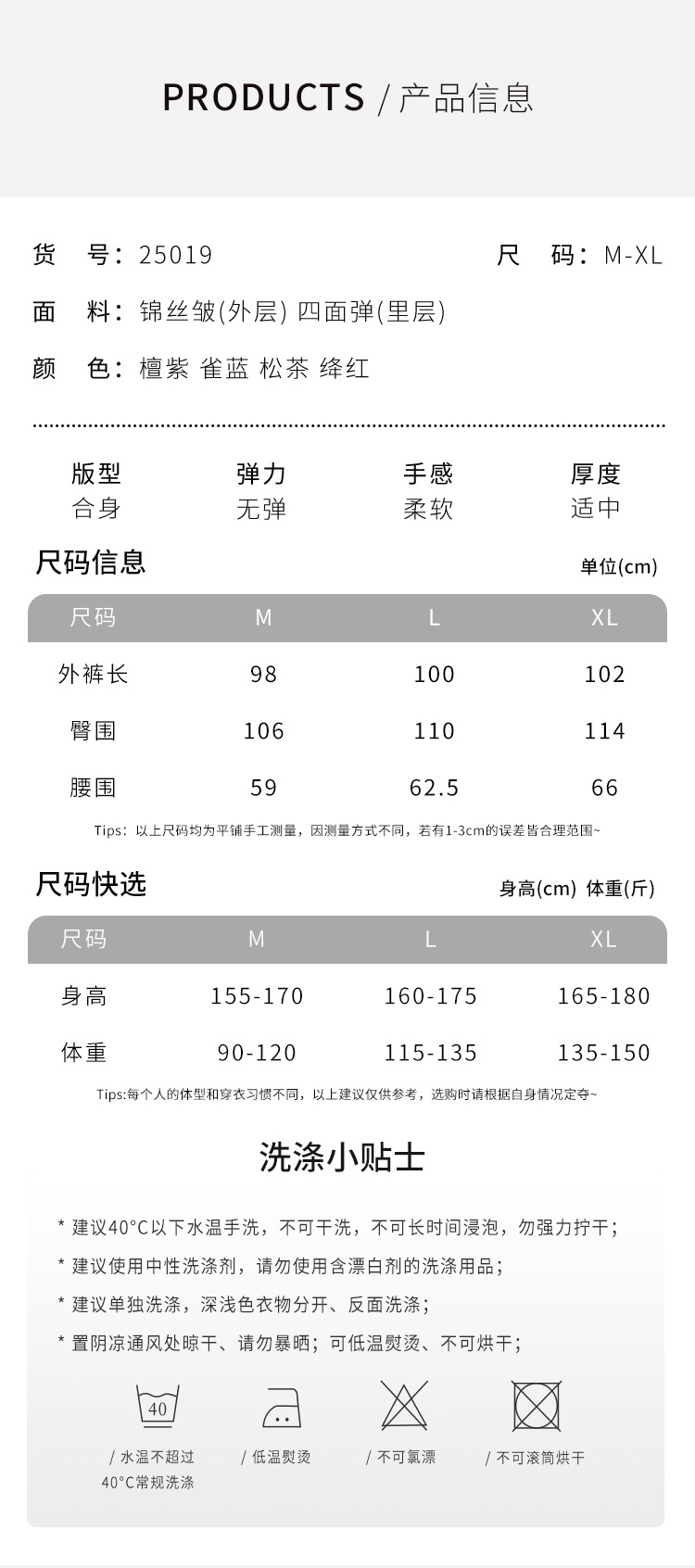 Красно-Брюки; Птица в синих штанах; Сосновые чайные штаны; Тан Зи-брюки; Красно-Топ; Птичья синяя топ; Сосновая чайная столешница; Тан Фиолетовый-Топ; Кроваво-красный-(топ + брюки); Птица синяя-(топ + брюки); Сосновый чай-(топ + брюки); Тан Цзы-(топ + брюки); Уважайте оригинальности, пиратство будет расследовано