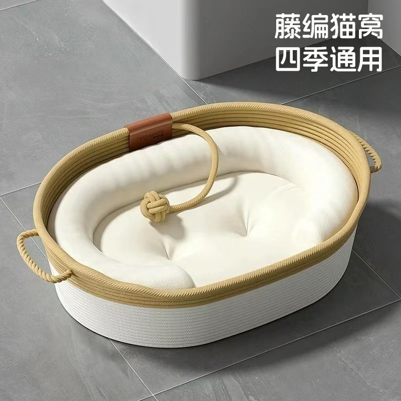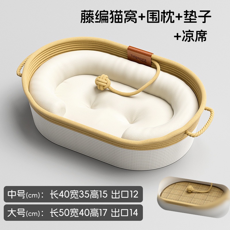 Кошачье гнездо из ротанга, летняя четырехсезонная универсальная когтеточка для кошек, очень большая специальная кровать для сна, плетеная корзина для кошек, будка