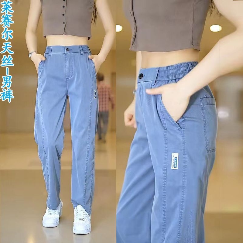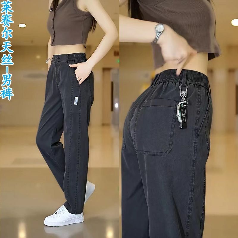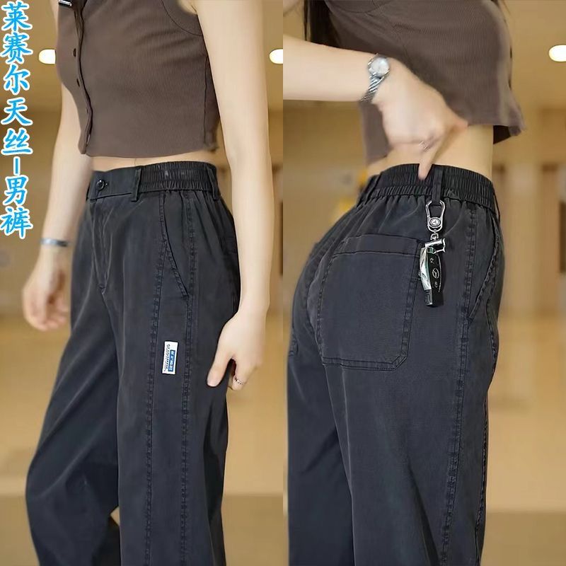 Летние тонкие спортивные штаны из ледяного шелка мужские длинные брюки свободные прямые брюки
