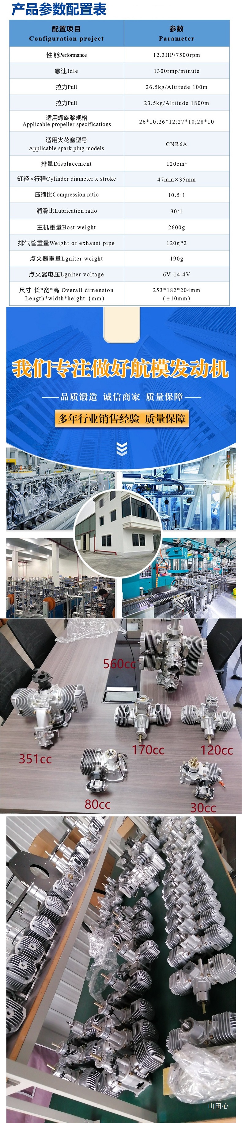 Модель самолета DLP120cc, бензиновый двигатель, двухцилиндровый двухтактный поршень, электронный карбюратор с топливным впрыском, воздушное охлаждение
