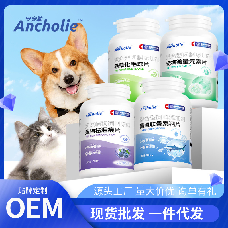 Улучшить пятна слез — 100 таблеток/банка; Таблетки хондроитина и кальция «Акула» — 100 таблеток в банке; Таблетки кошачьей травы — для гастродуodenального кондиционирования — 100 таблеток/банка; Таблетки микроэлементов для собак и кошек — 100 таблеток/банка