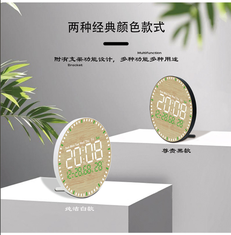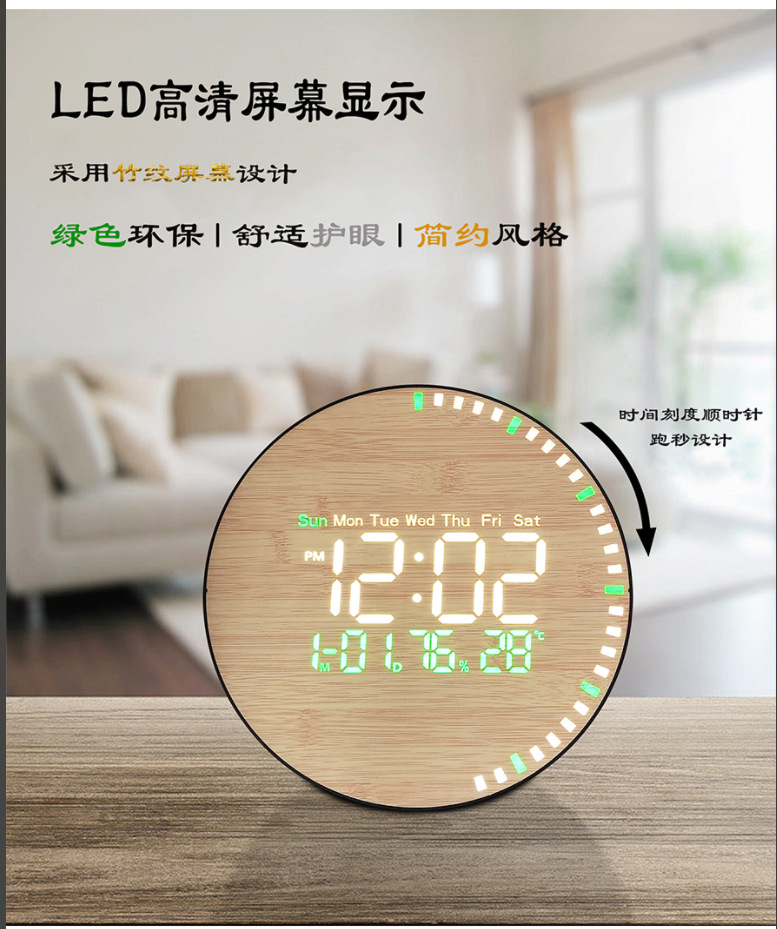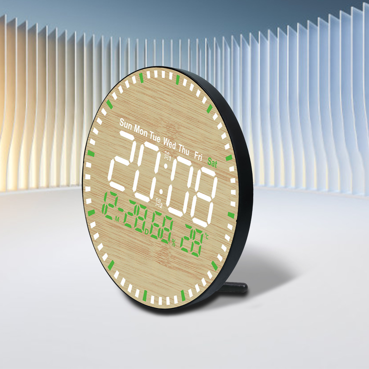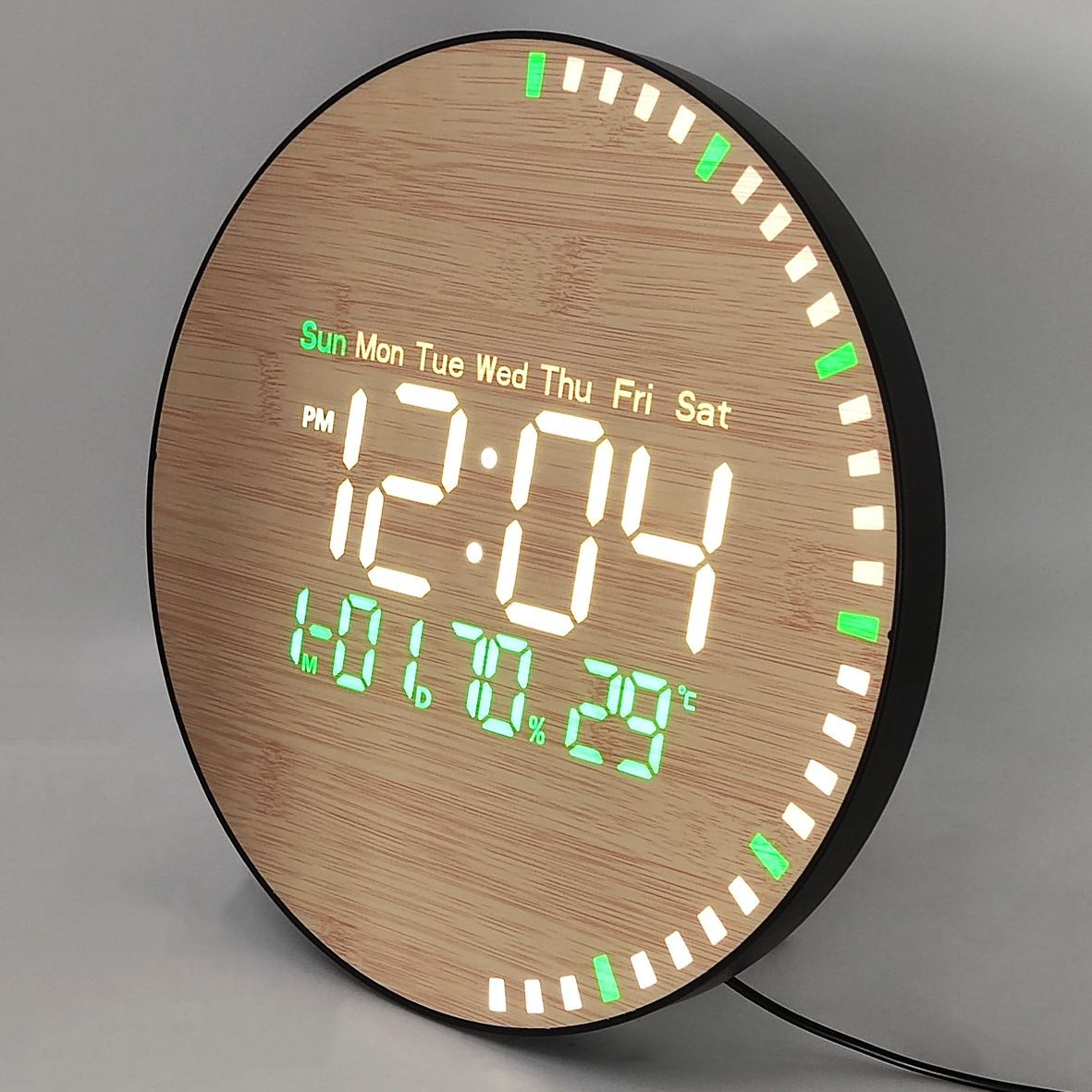 Готовые заводские часы с очень большим экраном для спальни, гостиной, настенные часы-будильник, цифровые часы, лампа с колесом обозрения, бамбуковая поверхность, электронные настенные часы