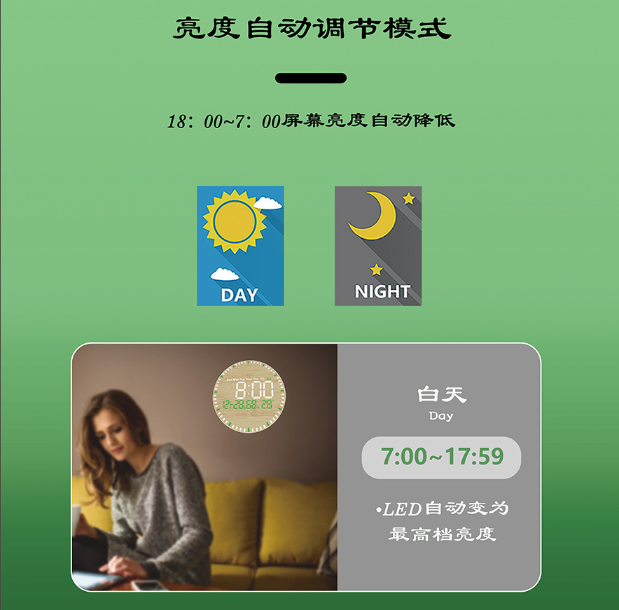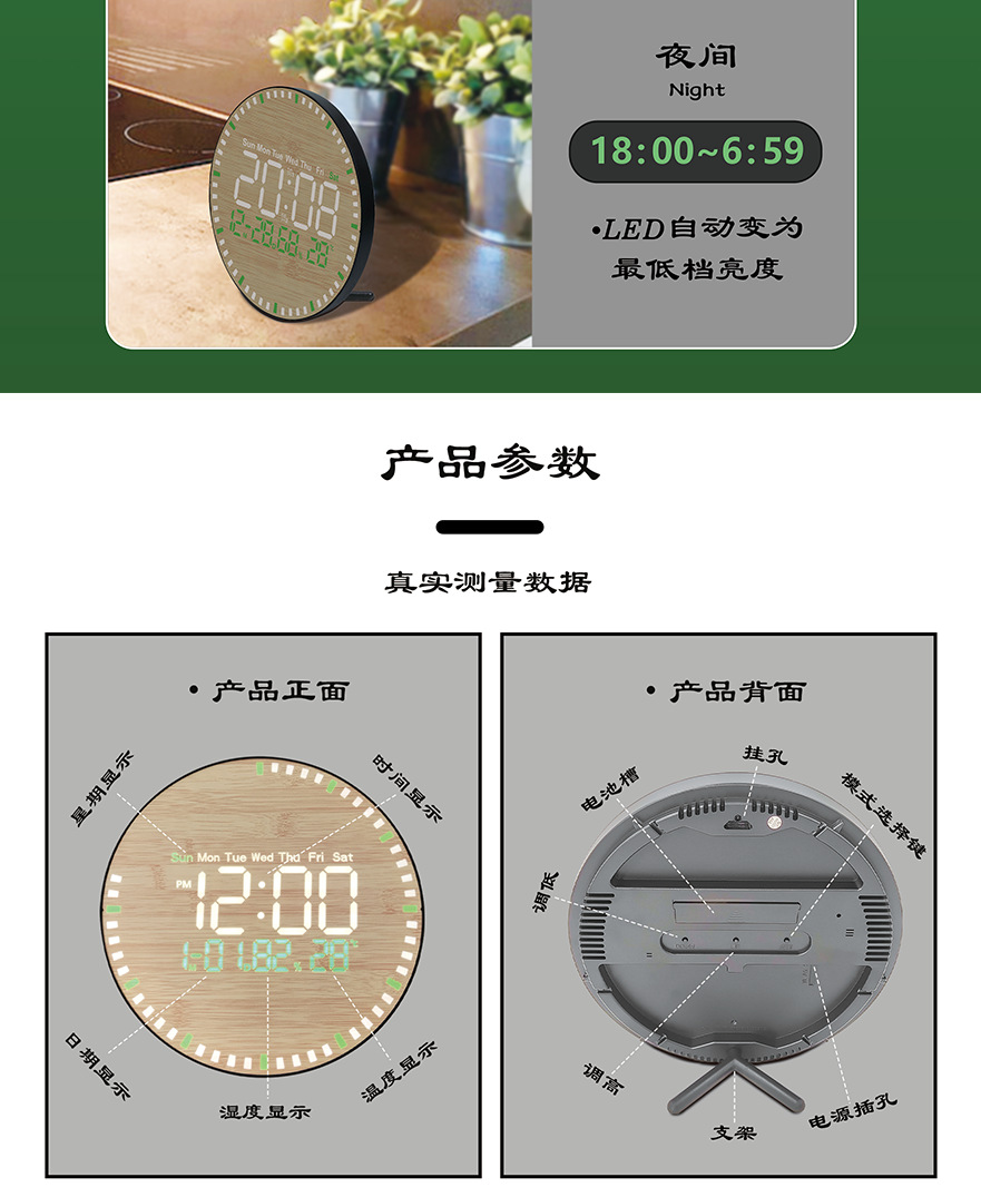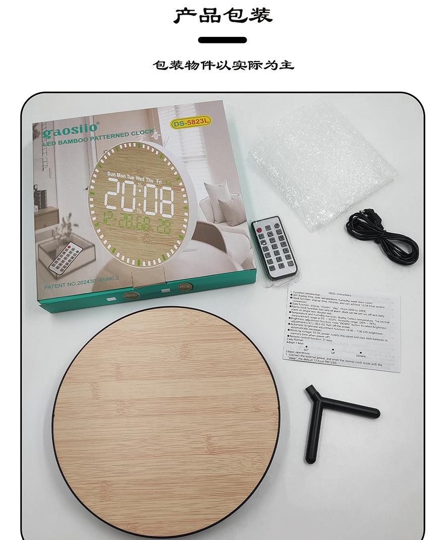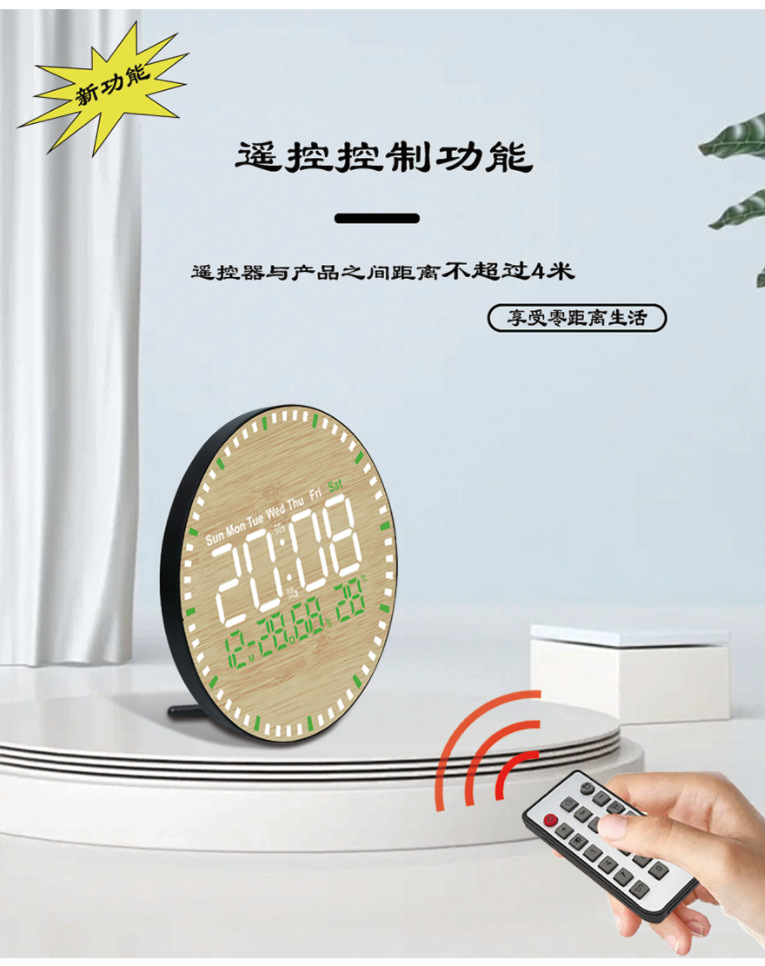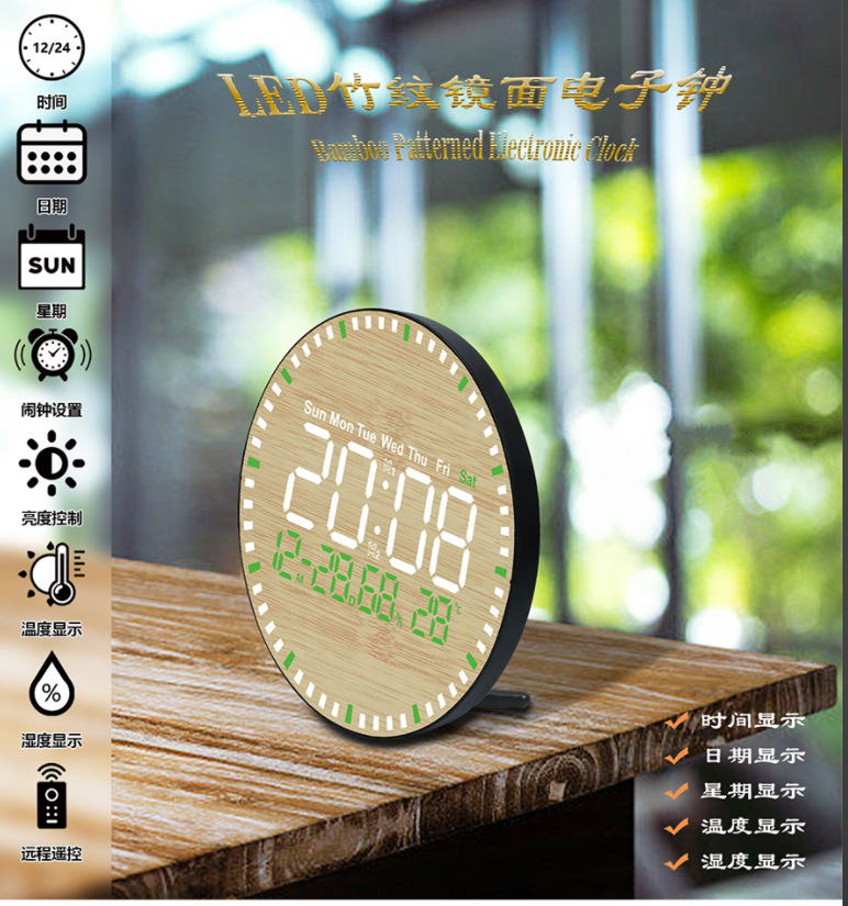 Готовые заводские часы с очень большим экраном для спальни, гостиной, настенные часы-будильник, цифровые часы, лампа с колесом обозрения, бамбуковая поверхность, электронные настенные часы