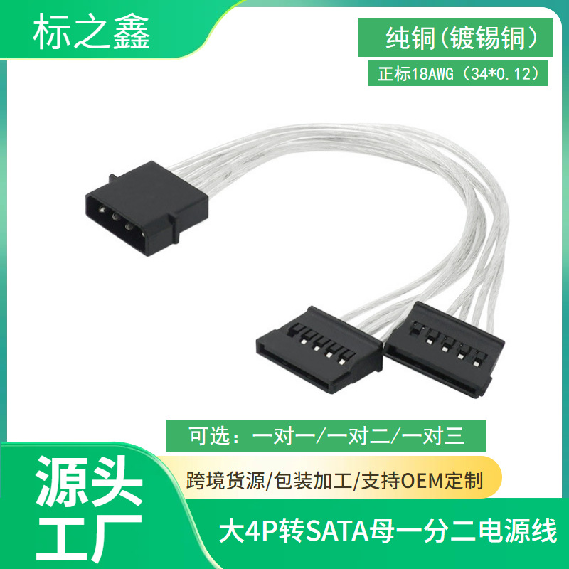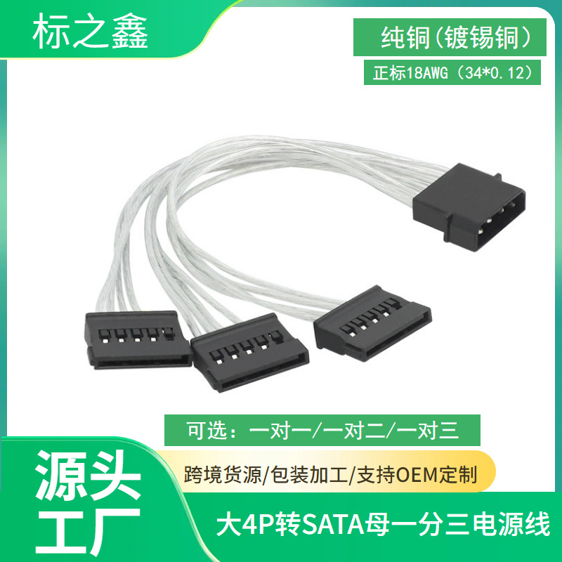 Большой разъем 4P-SATA «мама» один к одному (прозрачная луженая медь); Большой разъем 4P-SATA, один на два (прозрачная луженая медь); Большой разъем 4P-SATA, одна пара из трех (прозрачная луженая медь); Большой разъем 4P-SATA, один к одному (обычный); Большой разъем 4P/SATA, один на два (обычный); Большой разъем 4P-SATA, одна пара из трех (обычный)