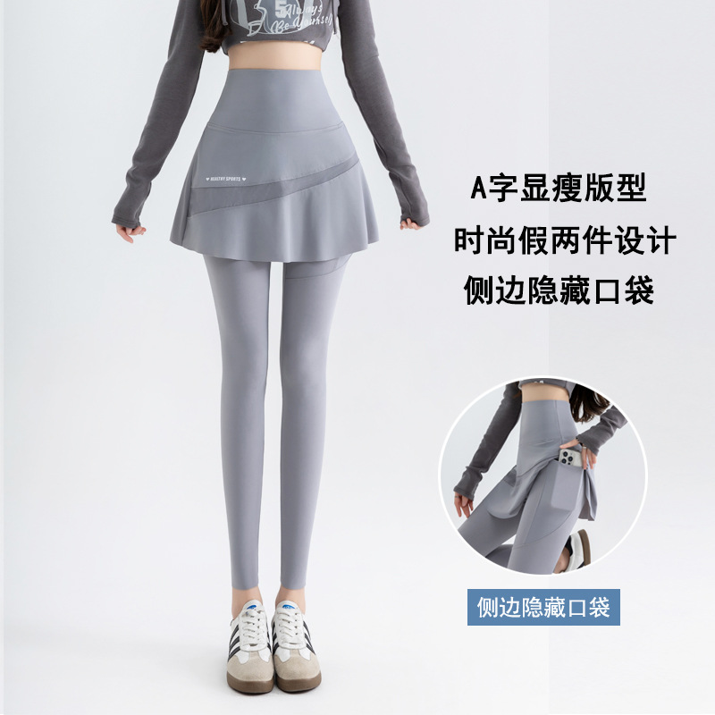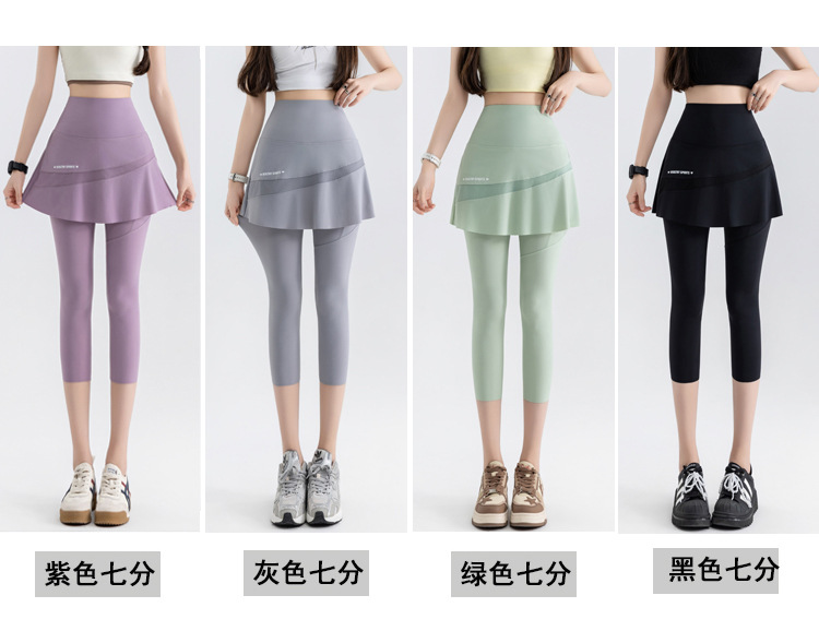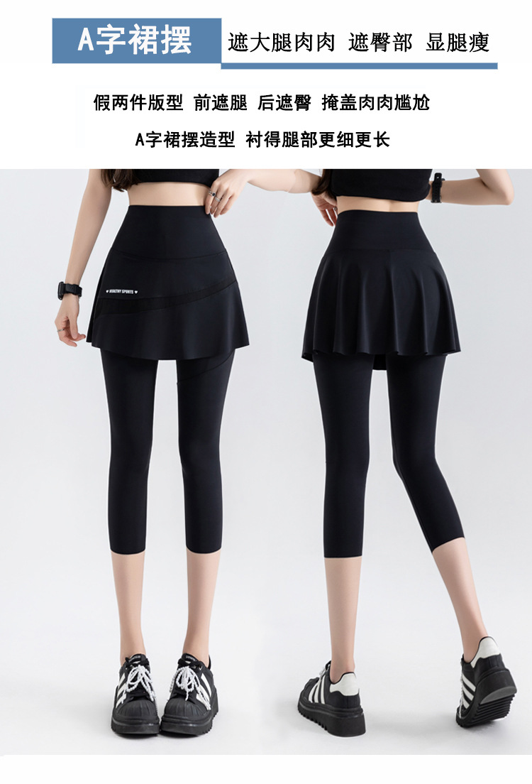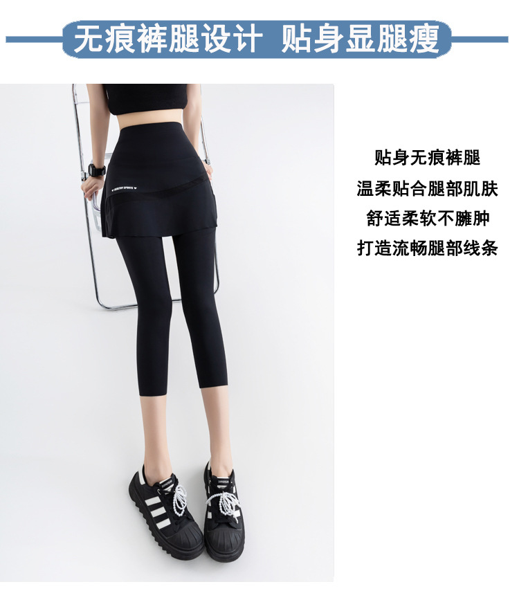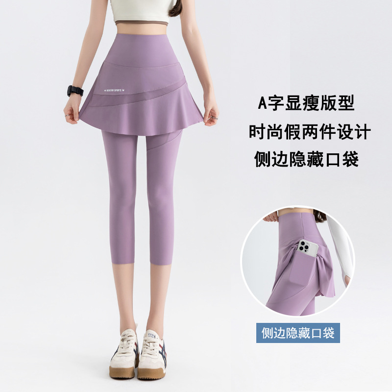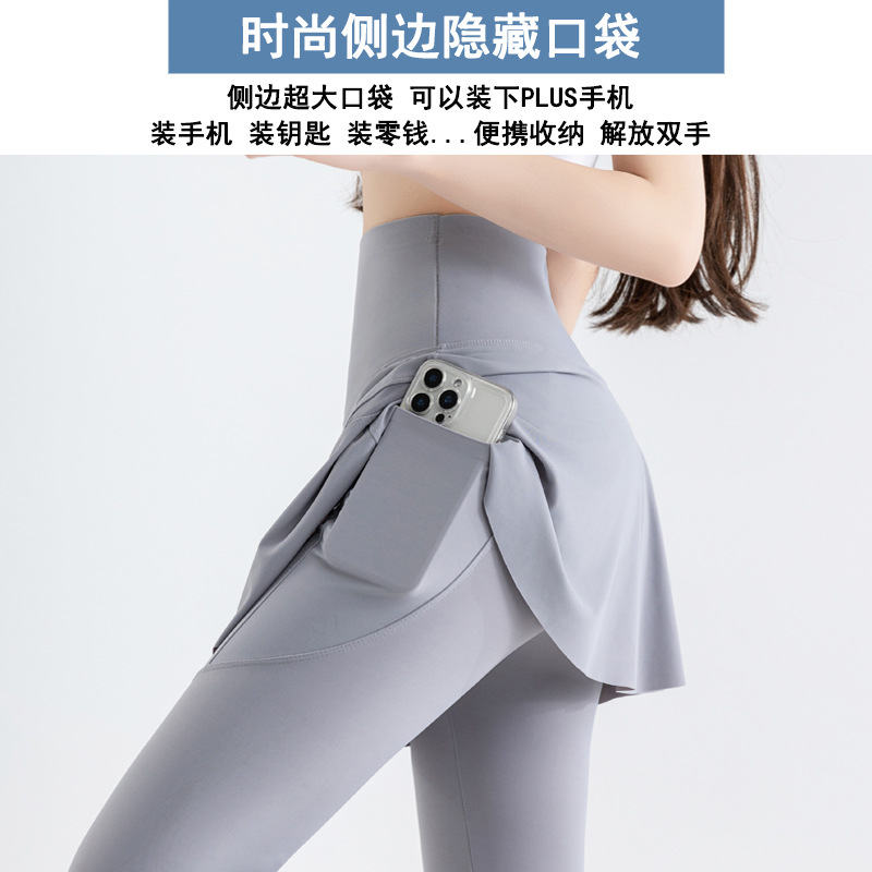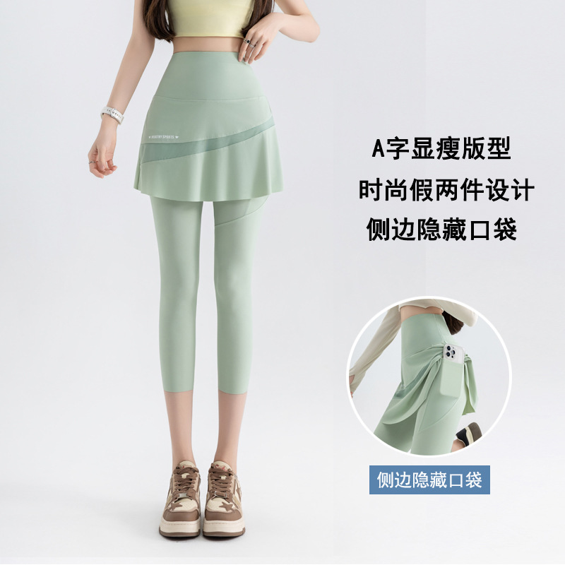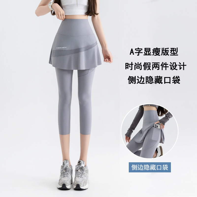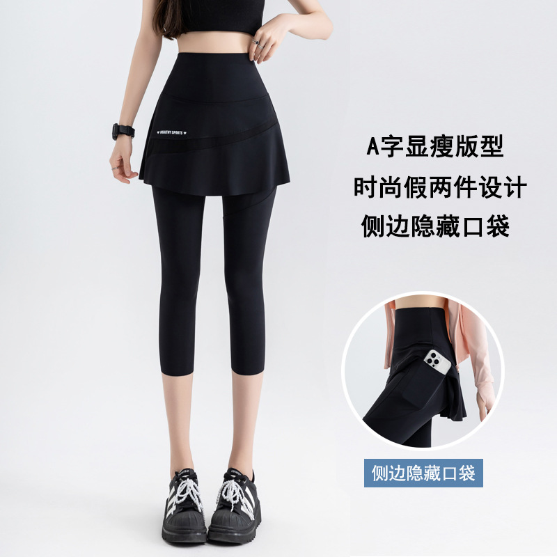 Семь очков поддельные две юбки летние новые карманные брюки йоги с высокой талией живота плюс размер юбки леггинсы носить через границу