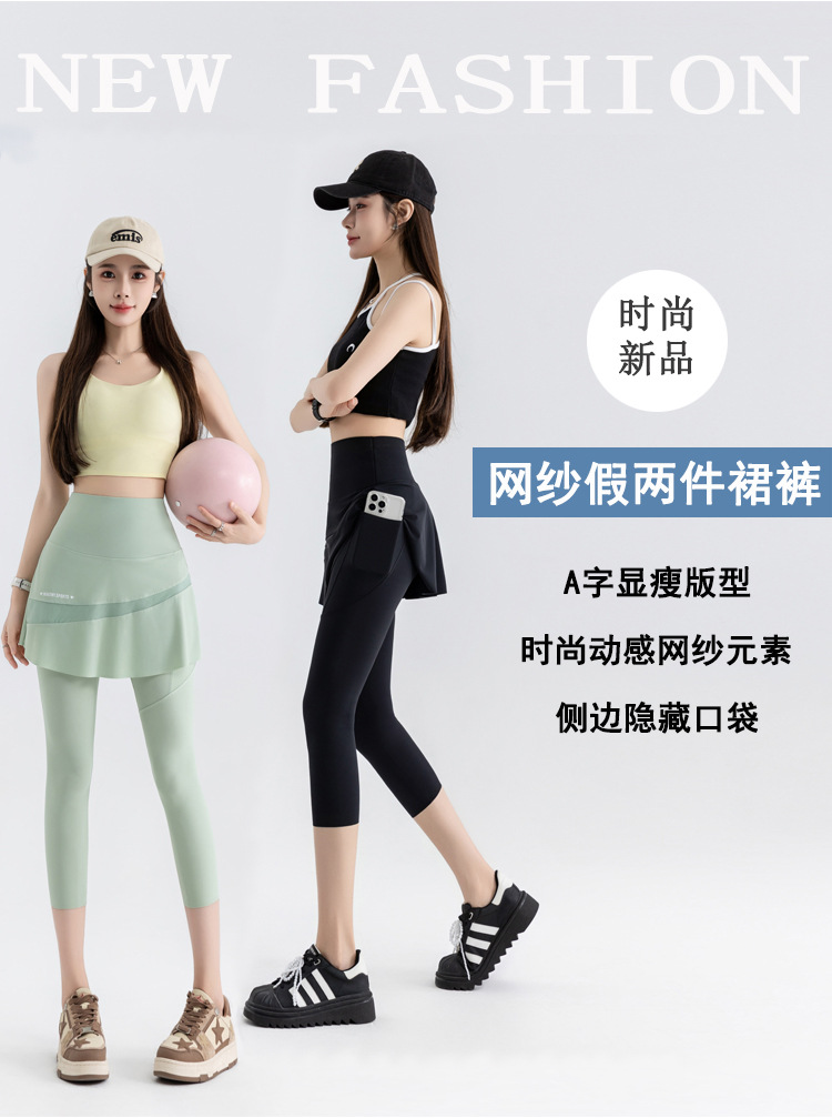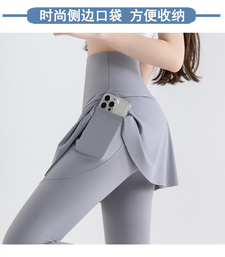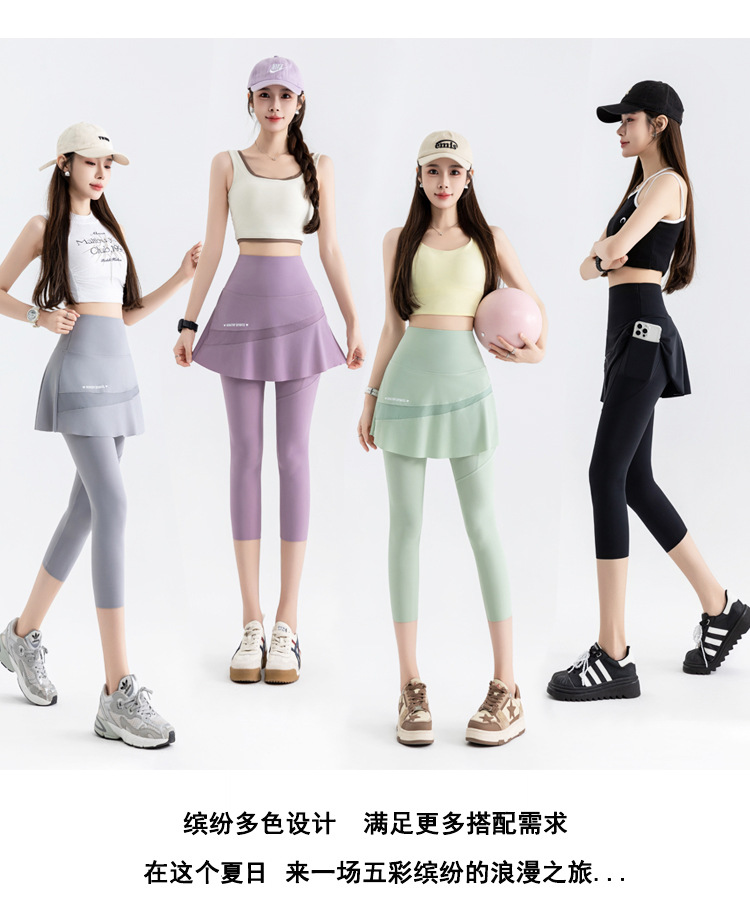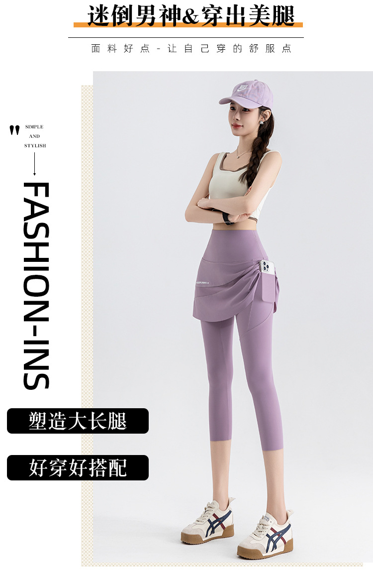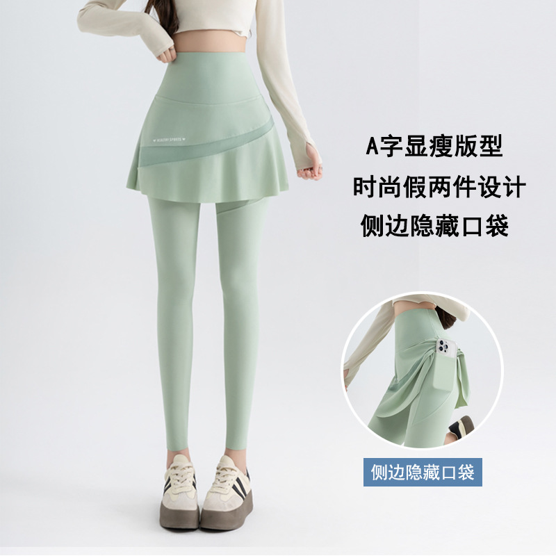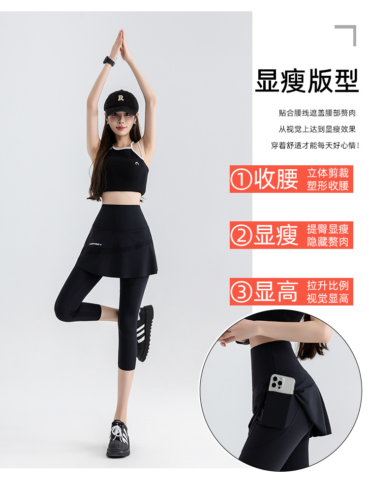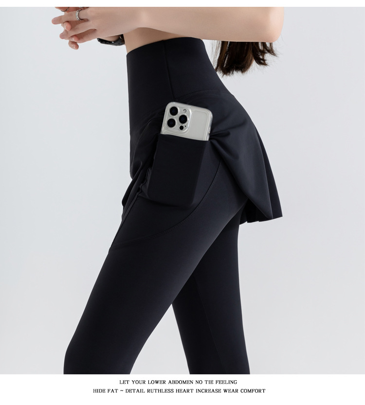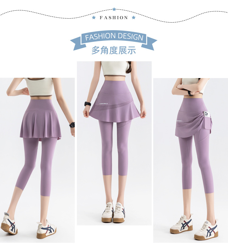 Семь очков поддельные две юбки летние новые карманные брюки йоги с высокой талией живота плюс размер юбки леггинсы носить через границу