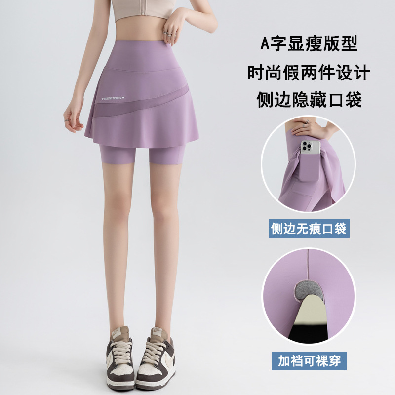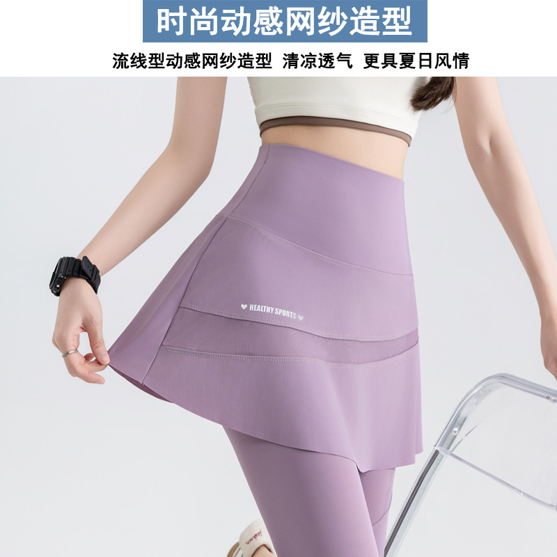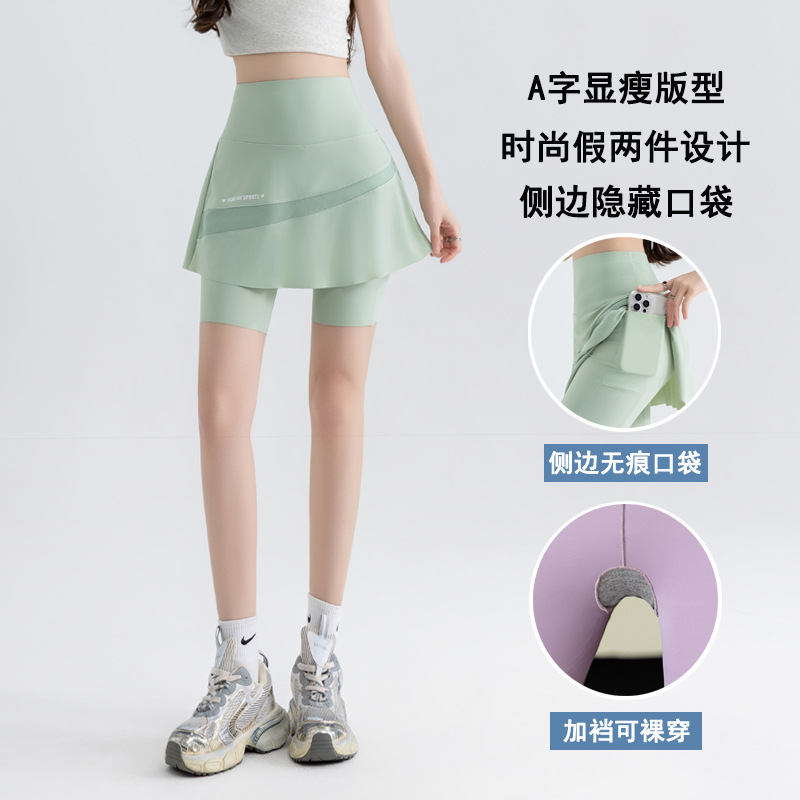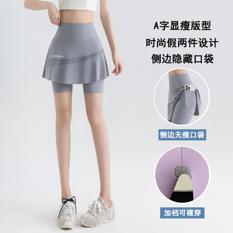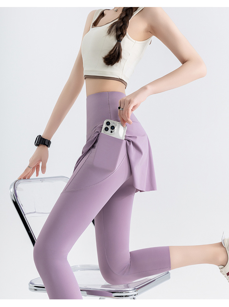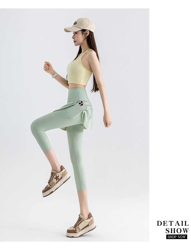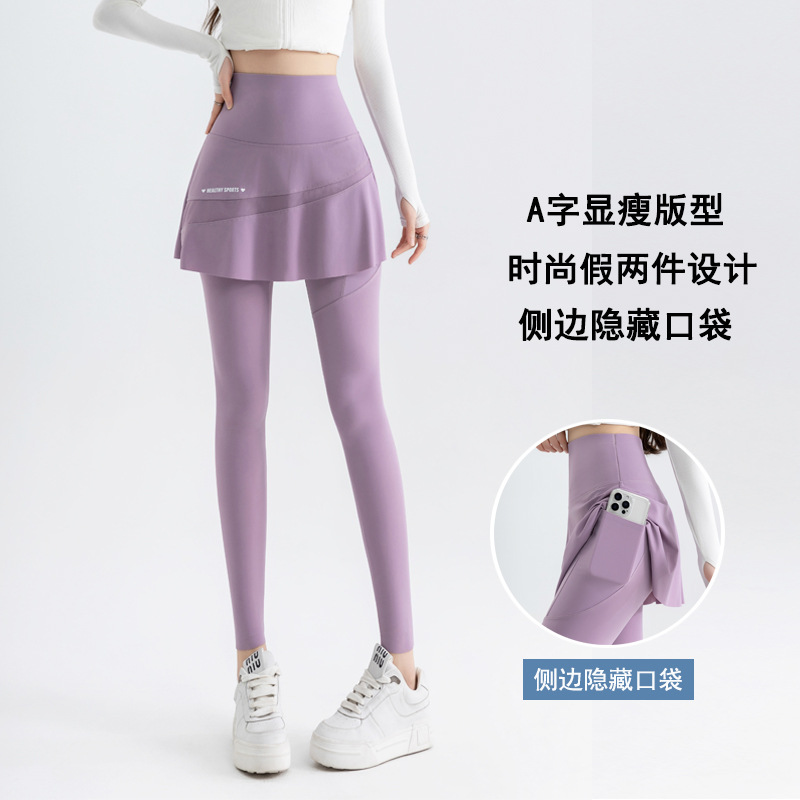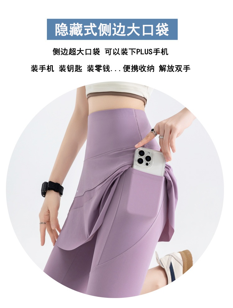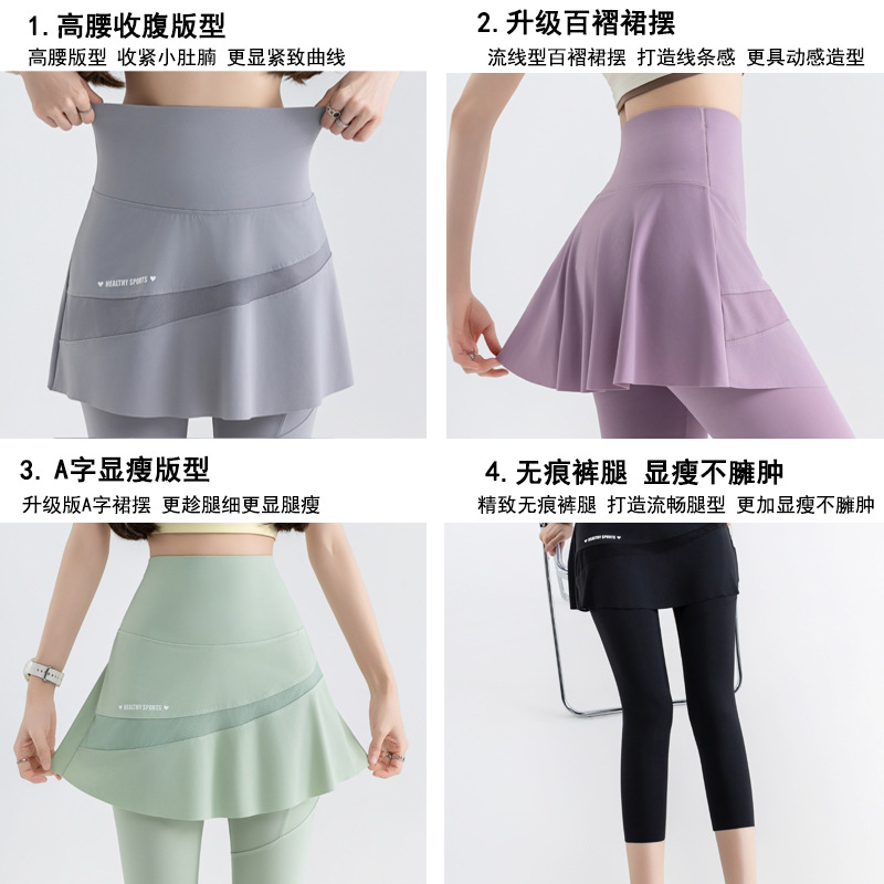 Семь очков поддельные две юбки летние новые карманные брюки йоги с высокой талией живота плюс размер юбки леггинсы носить через границу
