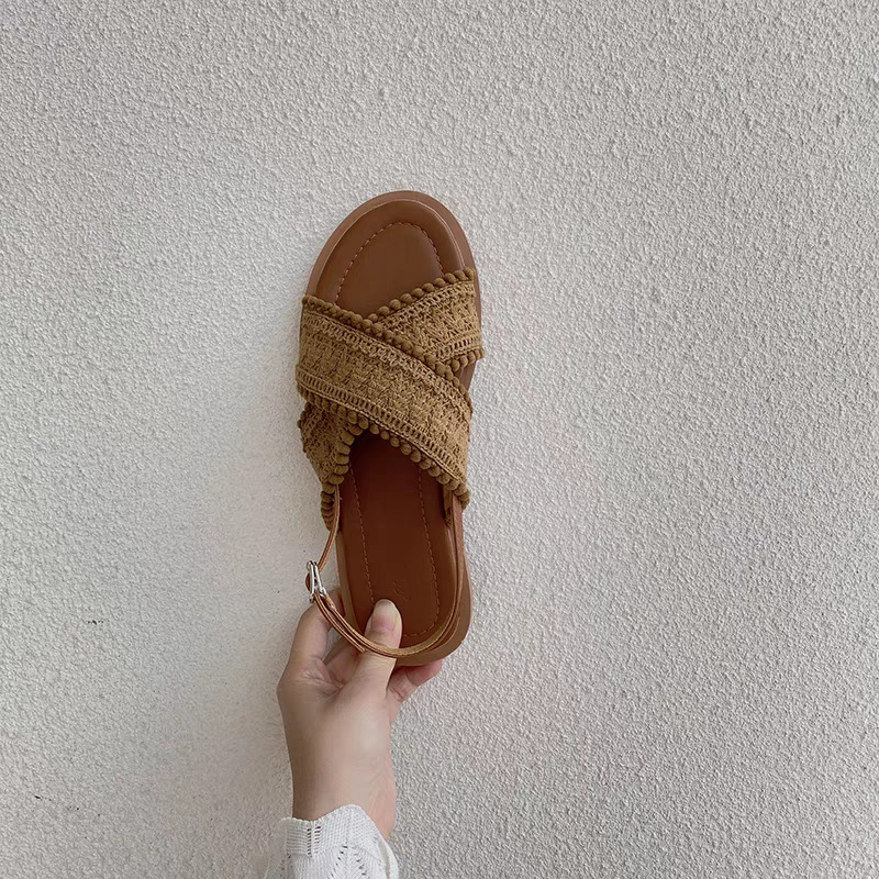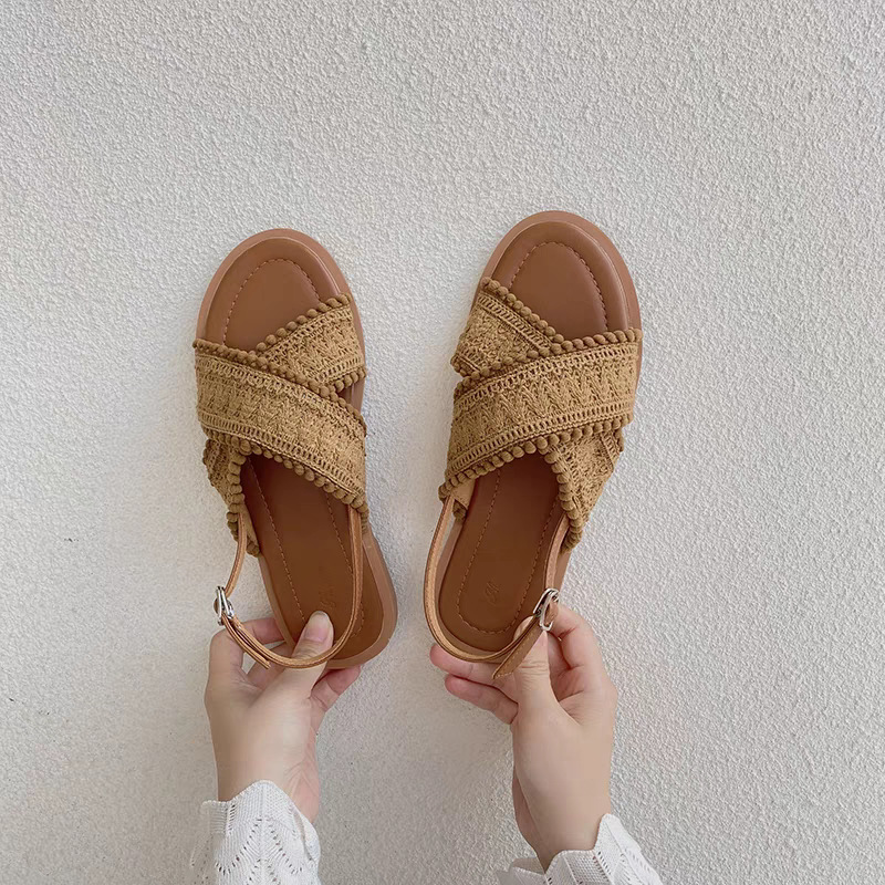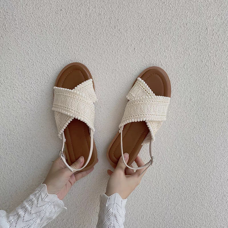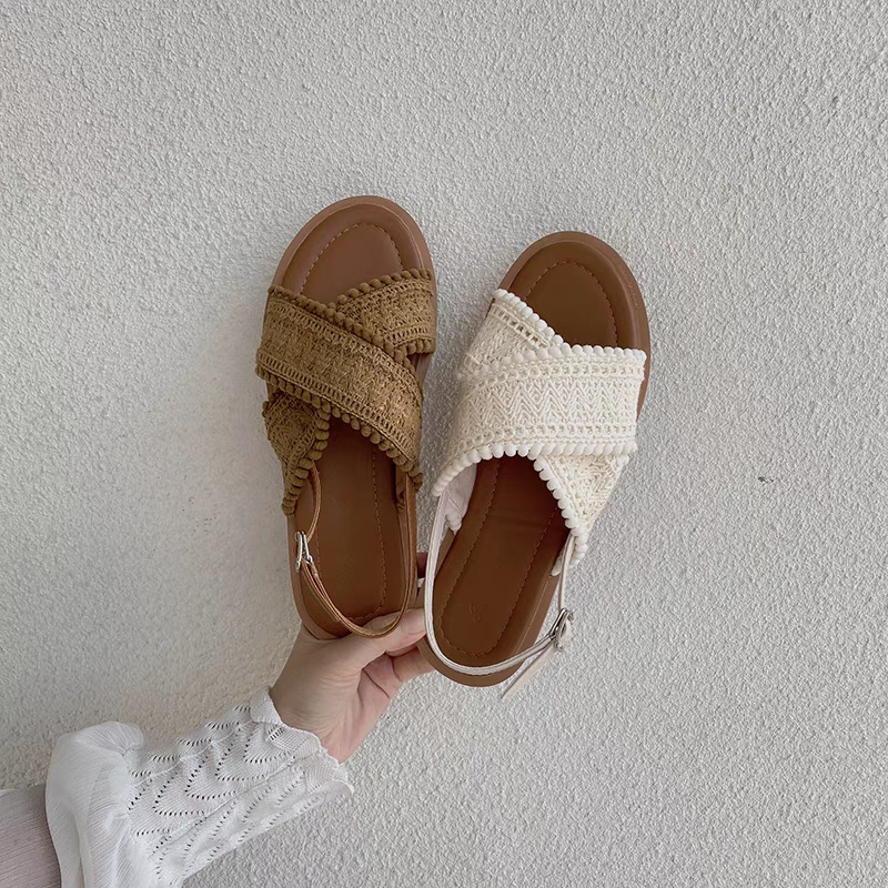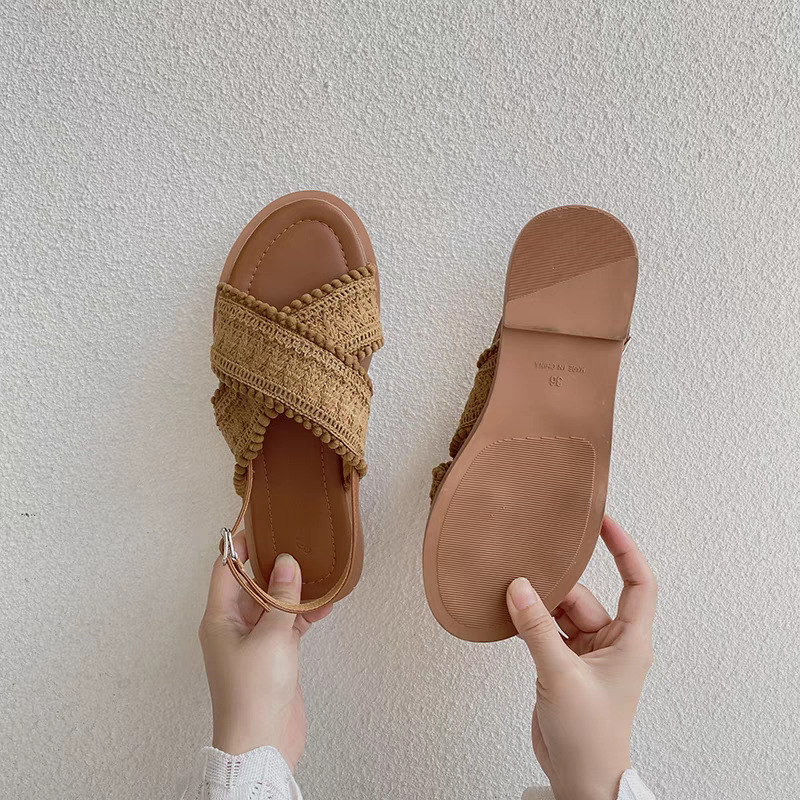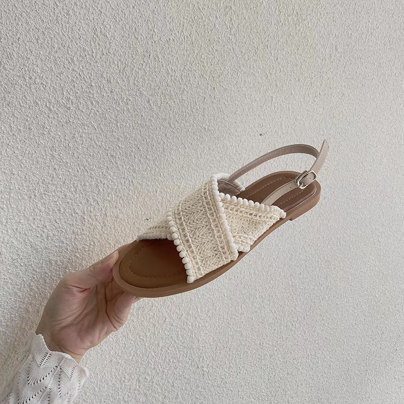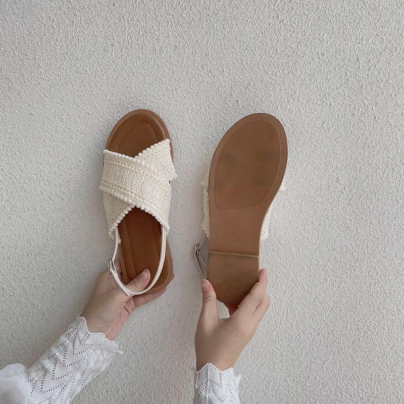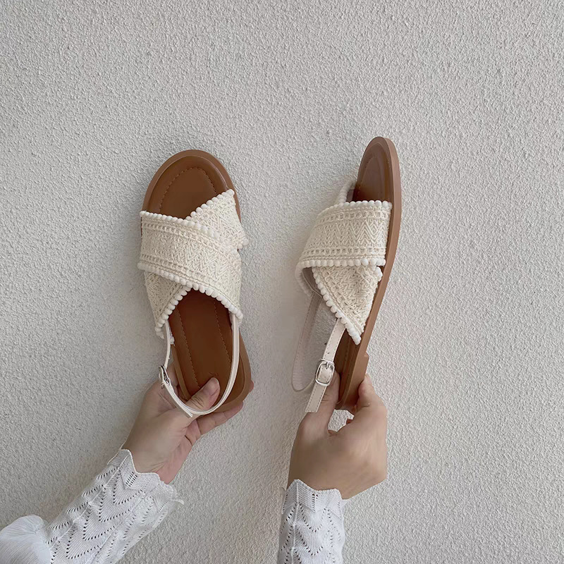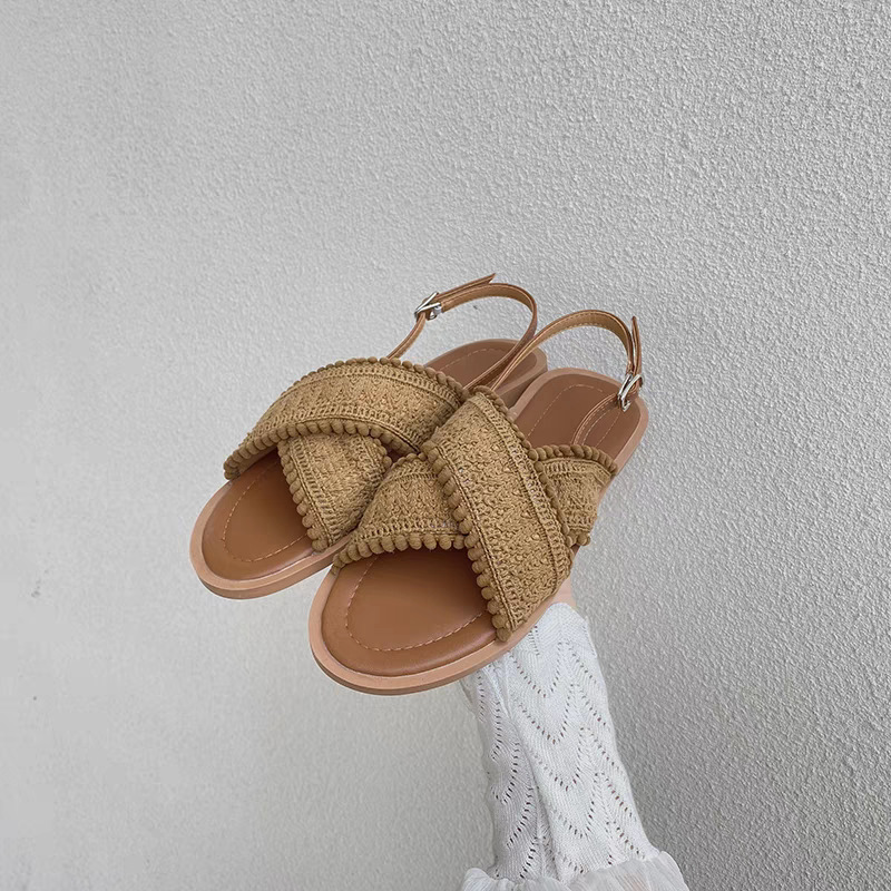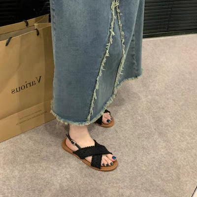 Французские ретро сандалии женские летняя плоская нижняя 2025 новая летняя женская обувь пляжный отдых римские туфли