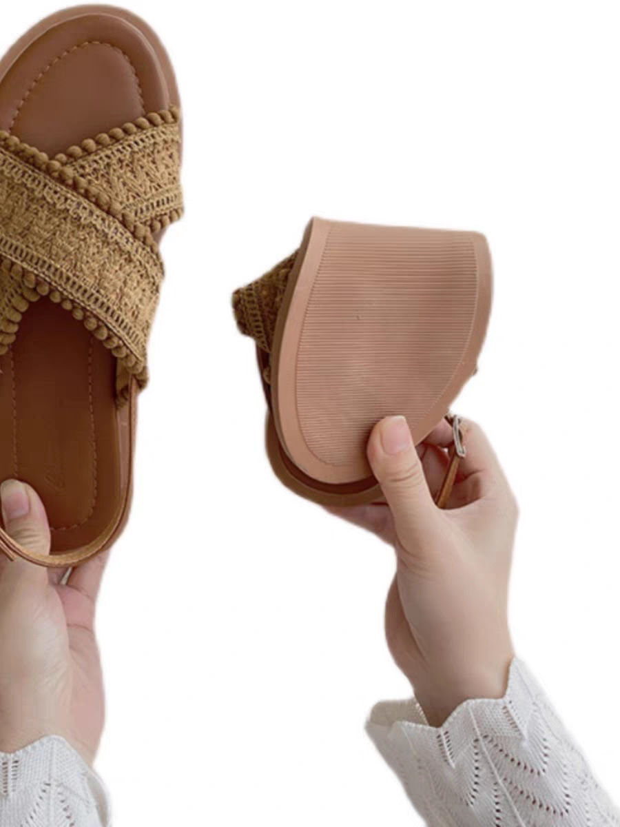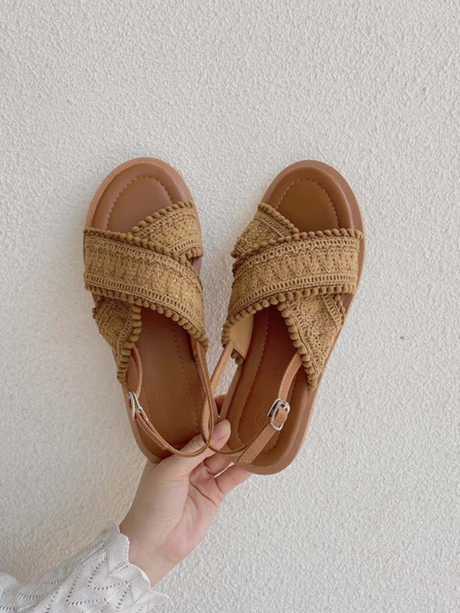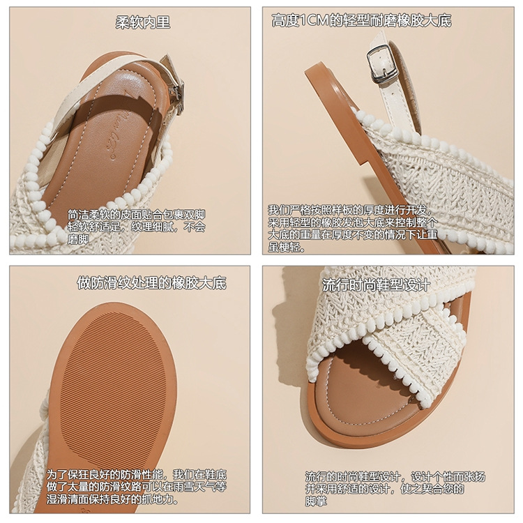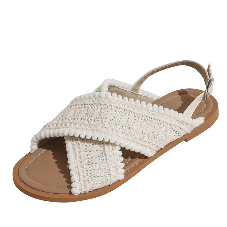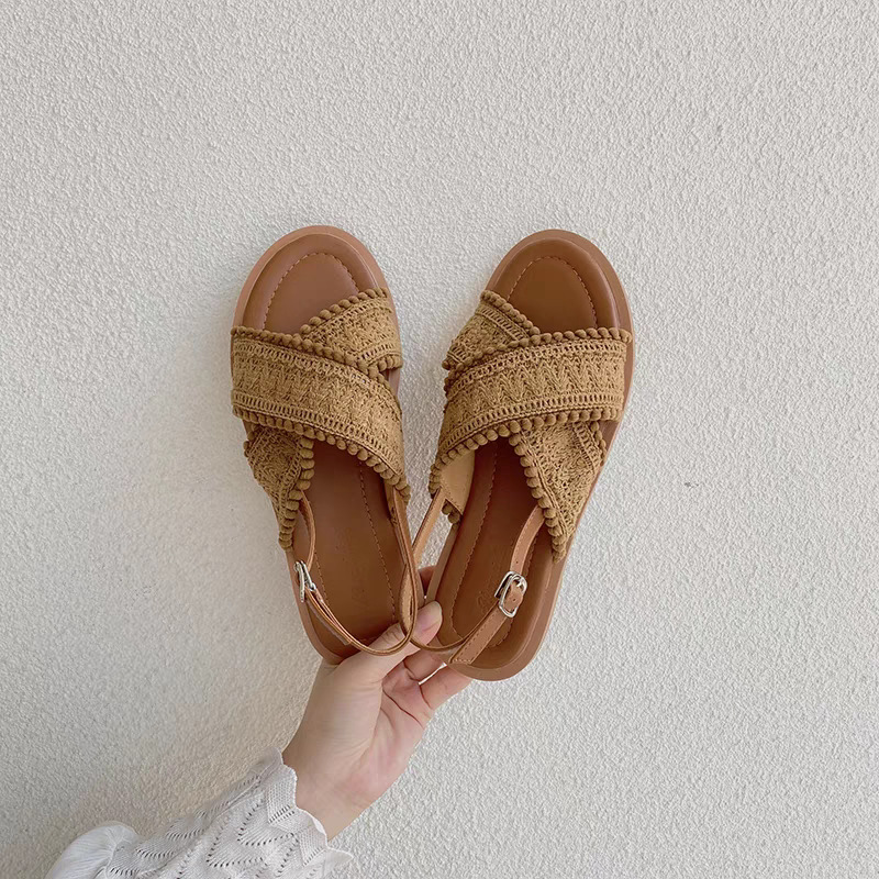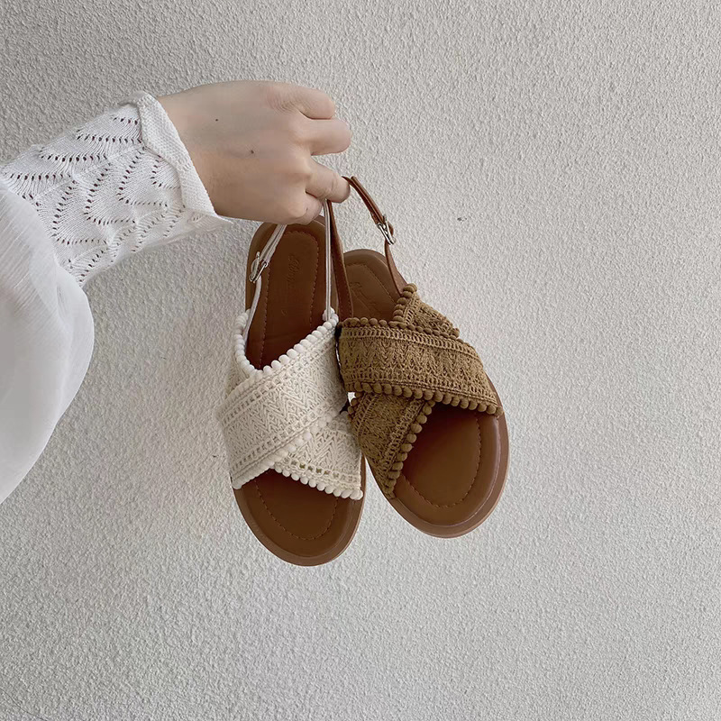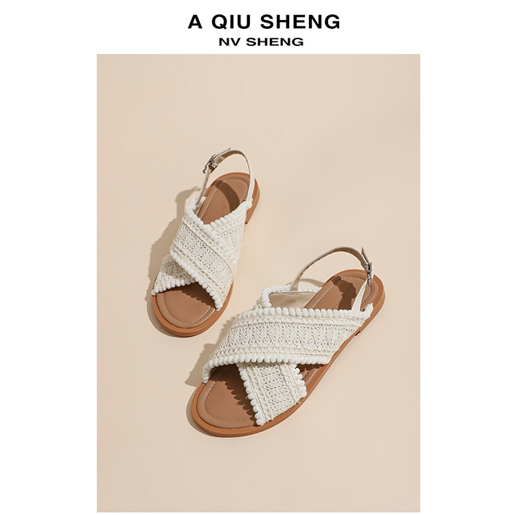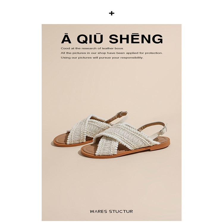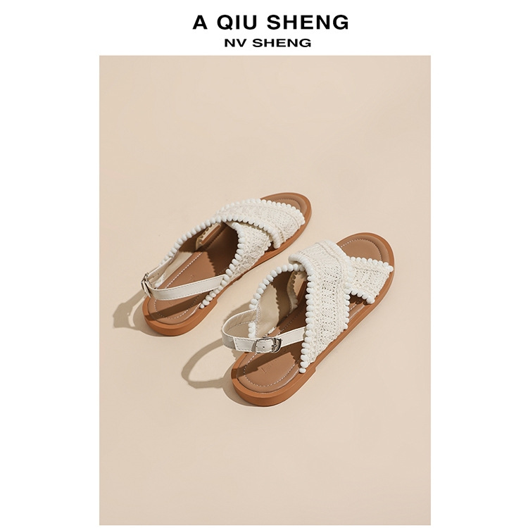 Французские ретро сандалии женские летняя плоская нижняя 2025 новая летняя женская обувь пляжный отдых римские туфли