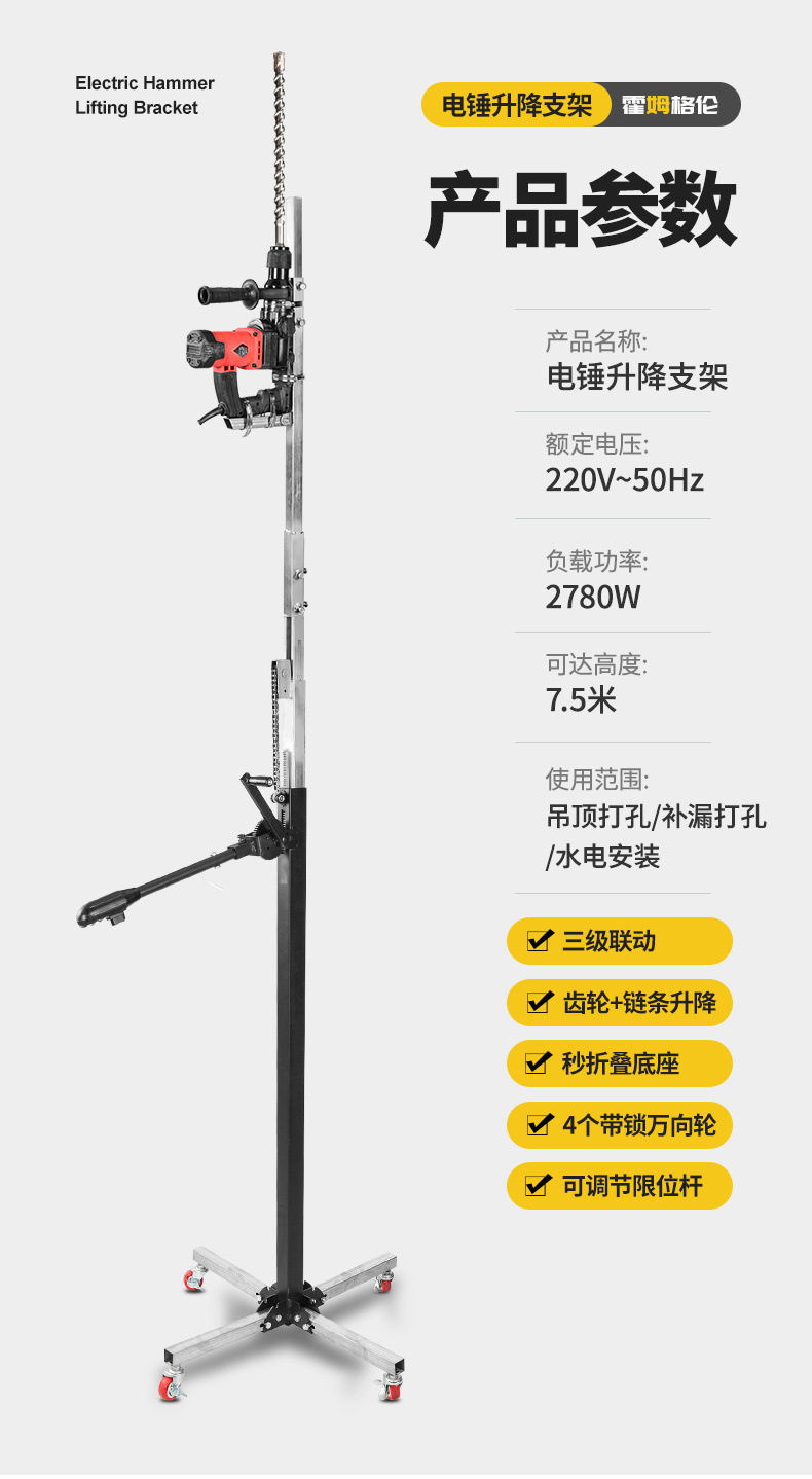 Электрическая стойка для перфоратора, гидравлический подъемный автоматический кронштейн для сверления, потолок, сверление арматуры, ударная дрель, сверление