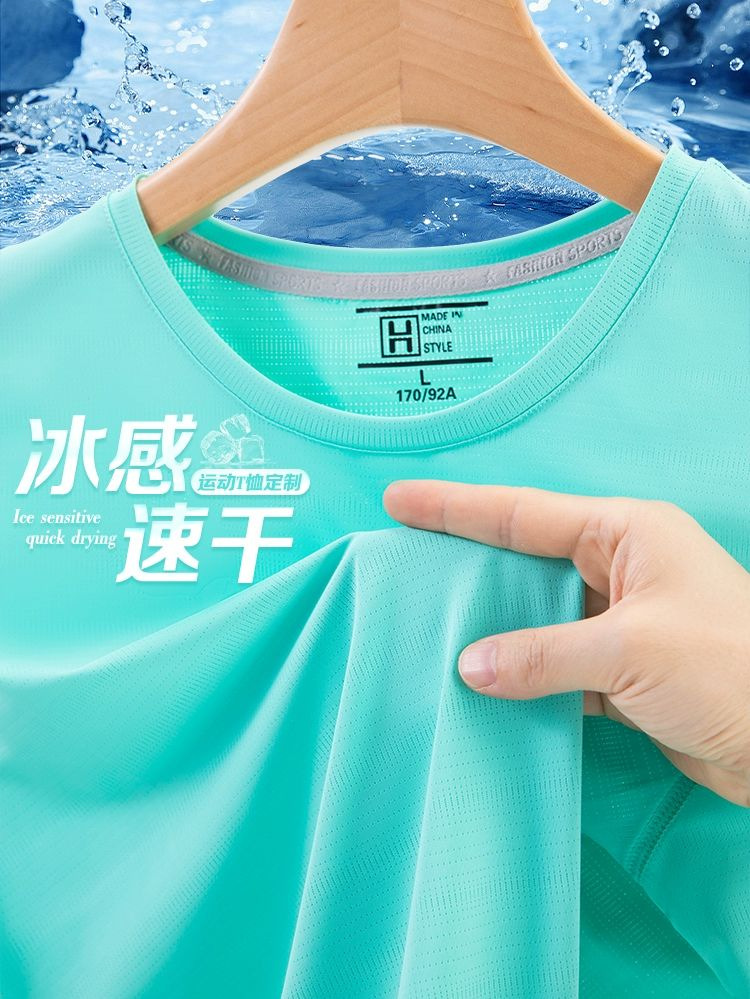 Летняя эластичная быстросохнущая футболка из ледяного шелка, рабочая одежда на заказ, спортивная одежда для марафона, рекламные рубашки с короткими рукавами и принтом логотипа