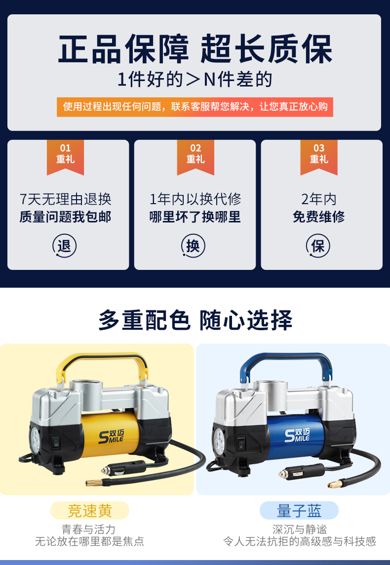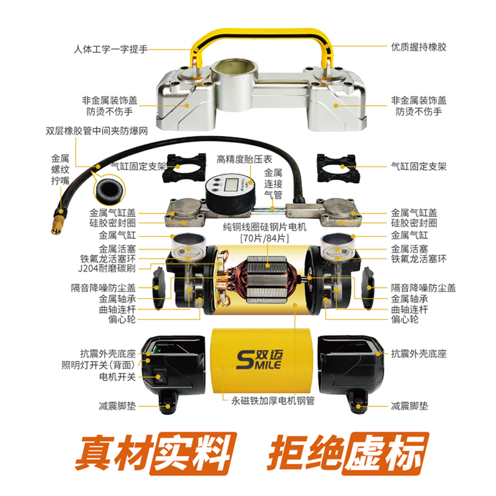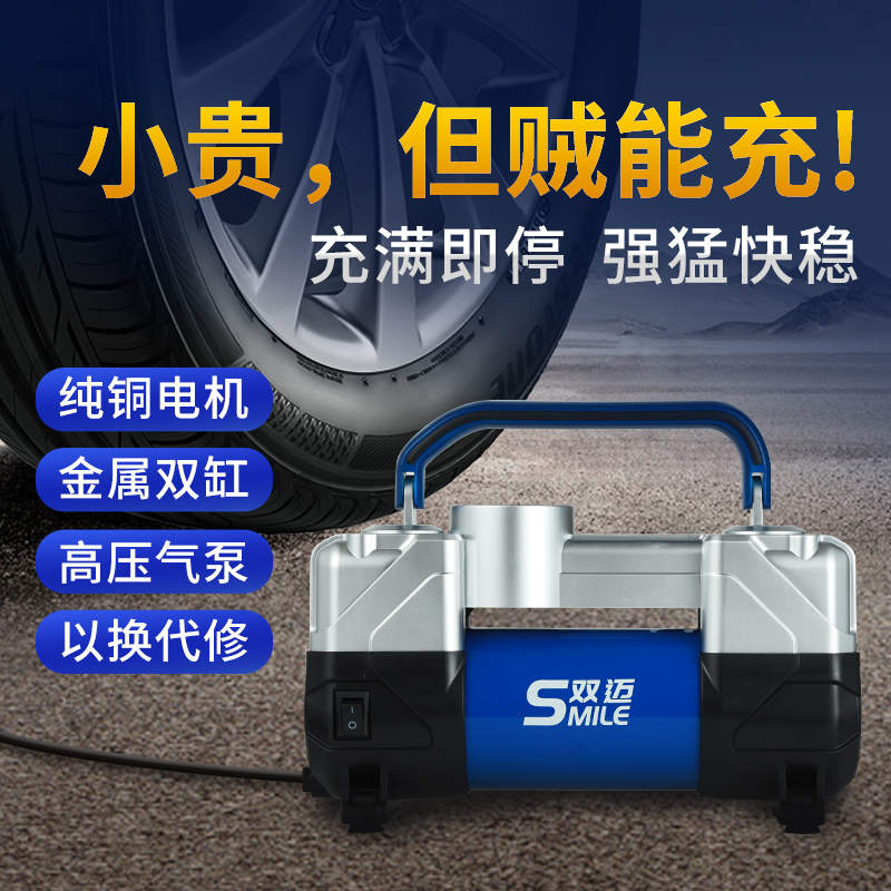 Автомобильный воздушный насос Shuangmai, портативный автомобильный двухцилиндровый высоковольтный мощный электрический автомобильный воздушный насос для шин, 12 В