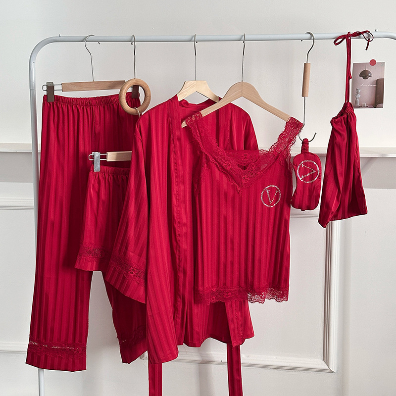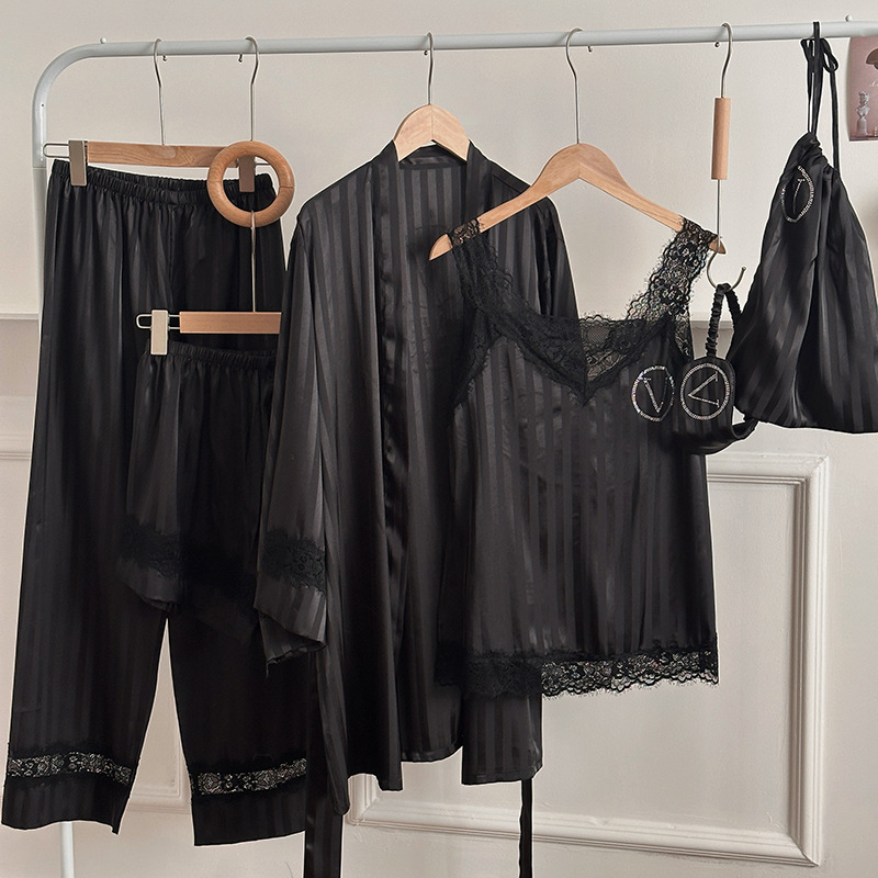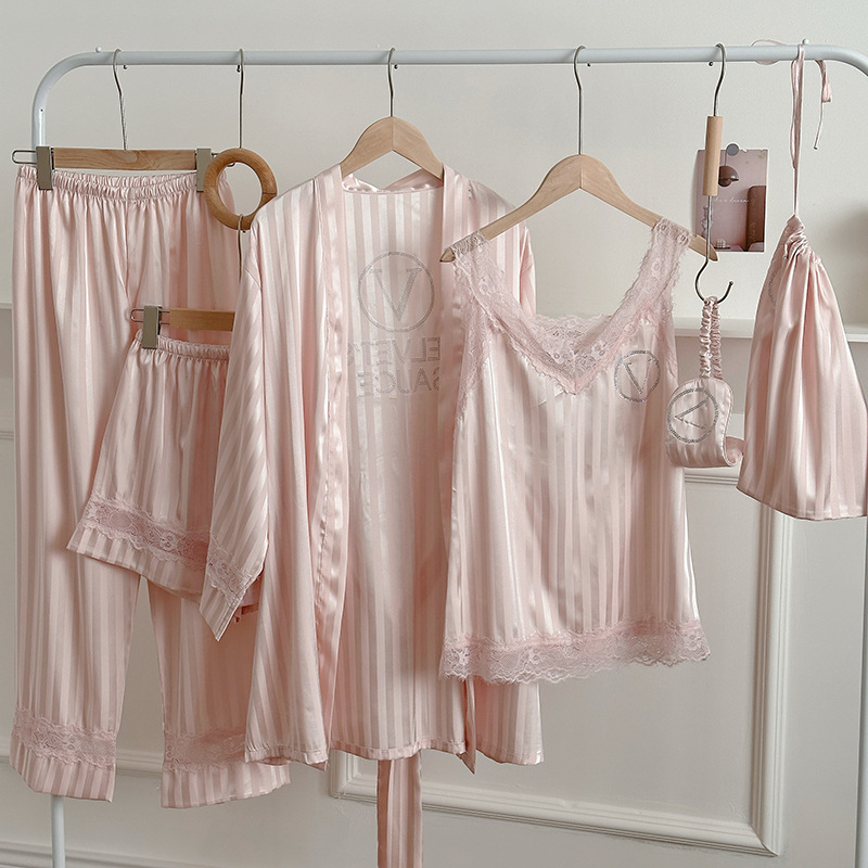 Модная шелковая пижама в стиле принцессы со льдом и снегом, комплект из шести предметов, кардиган с горячими бриллиантами, комплект домашней одежды с длинными рукавами, можно носить на улице