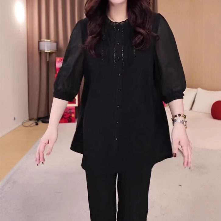 Летняя новая мода корейская версия высококачественной сетчатой пряжи с яркими бриллиантами повседневная дышащая шифоновая рубашка топ для женщин