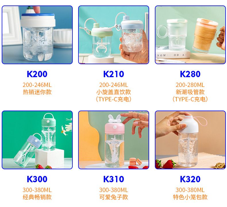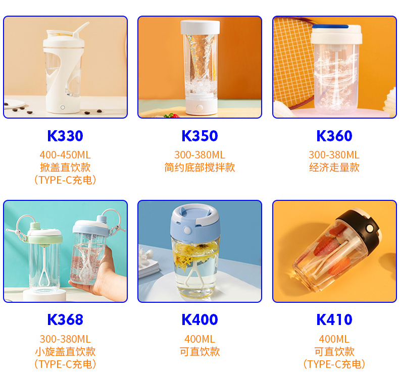k200 молочно-белый + красная ручка; k200 молочно-белый + ручка фиолетовая; k200 молочно-белый + ручка светло-голубая; k200 дымчато-фиолетовый; k200 молочно-белый + ручка темно-синяя; K210 травяно-зеленый (перезаряжаемая модель); K210 небесно-голубой (перезаряжаемая модель); К280 молочно-зеленый; К280 молочный апельсин; К300 свежий зеленый; К300 небесно-голубой; К300 девчачий розовый; Модель синего аккумулятора K310; Модель зеленой батареи K310; Модель розового аккумулятора K310; K320 белая крышка чашки + розовый шнурок; K320 желтая крышка чашки + белый шнурок; Белая чашка для смешивания K 330m (перезаряжаемая); Синяя чашка для смешивания K 330m (перезаряжаемая версия); к350 белый; К360 молочно-фиолетовый; К360 молочный светло-синий; К360 темно-синий; К360 молочно-красный; К360 фиолетовый; k368 небесно-голубой; k368 трава зеленая; К400 желтый; К400 красный; к410 синий; к410 черный; К600 красный; К600 желтый; К600 розовый; к610 черный; к610 синий; к620 черный; к620 белый