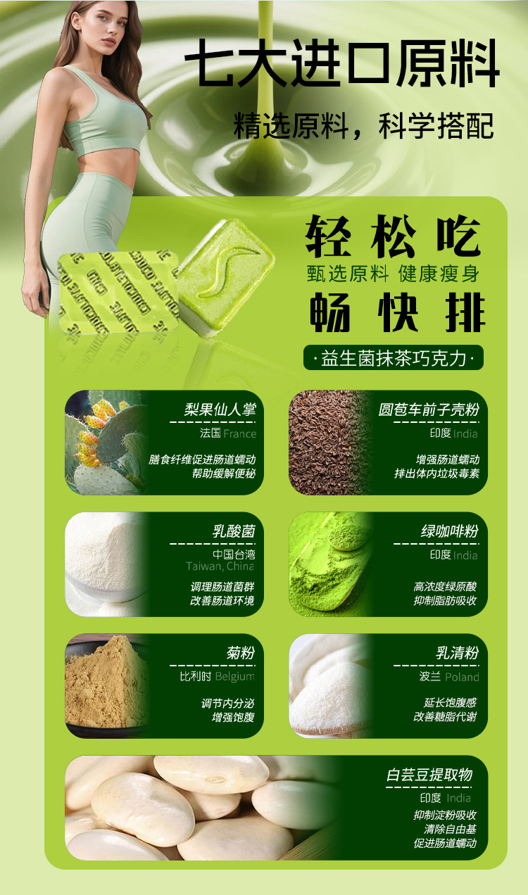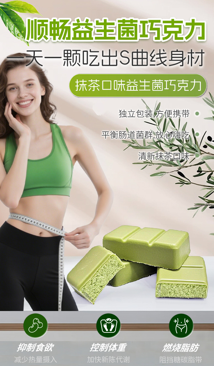 Бесплатная доставка: Пробиотический шоколад с матча Wan Yi Lan — готовые к употреблению закуски с пищевыми волокнами и пребиотиками.