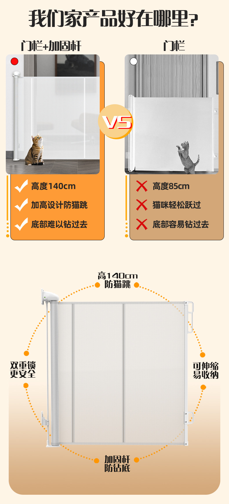 Трансграничные ворота для домашних животных высотой 140 см, повышенные противострибки, ограждения для ворот с защитой от сверления, ограждение для собак с защитой от кошек, ограждение для домашних животных
