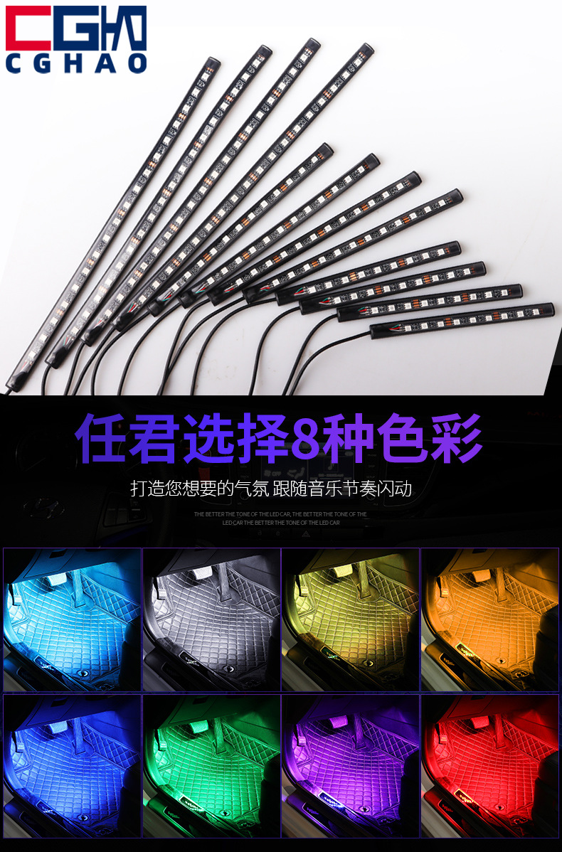 CGHAO автомобиль подошва света звуковой контроль led восемь цветов 72smd музыкальный ритм лампы 64 цвета