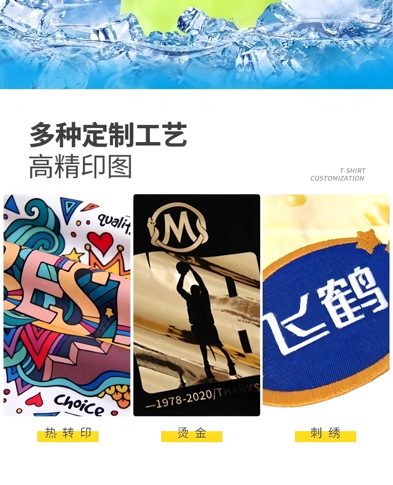 支持六大印制工艺:丝网印、烫画、数码直喷、热转印、烫金/银、刺绣