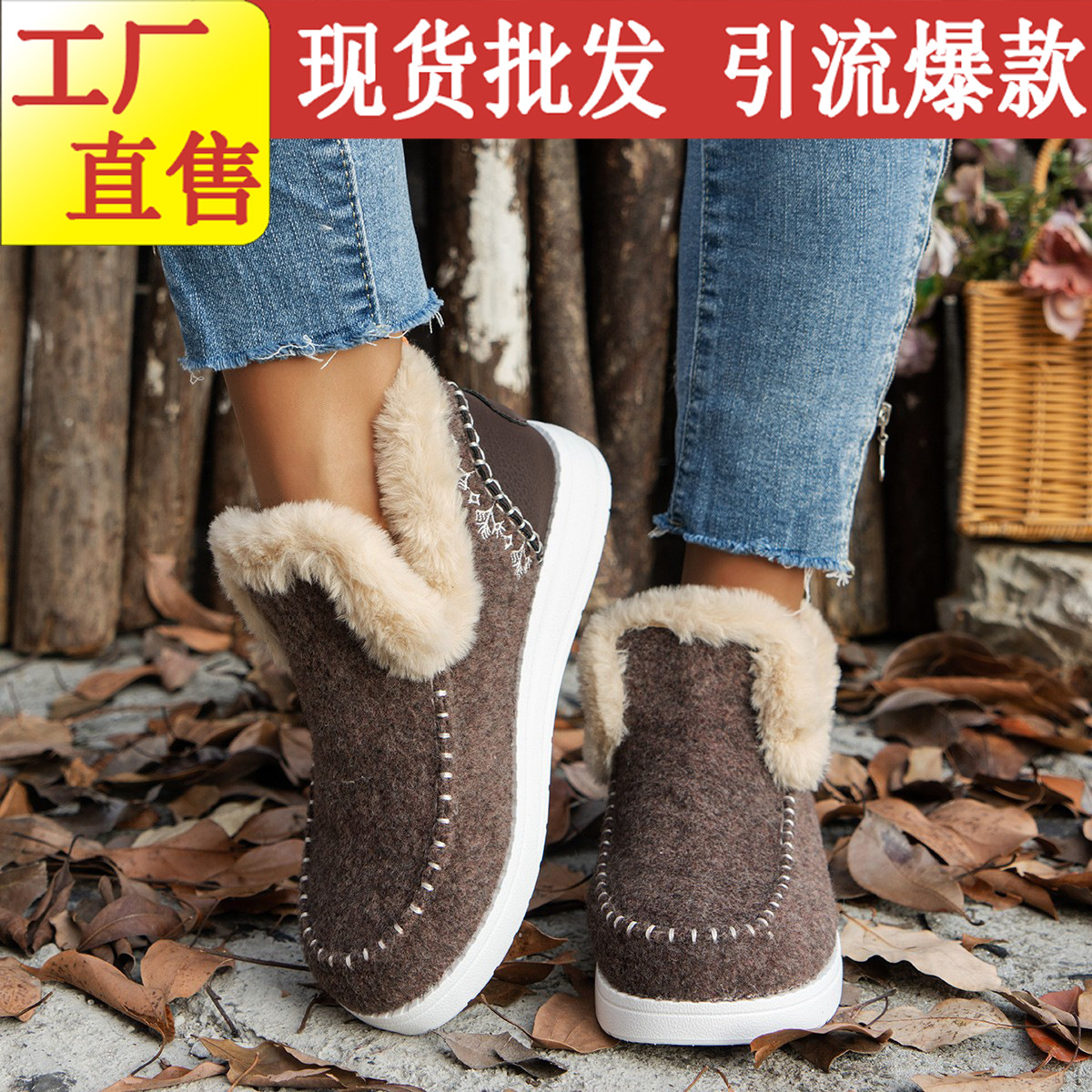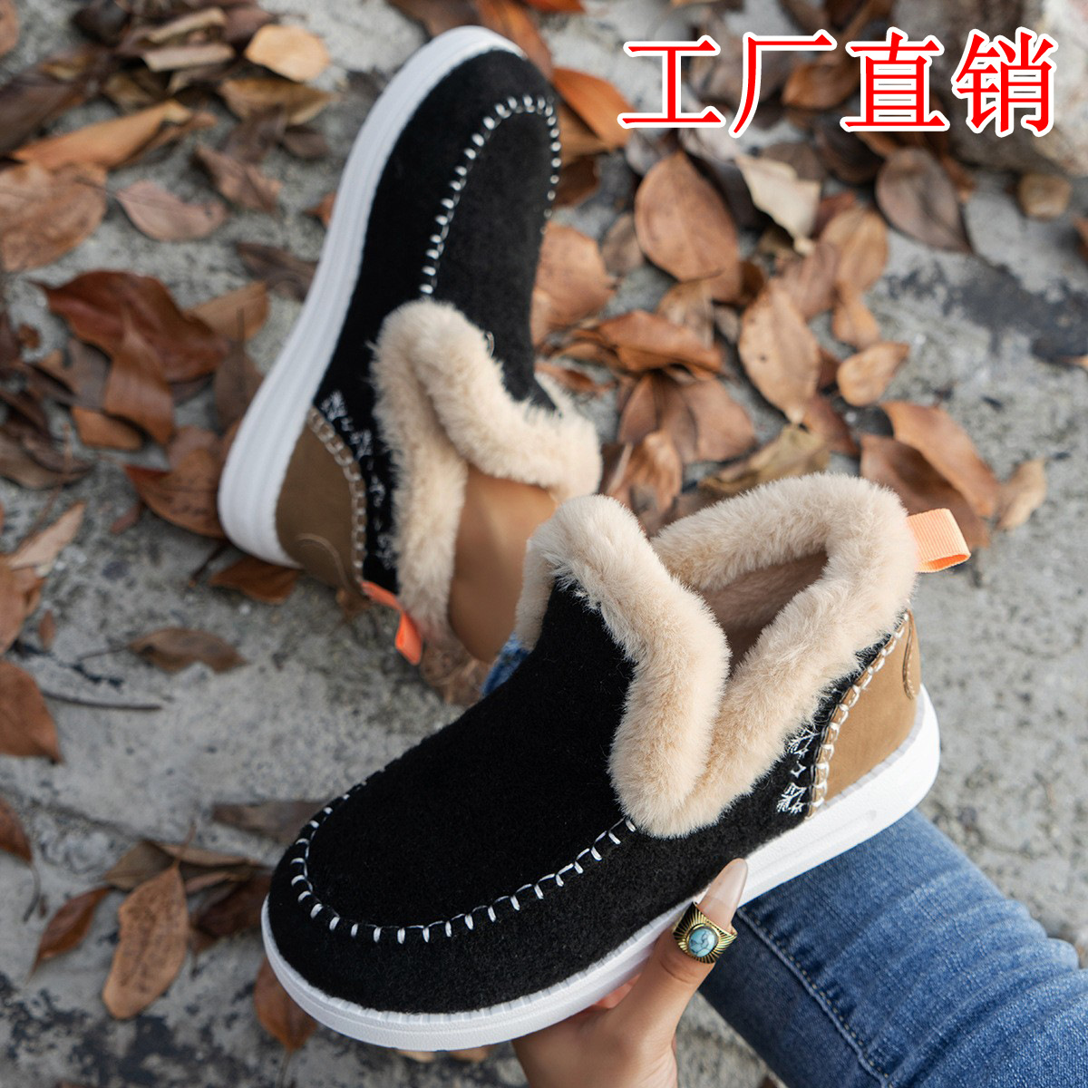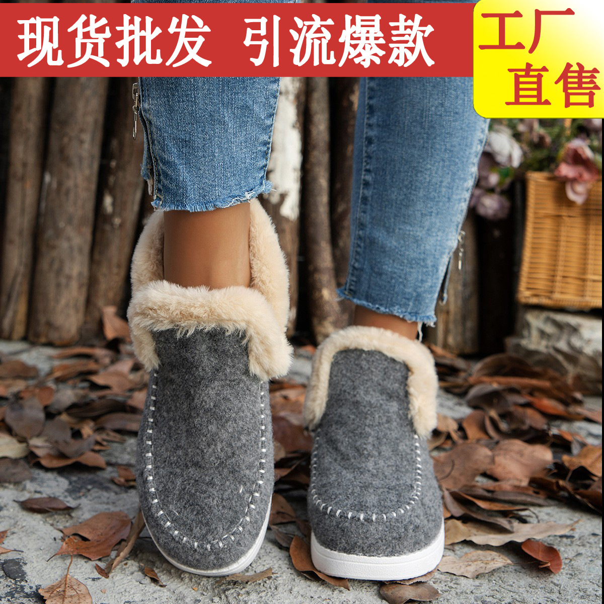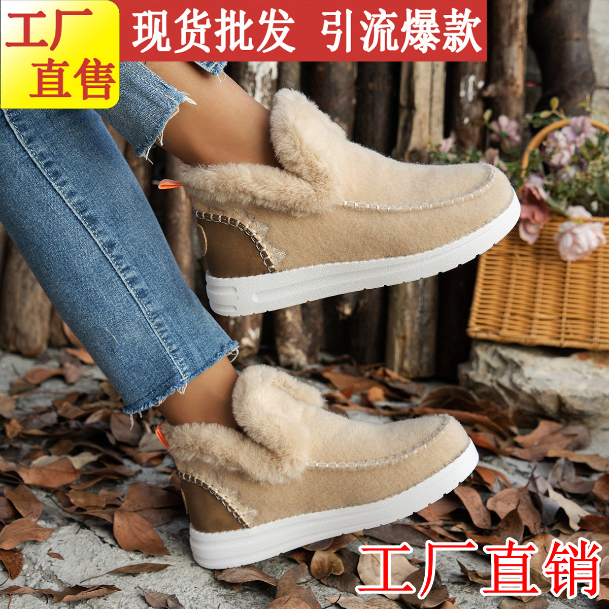 Amazon трансграничные большие размеры плюс плюшевые хлопковые туфли женские сапоги осень и зима новые зимние сапоги на плоской подошве с утолщенным круглым носком и высоким берцем