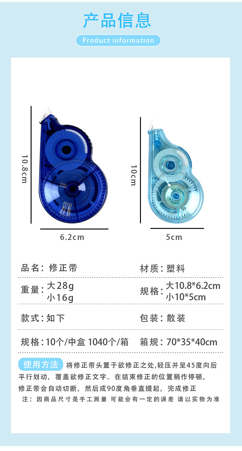 Корректирующая лента большой емкости для крупных студентов, корректирующая лента с крупными символами для офисных канцелярских принадлежностей, оптовая продажа в одной коробке
