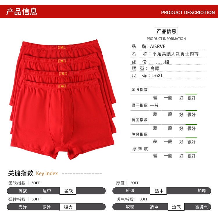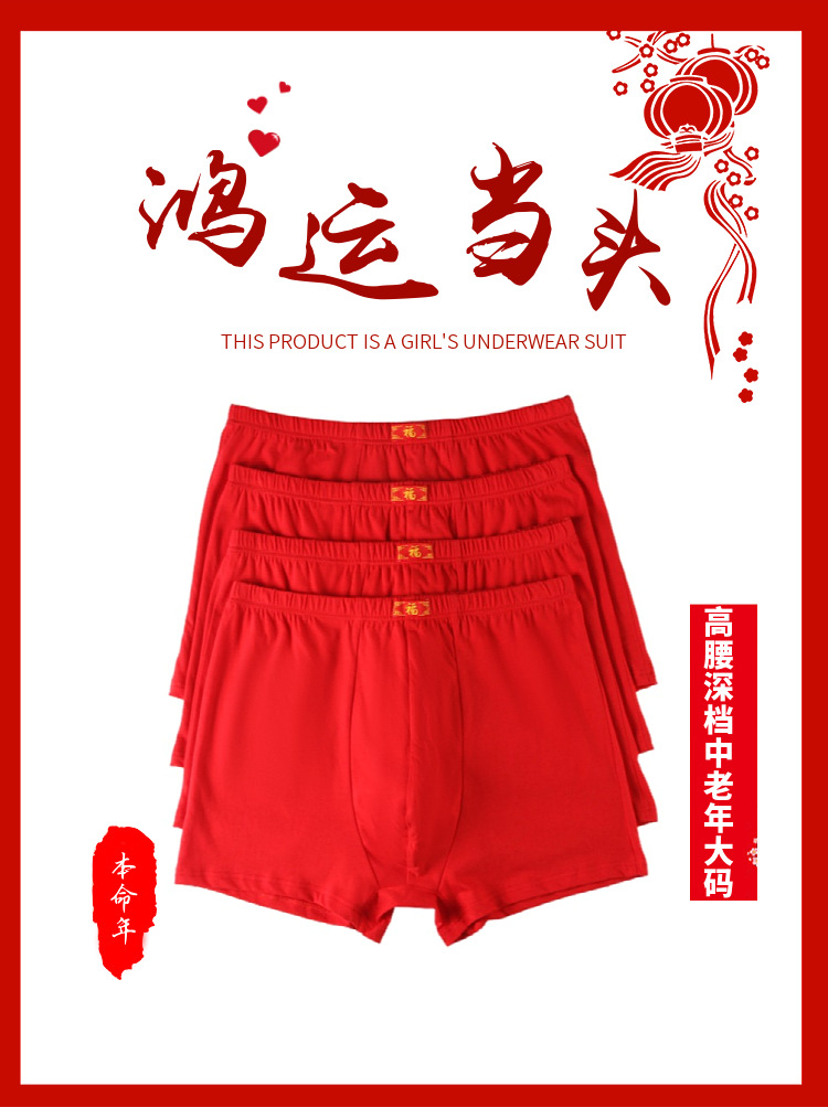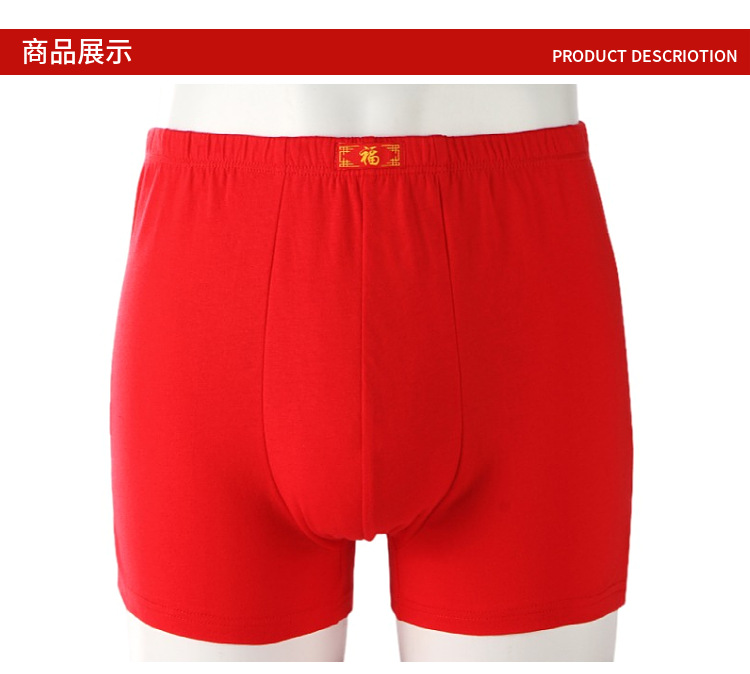 [На заказ] Мужские большие красные трусы-боксеры с высокой талией из чистого хлопка, год зодиака, хлопковое красное нижнее белье большого размера для среднего и пожилого возраста
