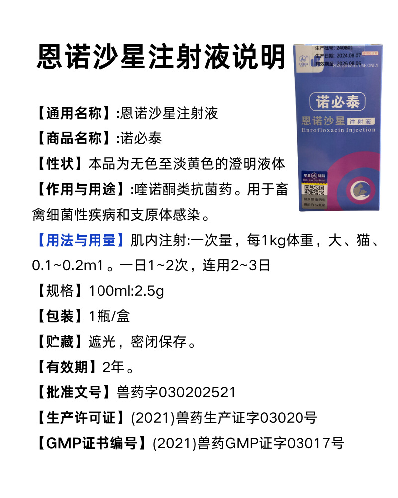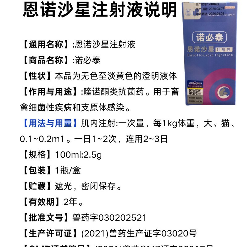 Северо-китайский фармацевтический препарат Норбактин Эноксацин Инъекция 100 мл Антибактериальный препарат Микоплазменное вмешательство Бактериальная болезнь
